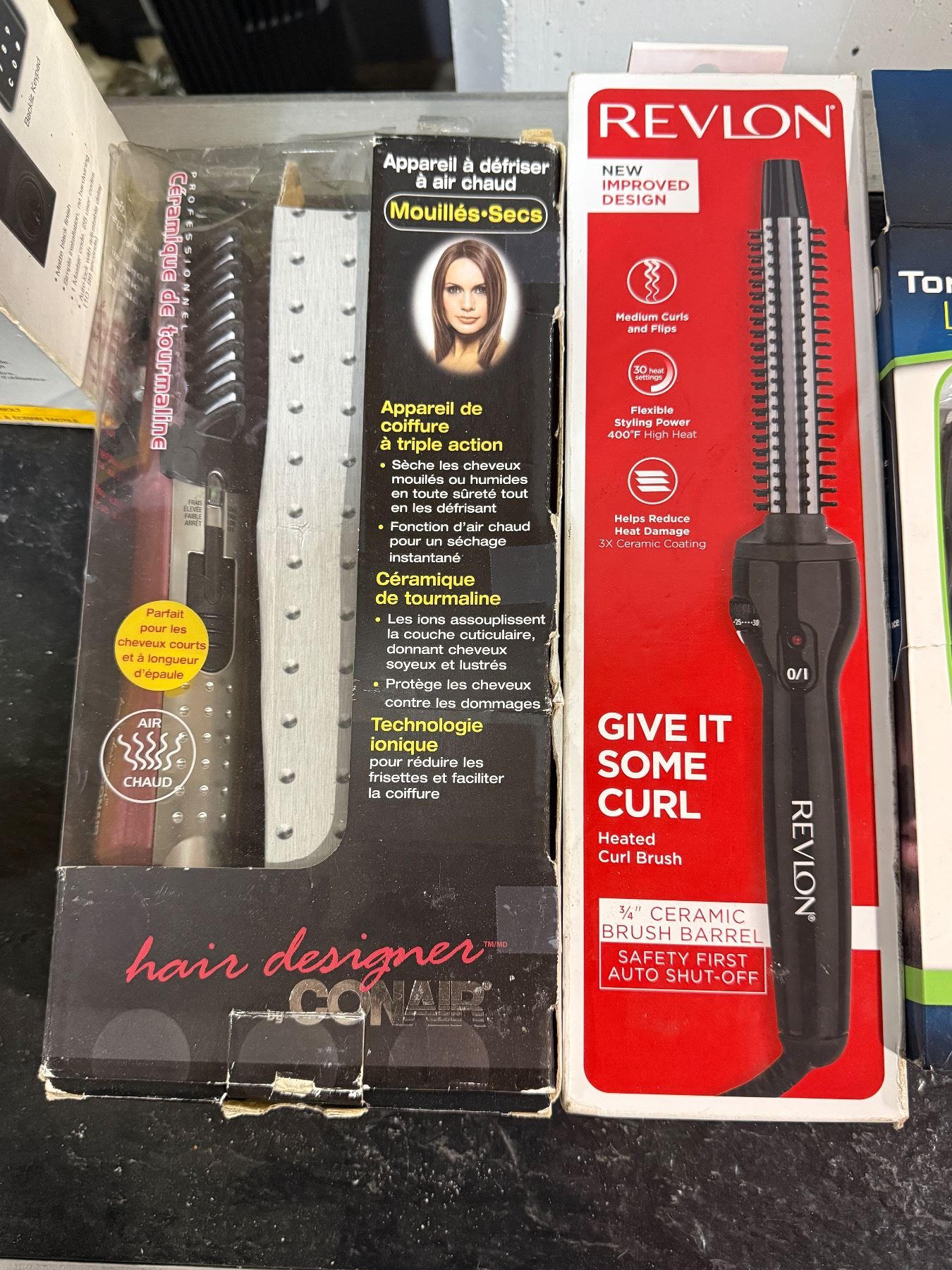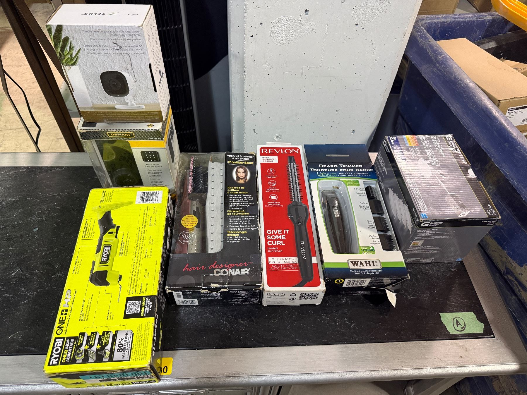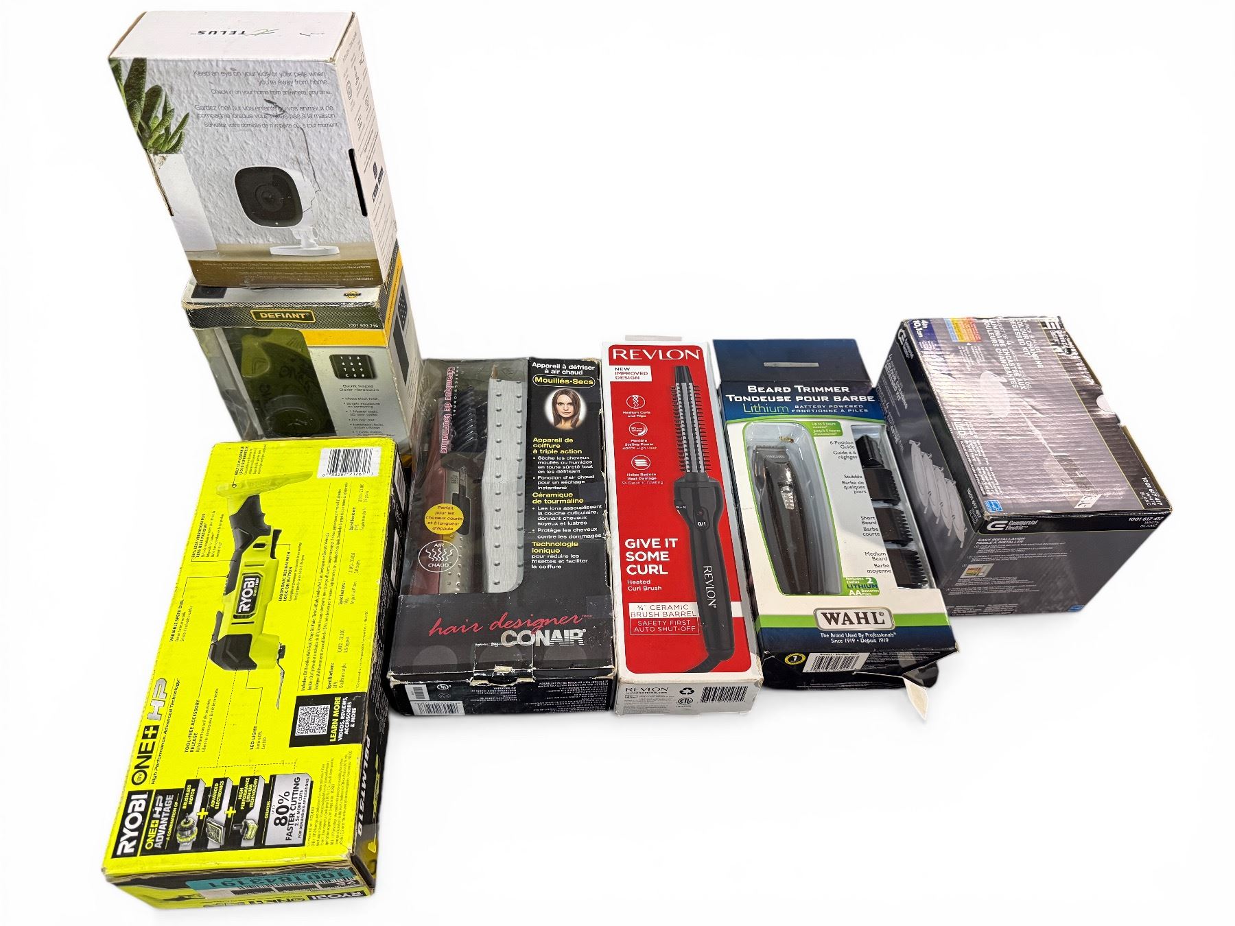 Group of Various Household Items/Tools - Includes Trimmer, Heated Curl Brush, smart Door Lock, Ryobi Brushless Multitool etc