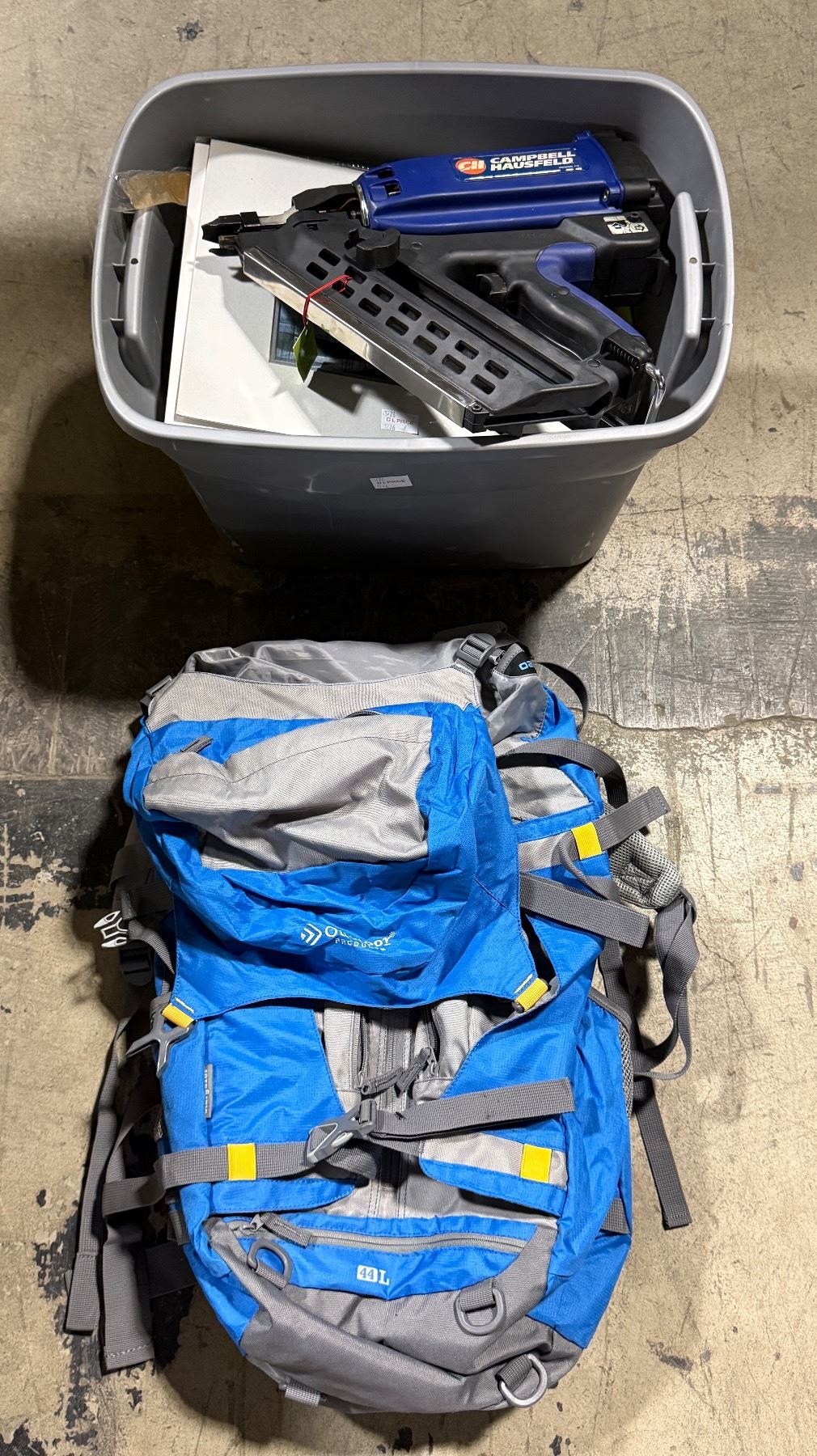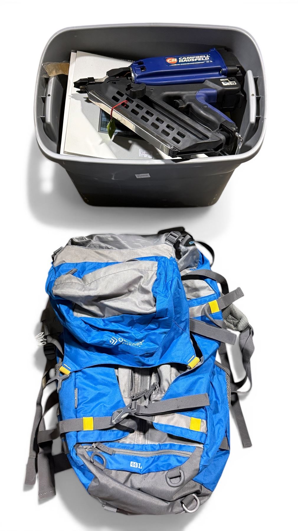 Group of Various Items & Power Tools - Includes Camping Bag, Drill, Framing Nailer etc