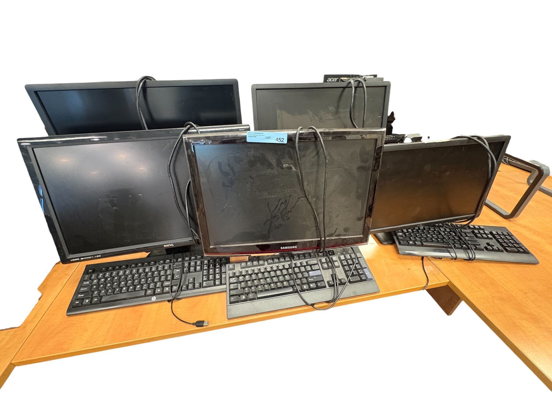 Group of Various Monitors & Keyboards - Dell, Samsung, BenQ, Etc.