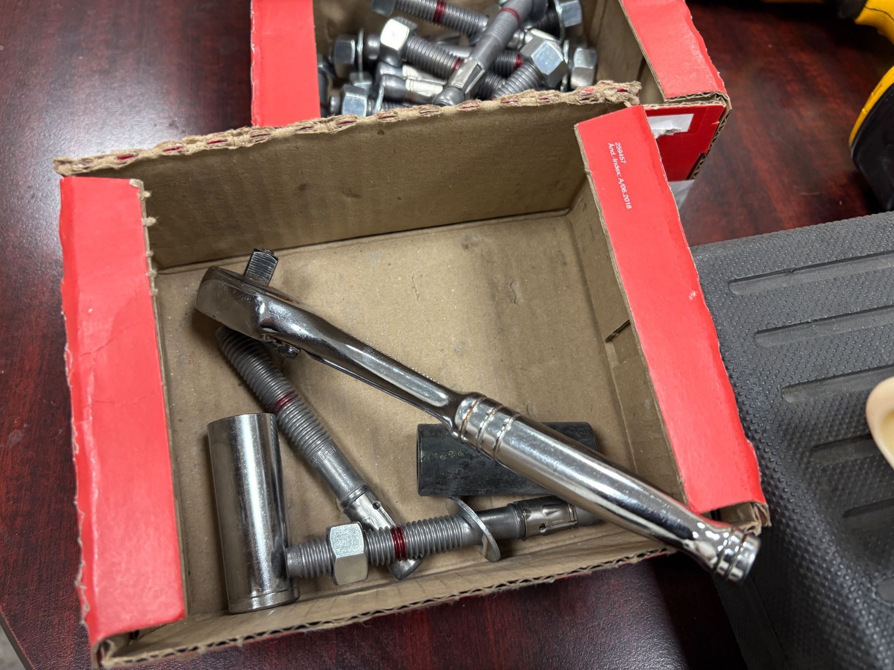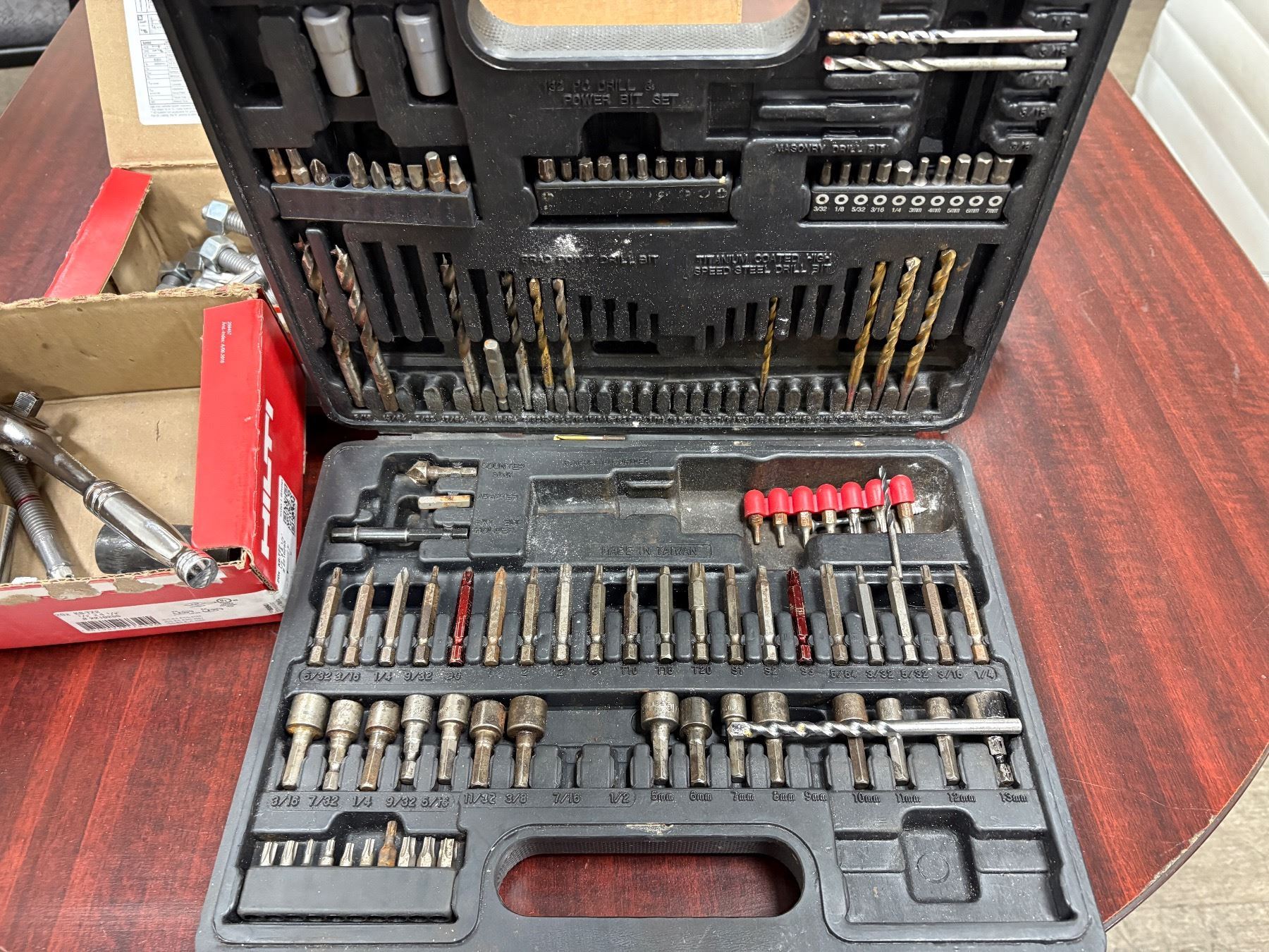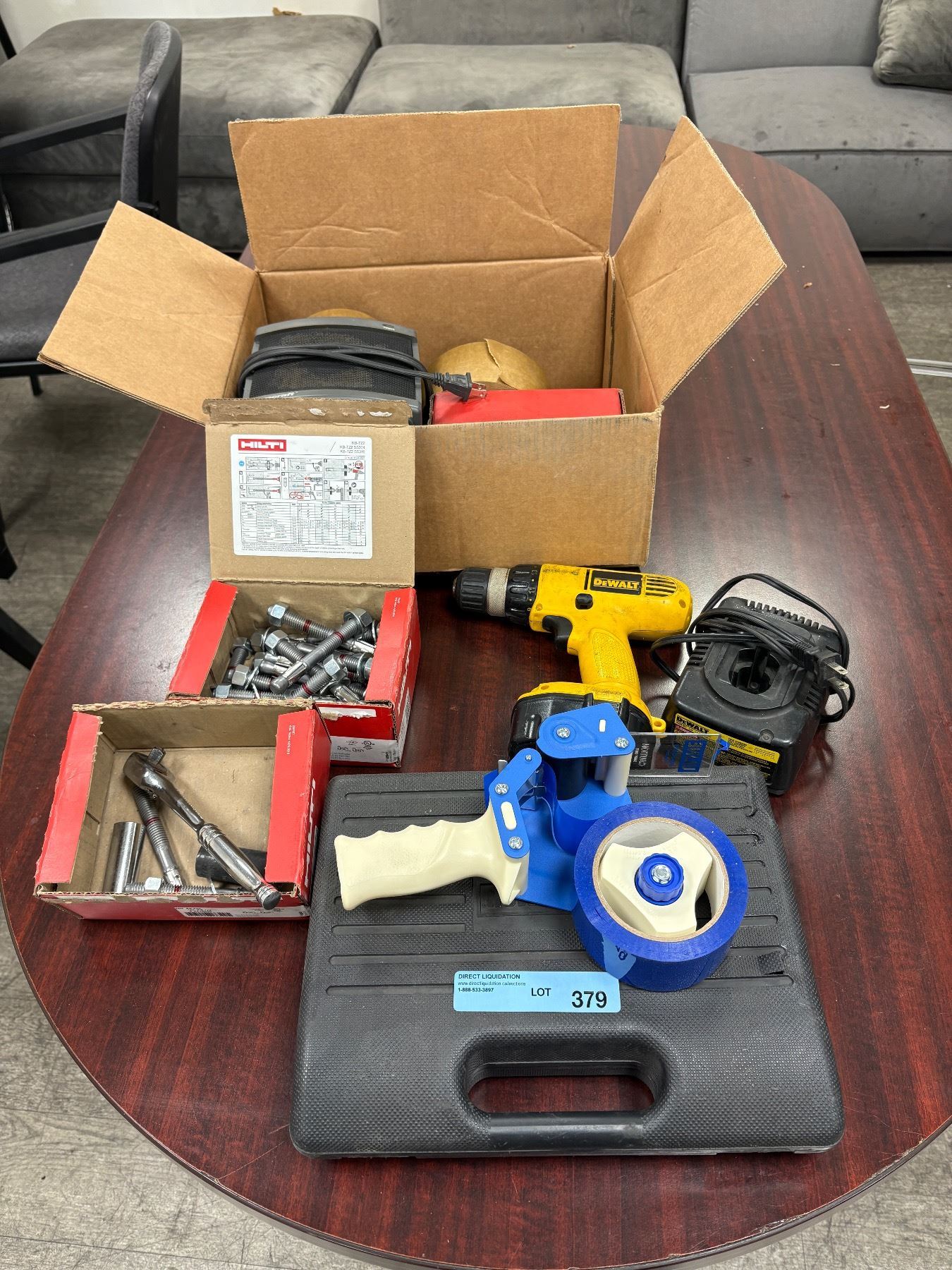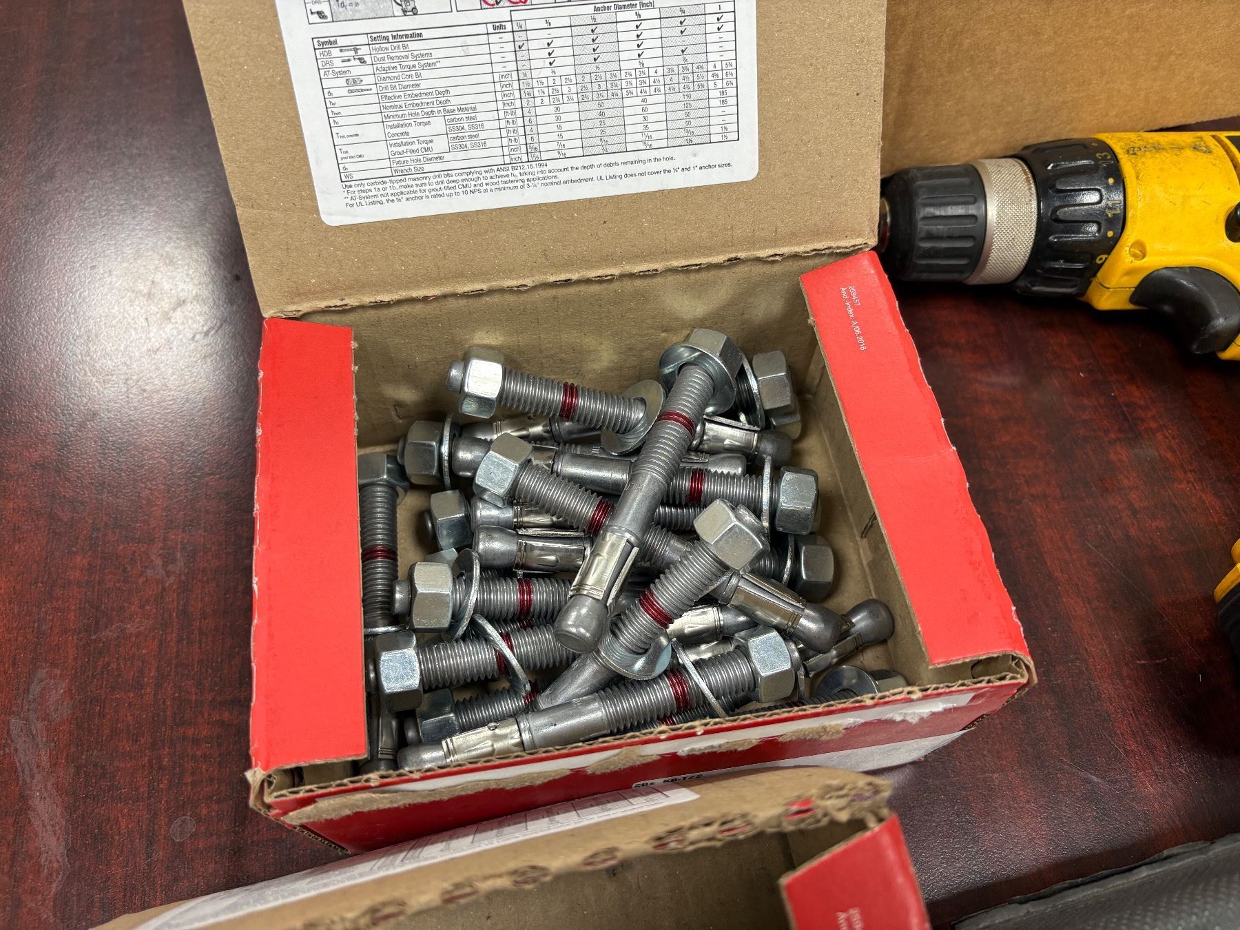 Group of Various Tools - DeWalt Cordless Drill/Driver, w/DeWalt Charger, Craftsman Box w/Bits, Box of Bolt TZ2 Wedge anchor, Etc.