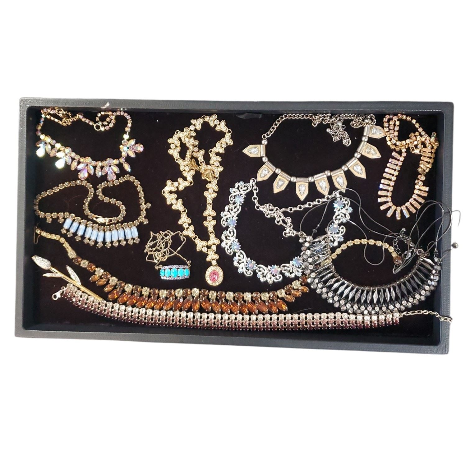 Group of Vintage Rhinestone & Fashion Jewelry - Display Tray Not Included