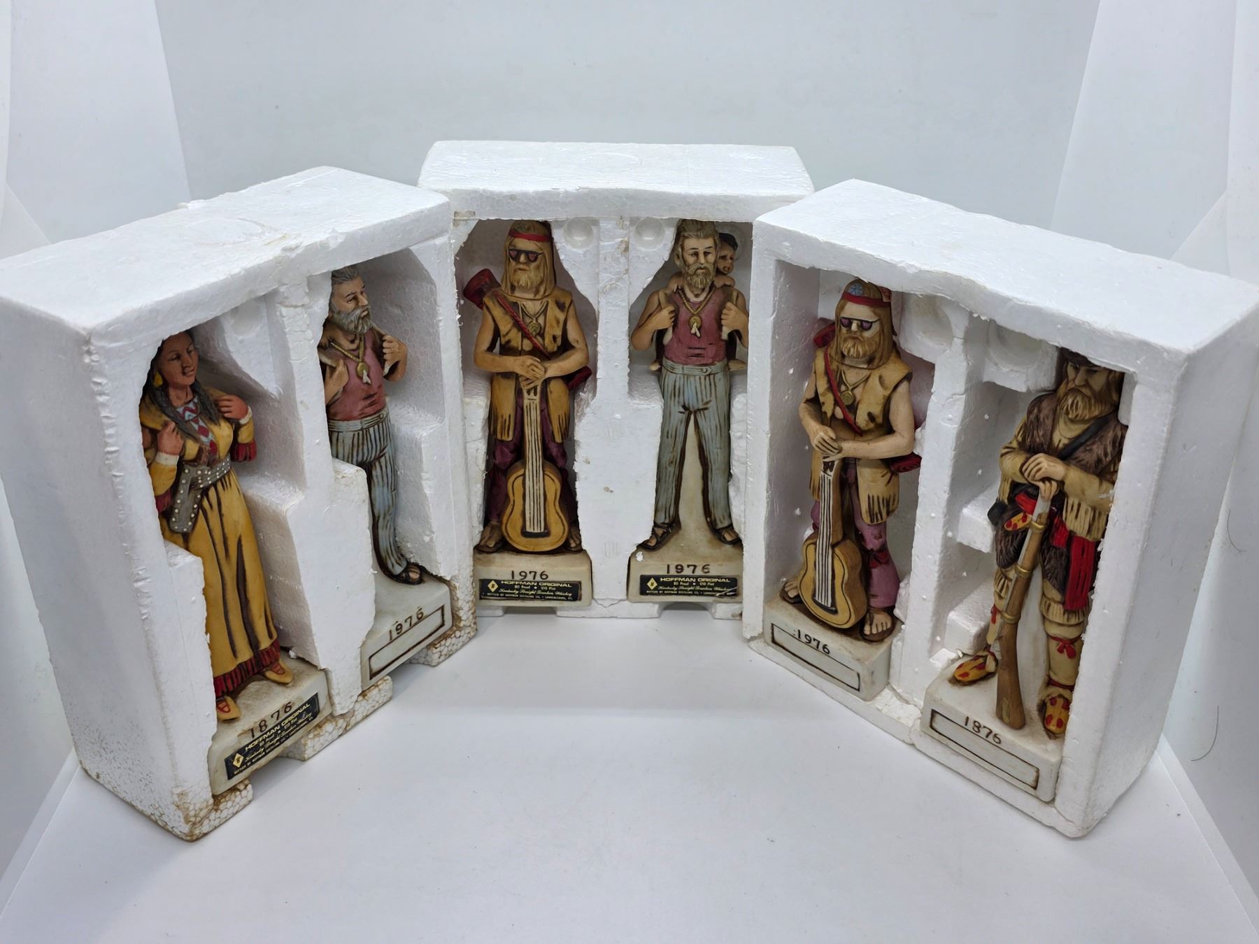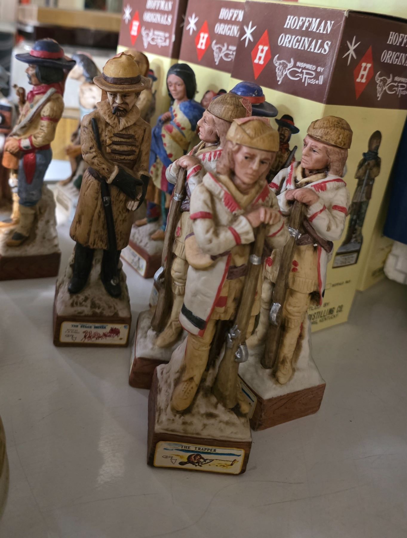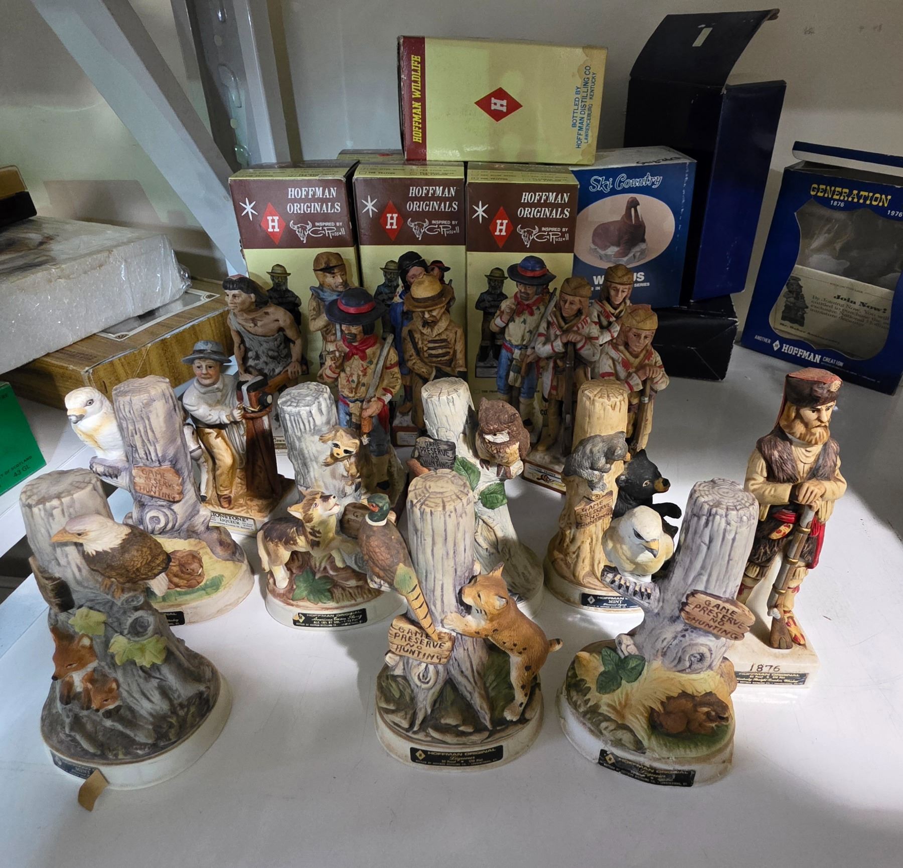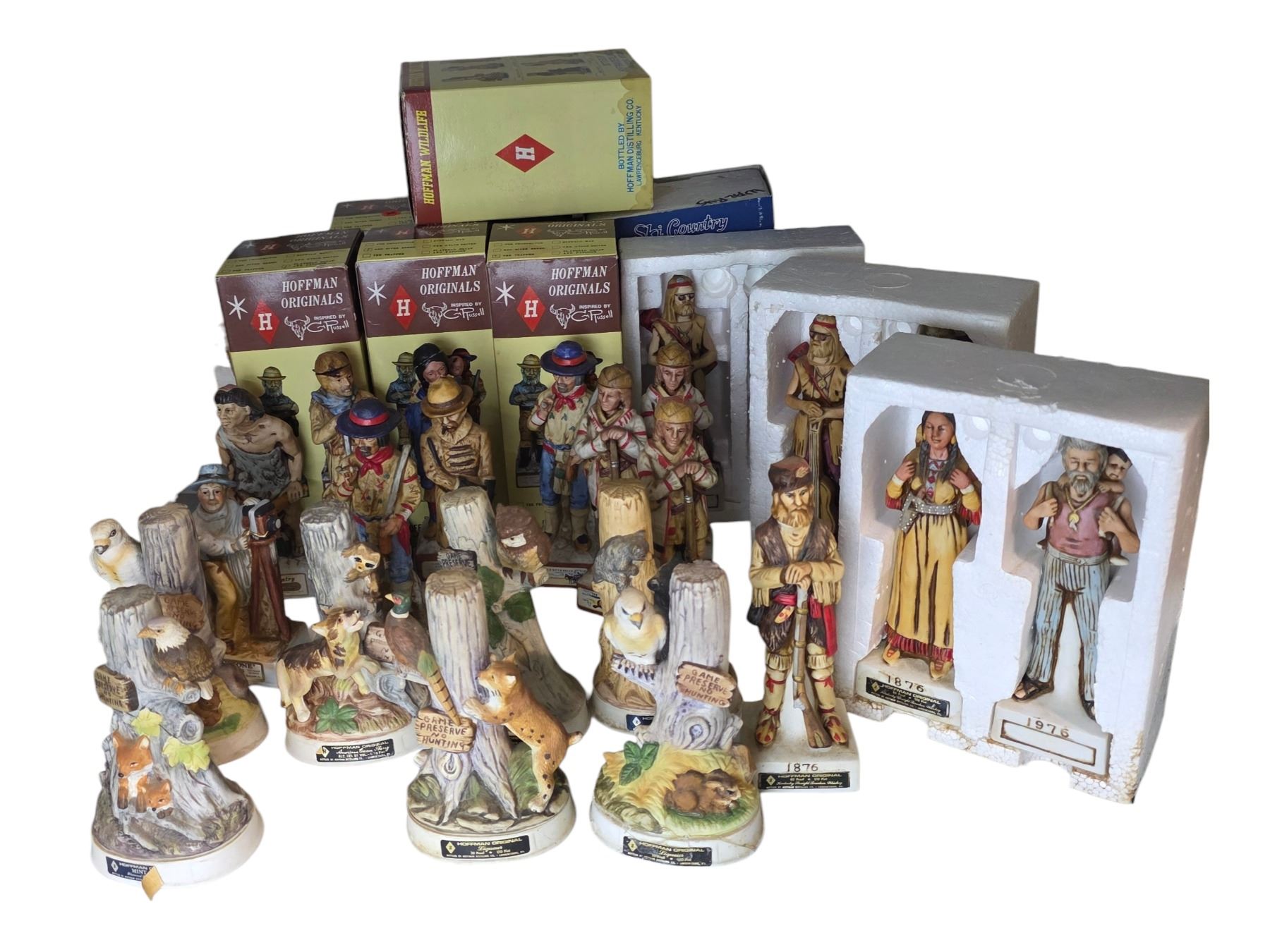Group of Western & Wildlife Themed Porcelain 1/10 Pint Liquor Decanters - Hoffman, Ski Country & Lionstone - 6 have boxes (empty)