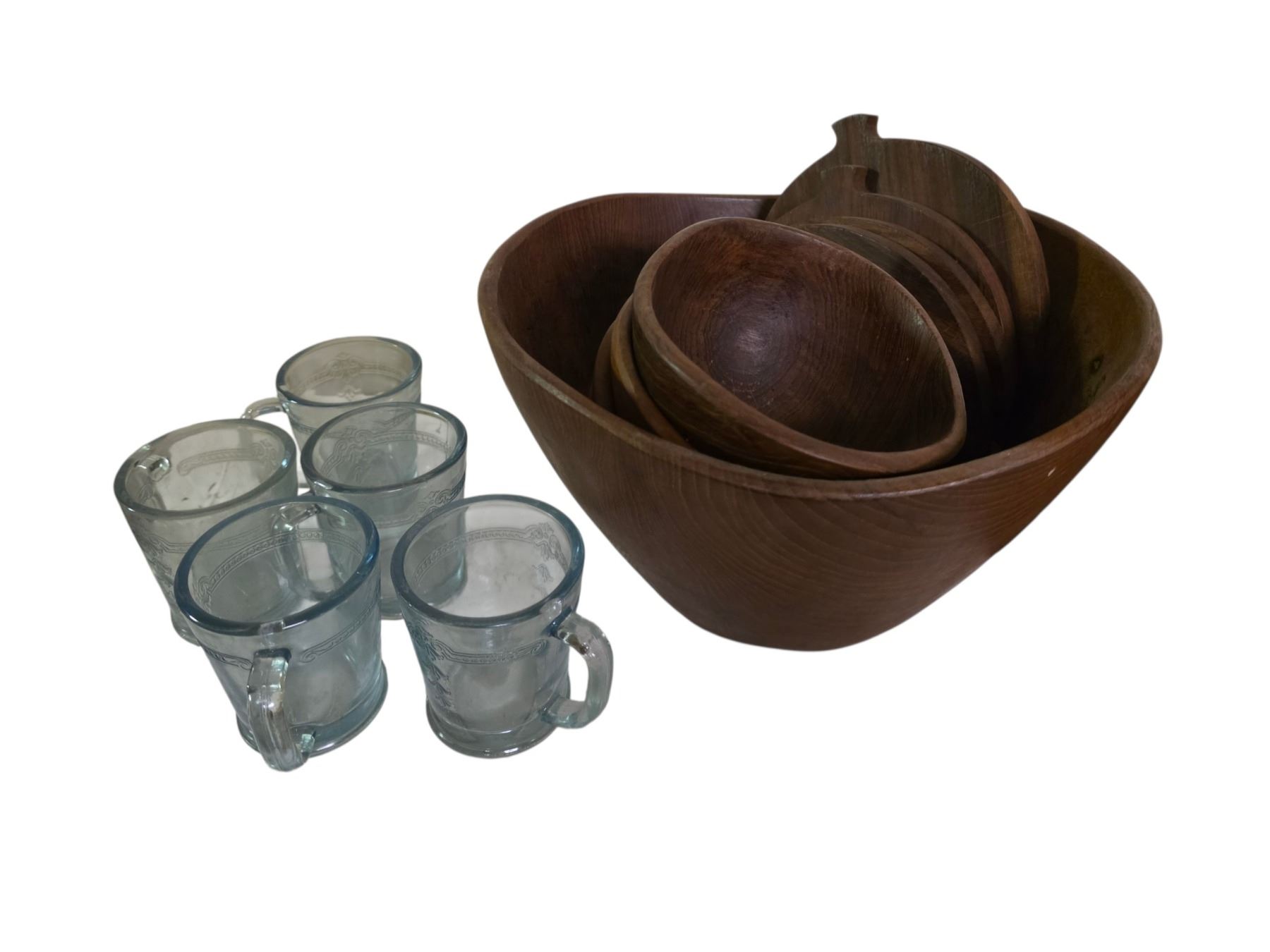 Group of Wood Bowl Set & Cups