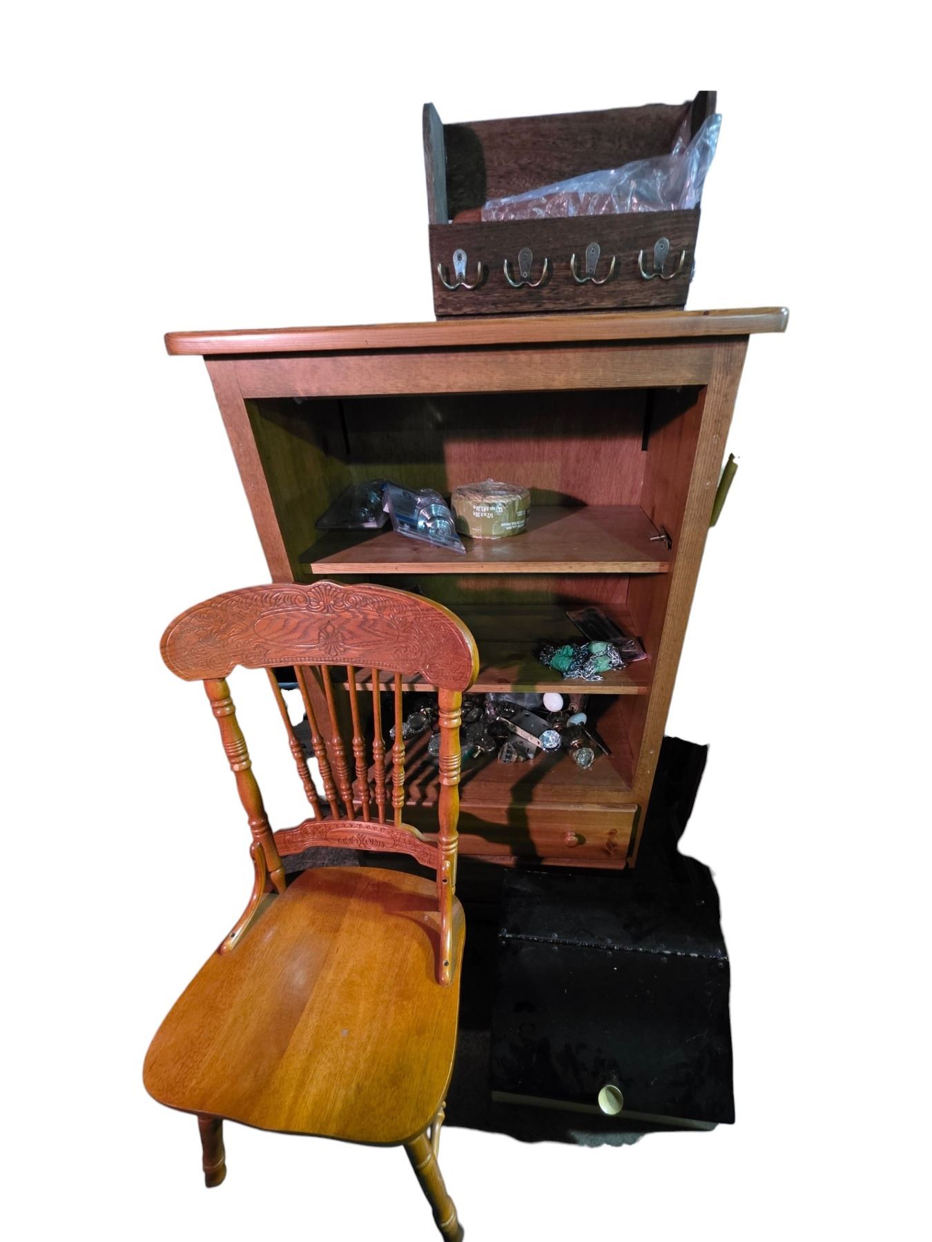 Group of Wooden Bookshelf w/Contents & Wooden Chair