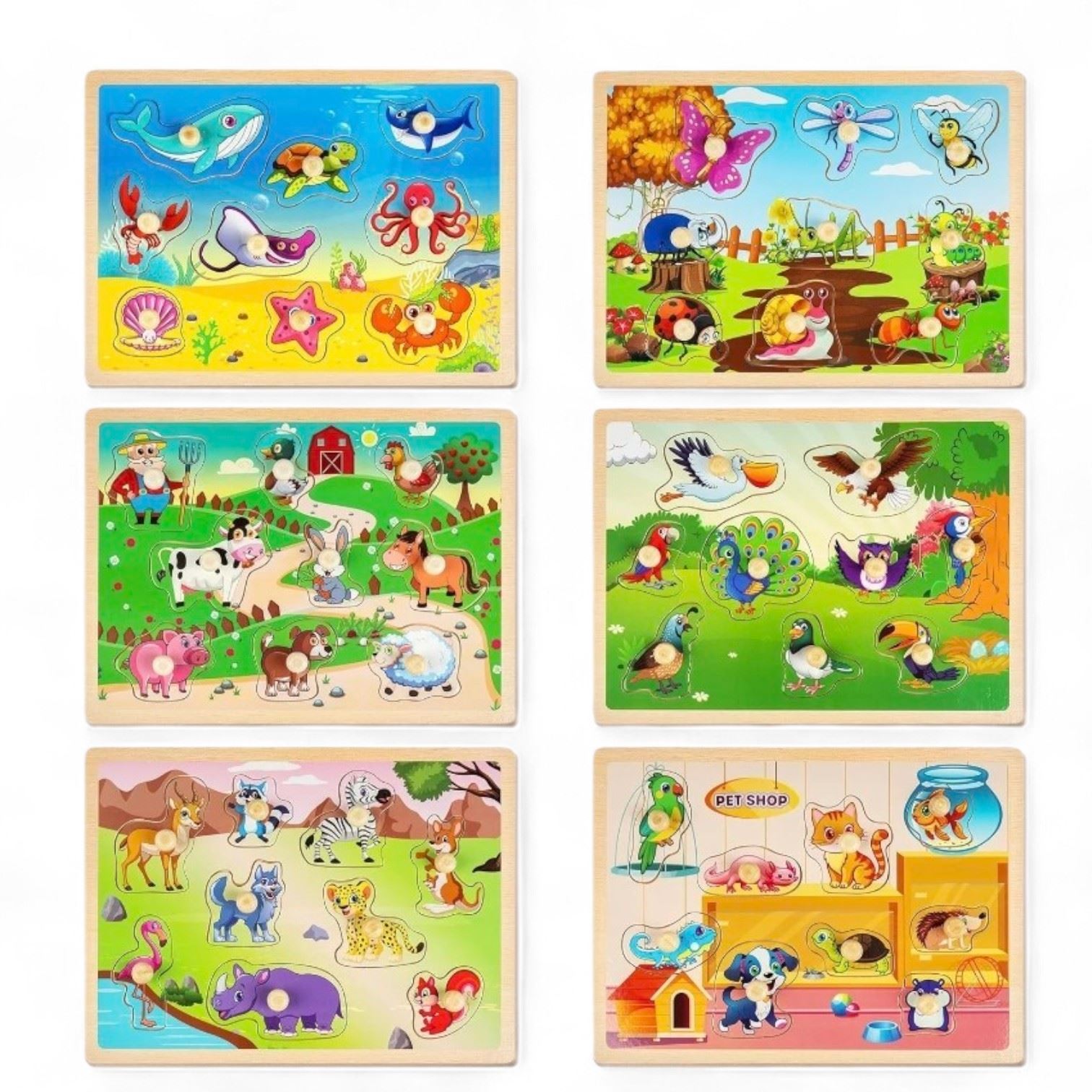 Group of Wooden Peg Puzzles