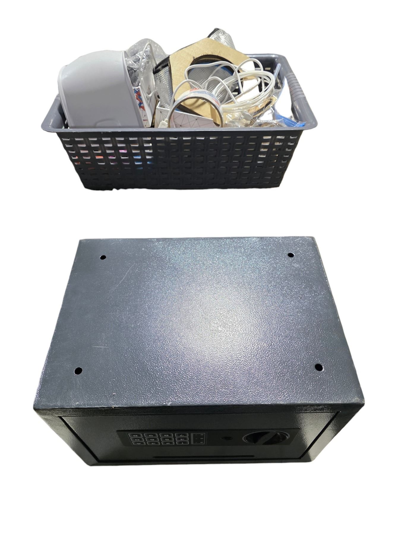Group of assorted Hand & Craft Wooden Supplies & Table-top Safe (Close - no key)