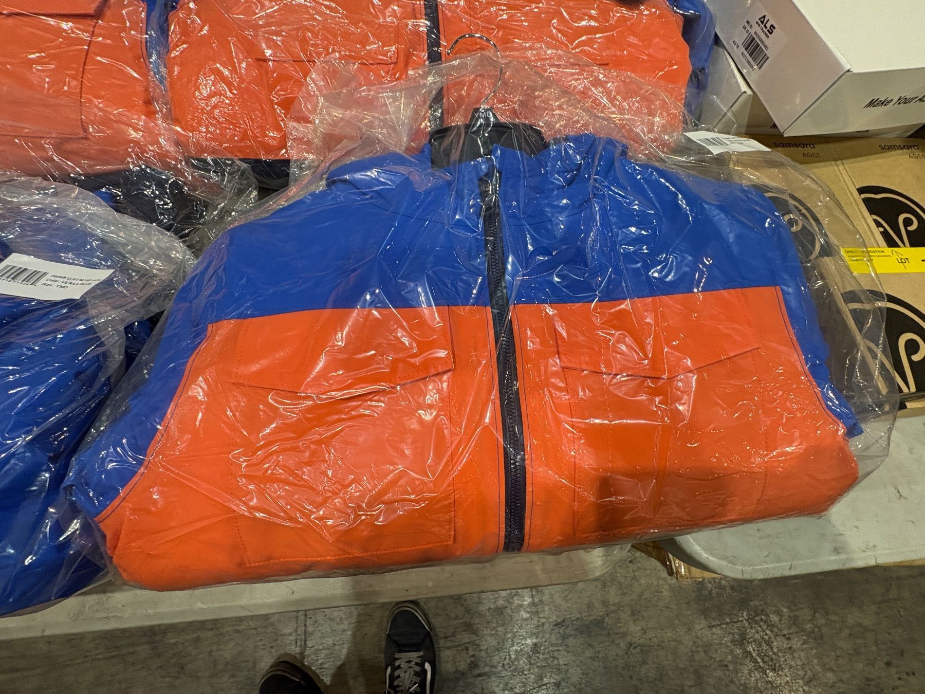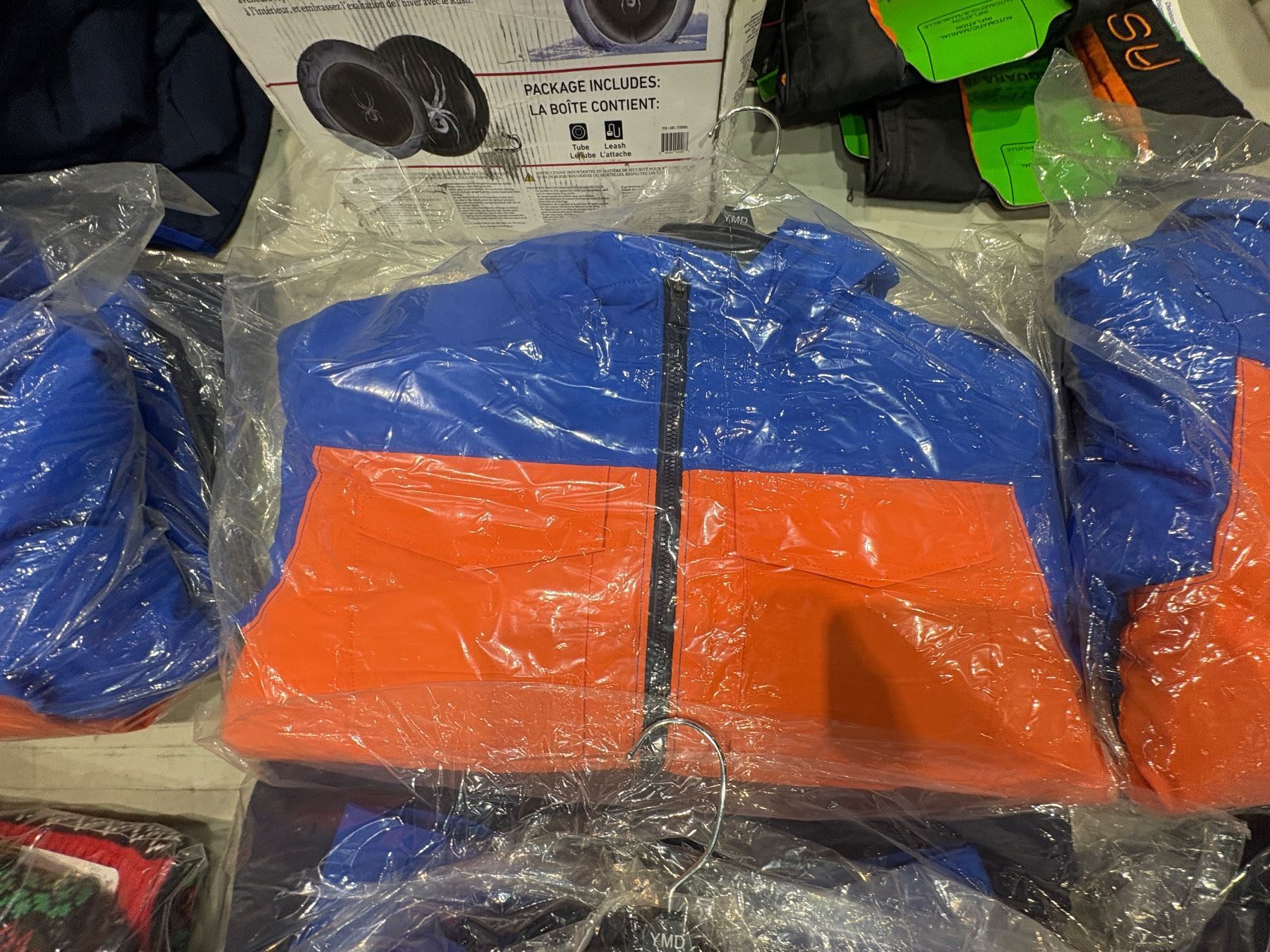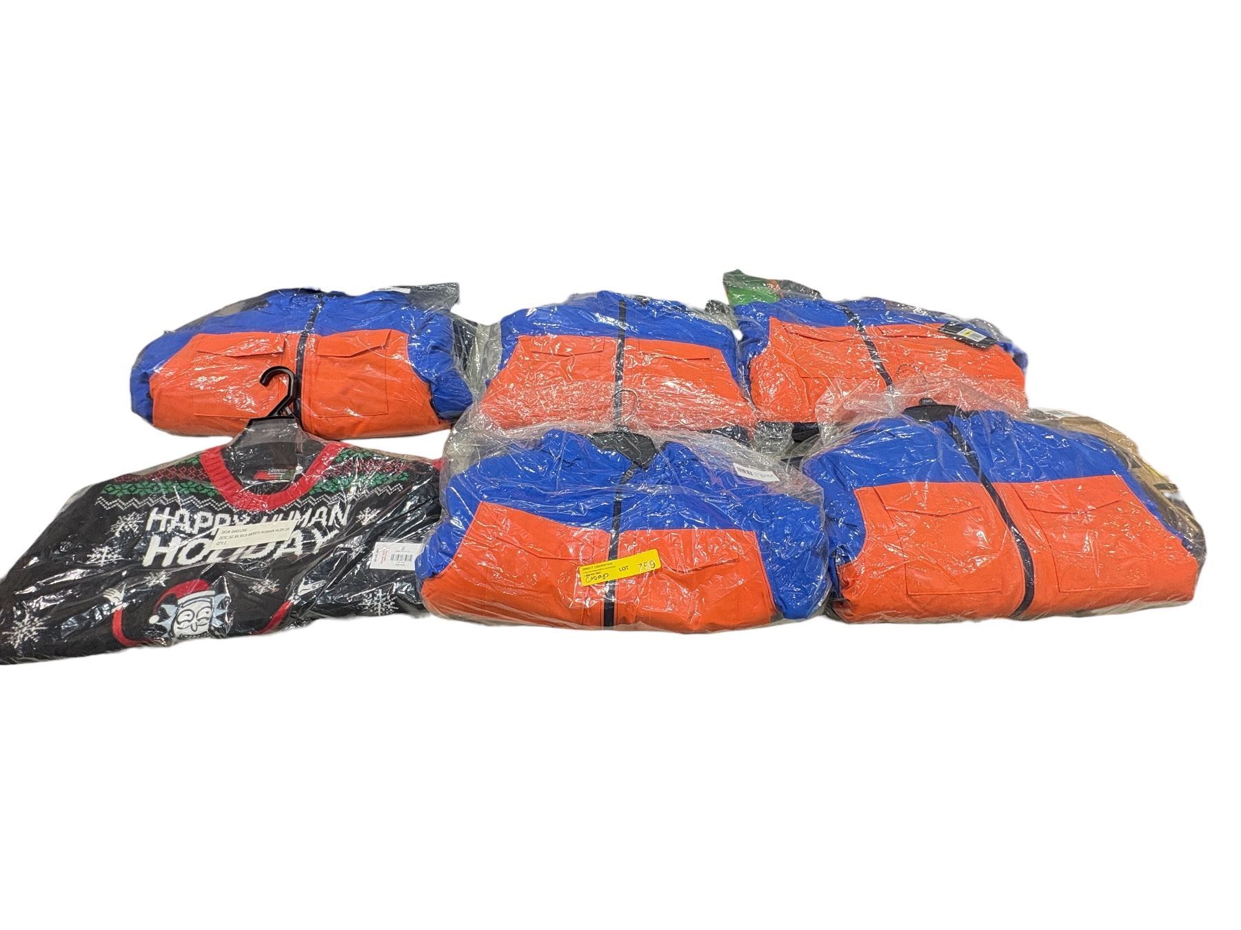 Group of assorted sizes Under Armour orange blue winter jackets & 1 Happy Human Holiday sweater 2XL