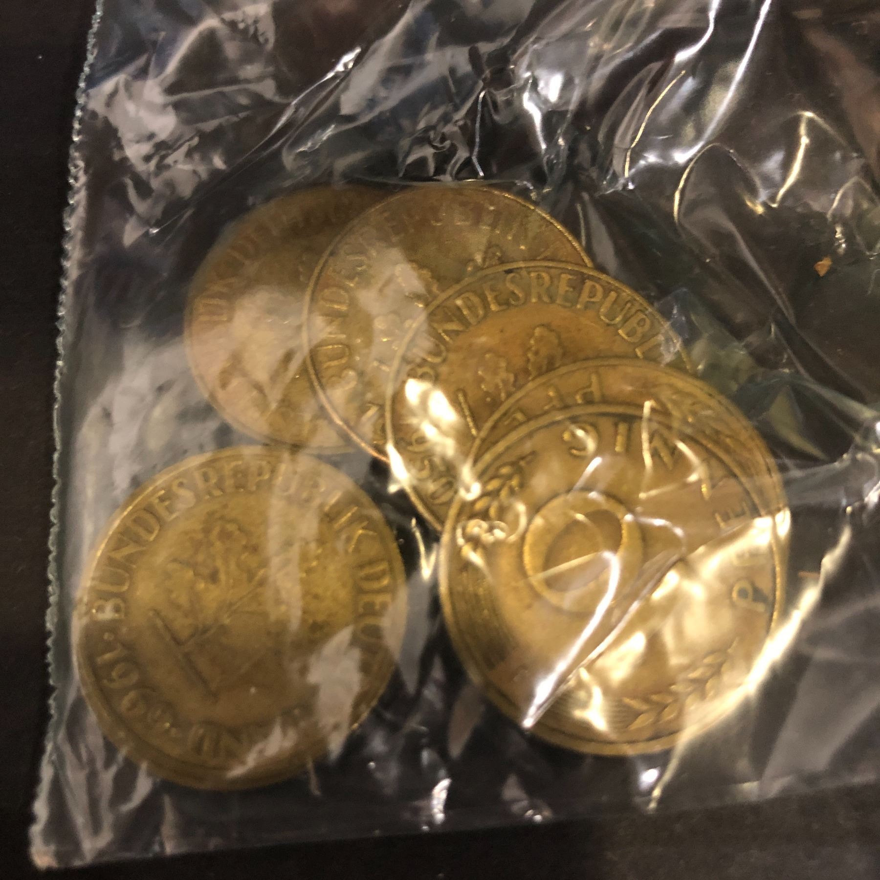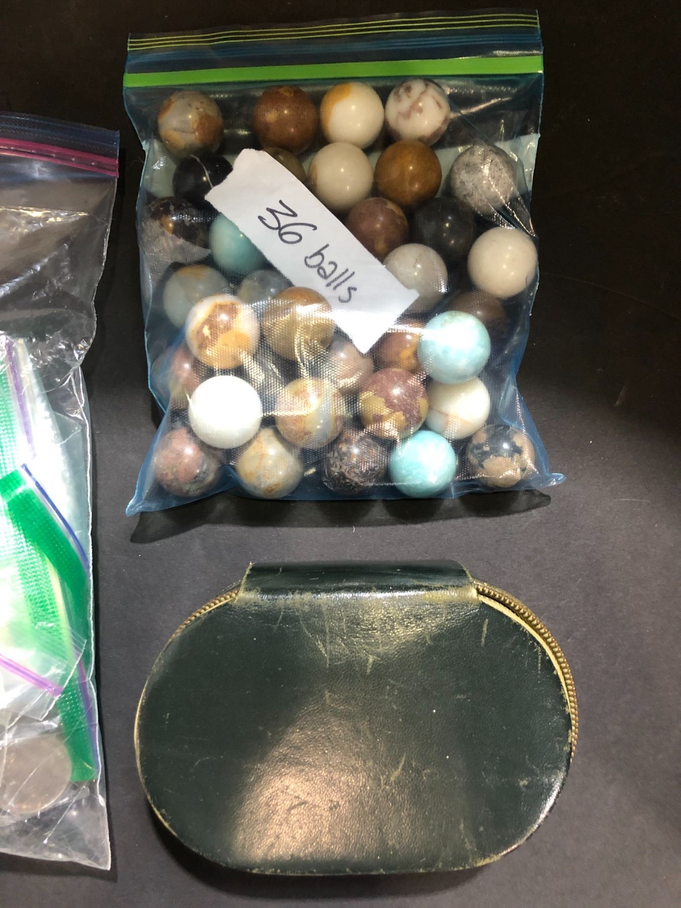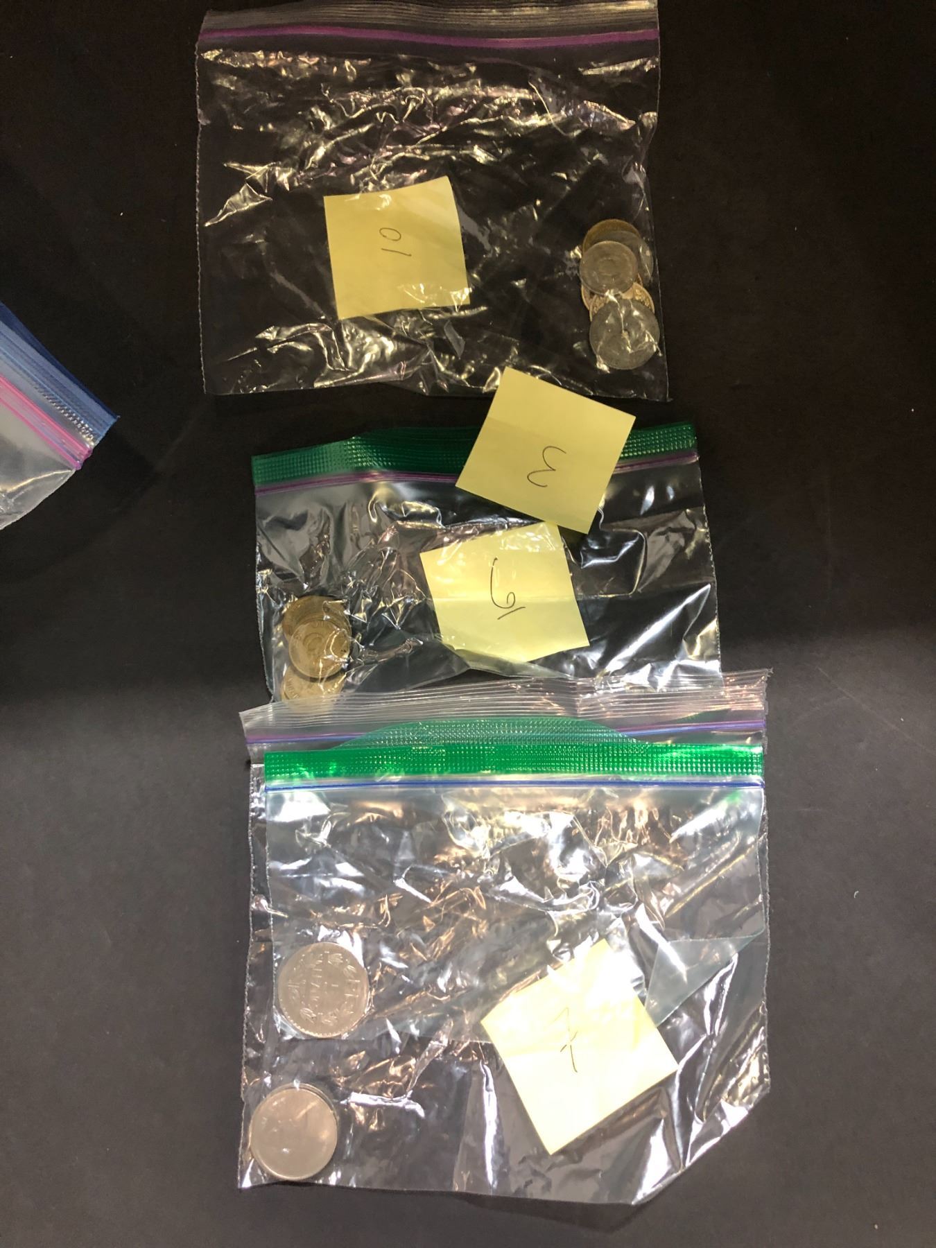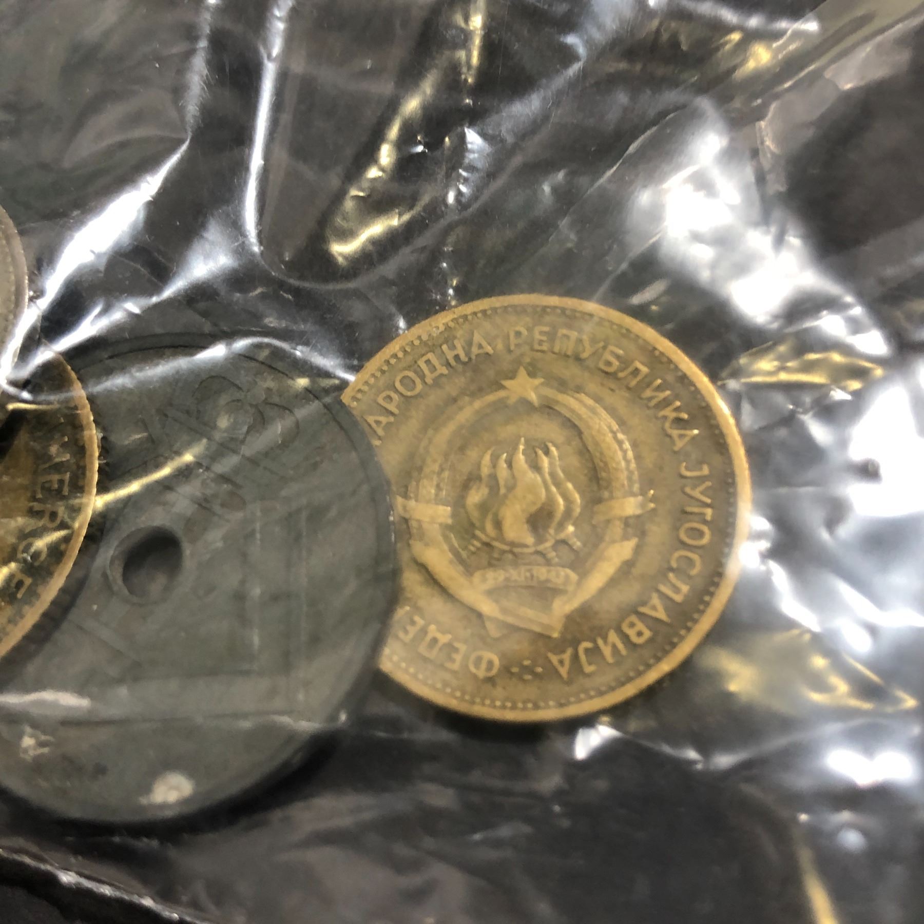 Group of misc items including - group of assorted coins from different countries, decor cats, wooden decor w/hummingbird, etc...
