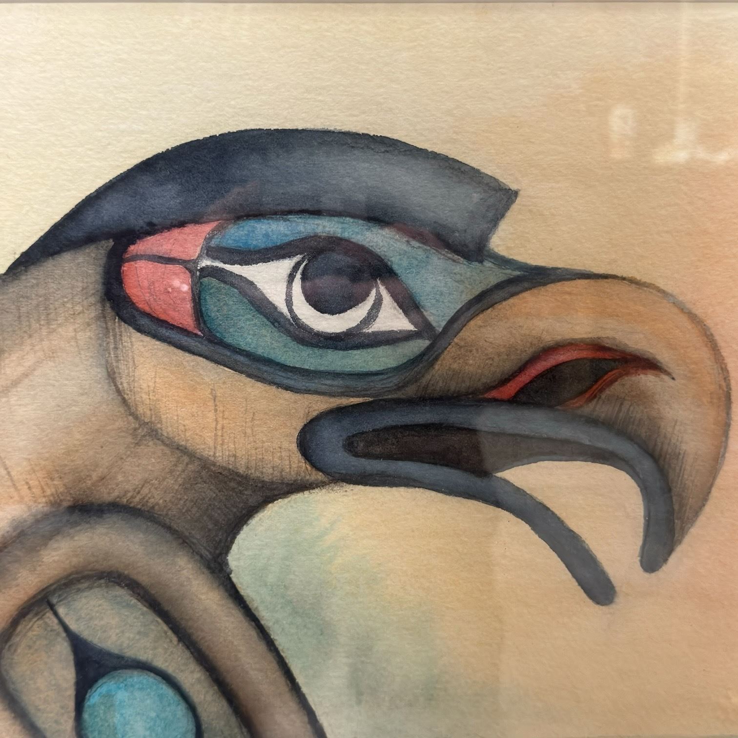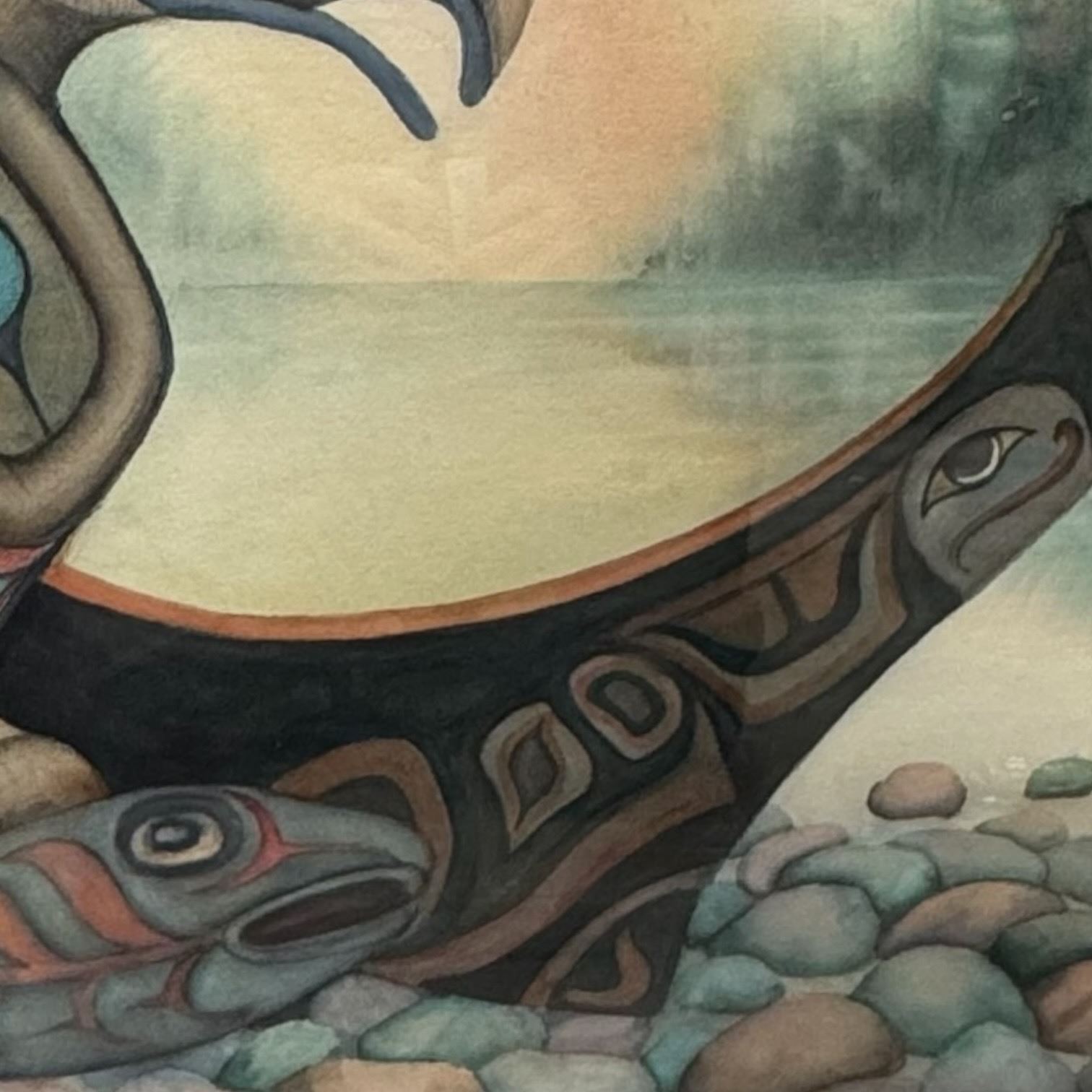 Gwen Butcher Framed Print "Eagle, Pole, Canoe" * Double matted with frame dimensions: 39" x 30"