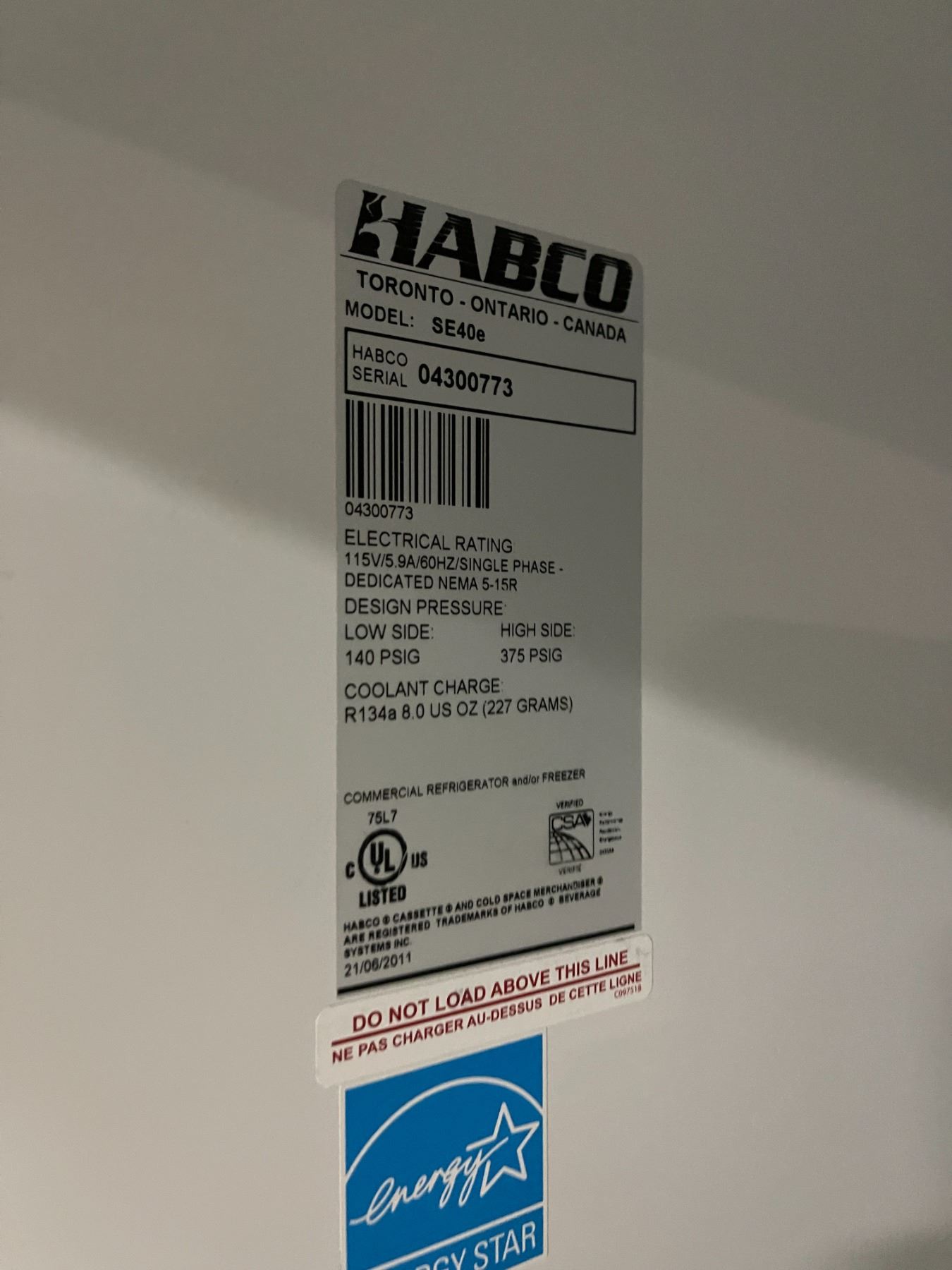 HABCO Commercial Refrigerator (Model SE40e - Serial #04300773) - Tested to power on