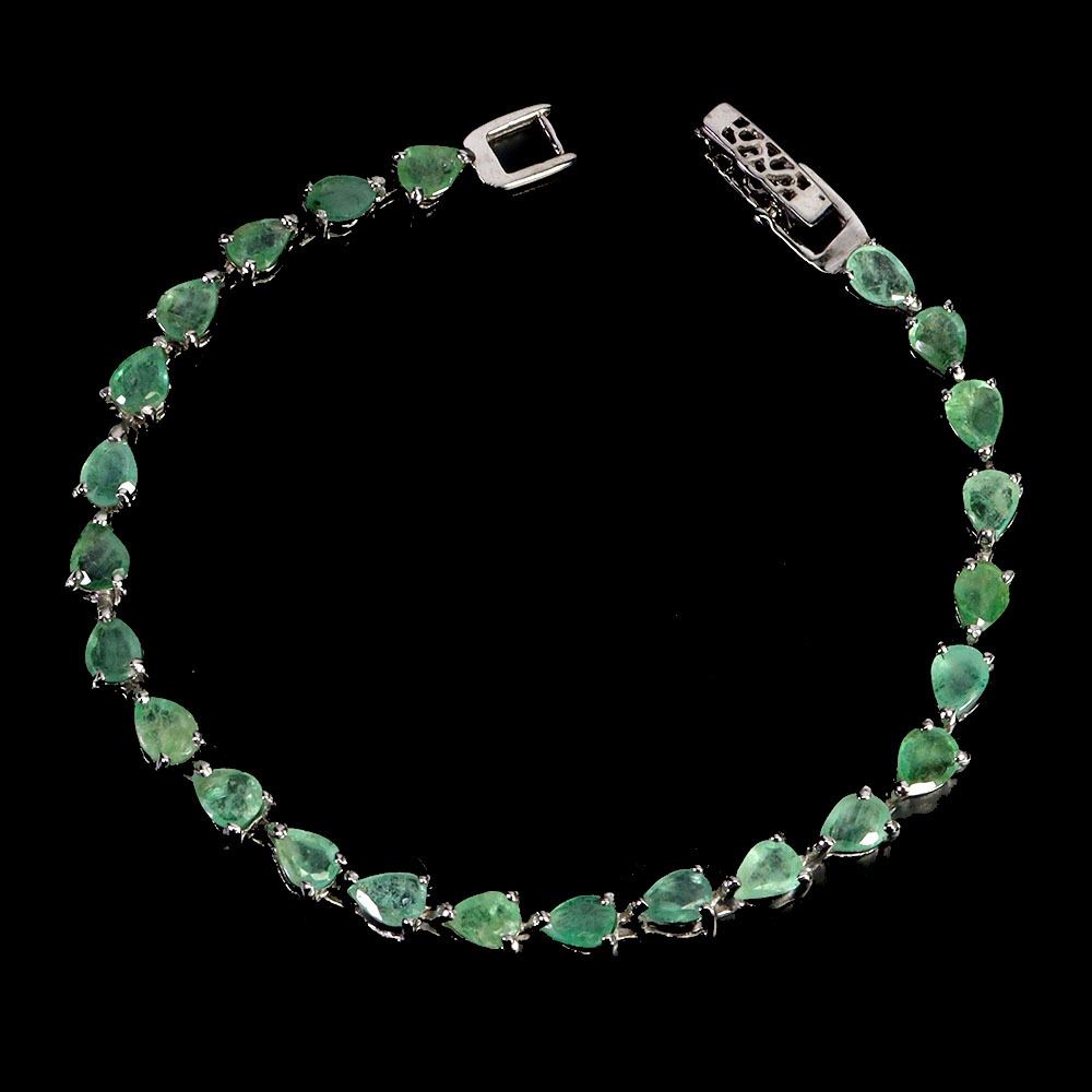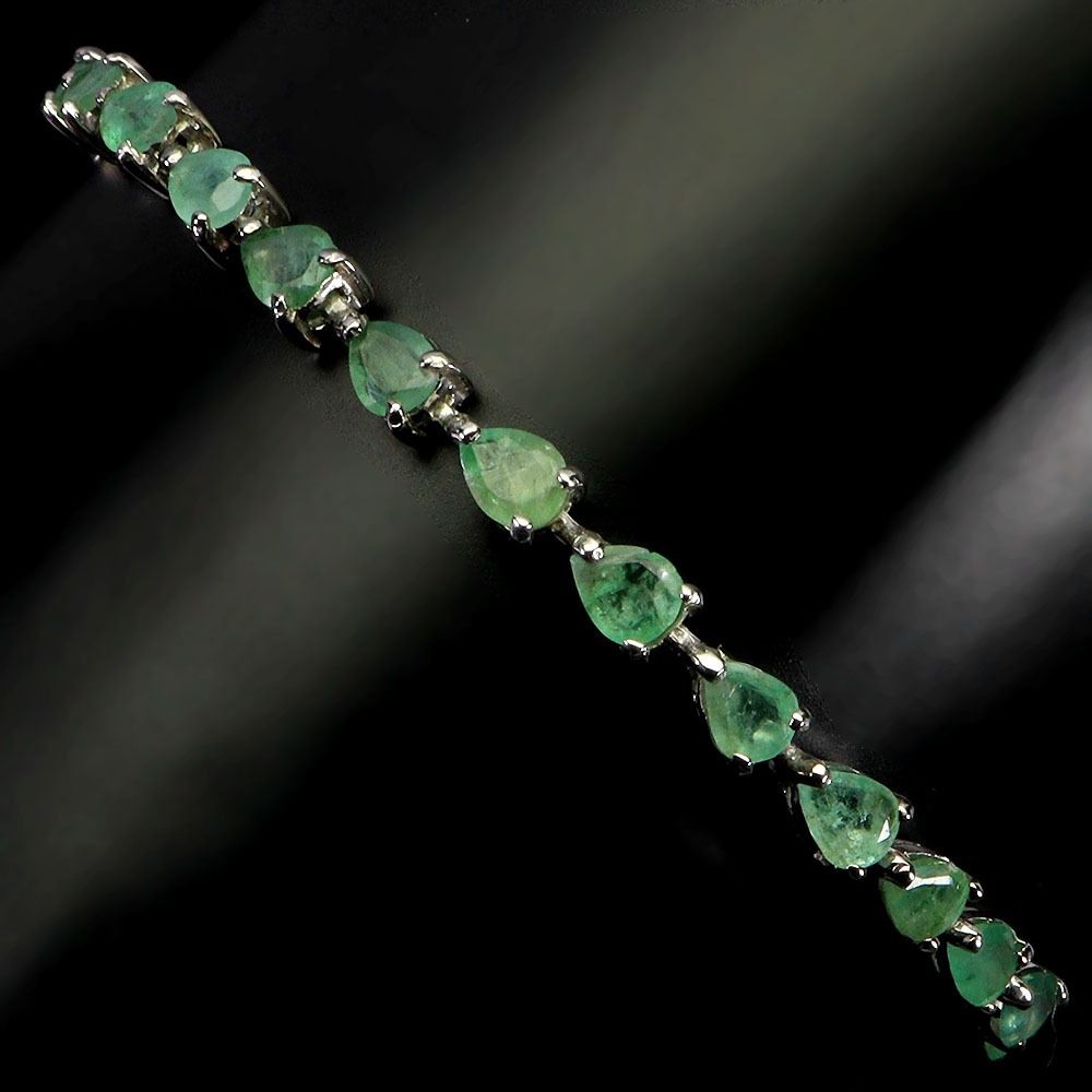 HIGH CLARITY PEAR CUT EMERALD BRACELET IN 14K WHITE GOLD PLATED OVER 925 STERLING SILVER - 6.5 INCHES LENGTH - APPRAISED REPLACEMENT VALUE CAD 2,950