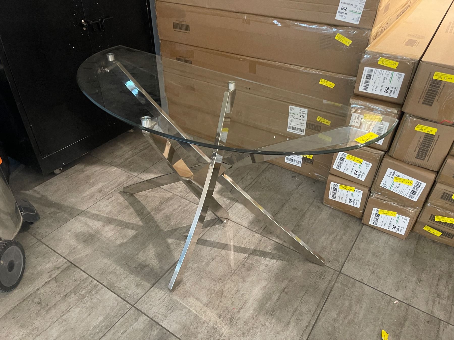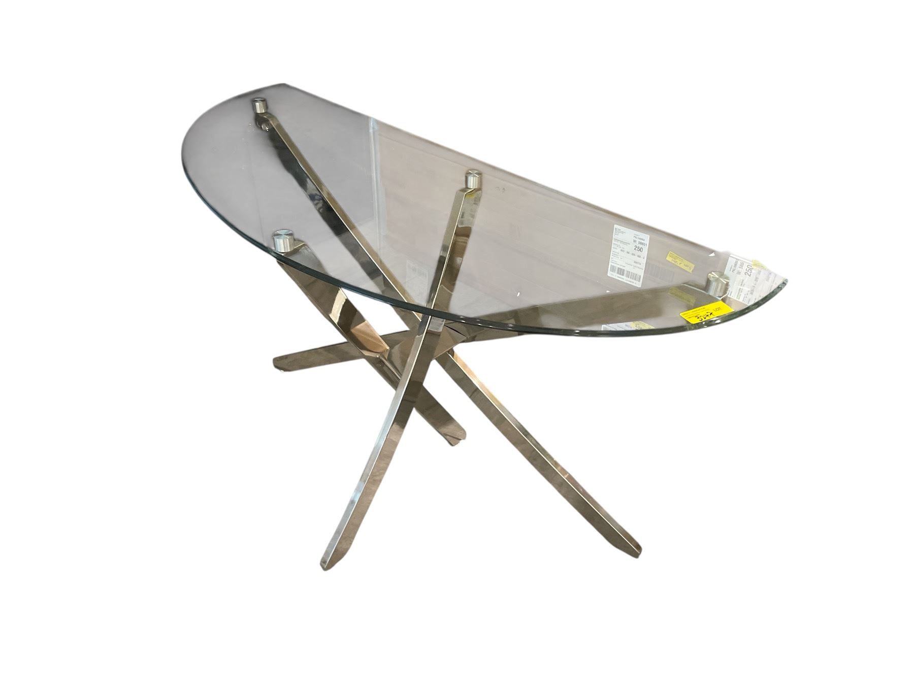 Half Moon Console Glass Table, H29" x W48" x D19"