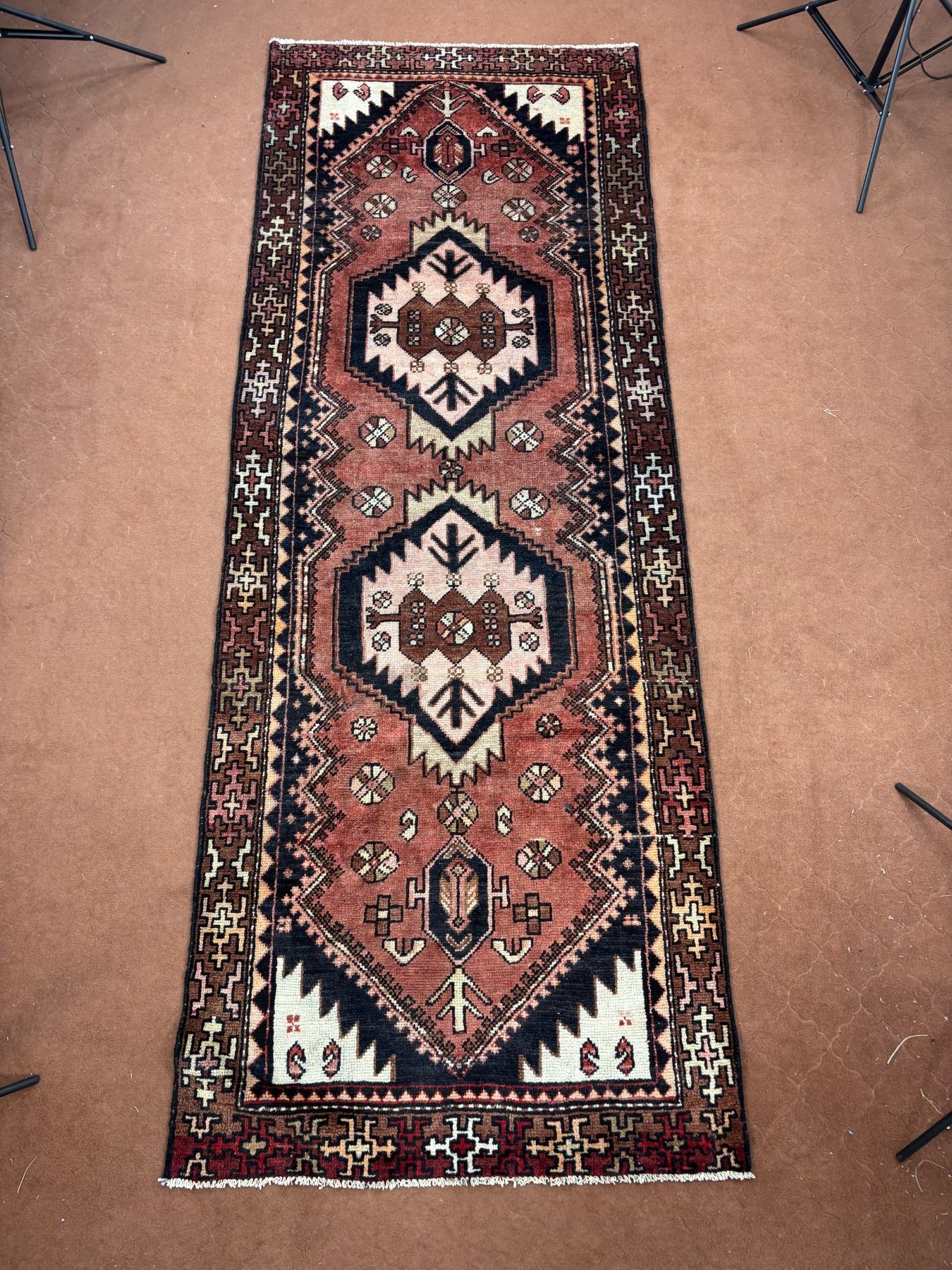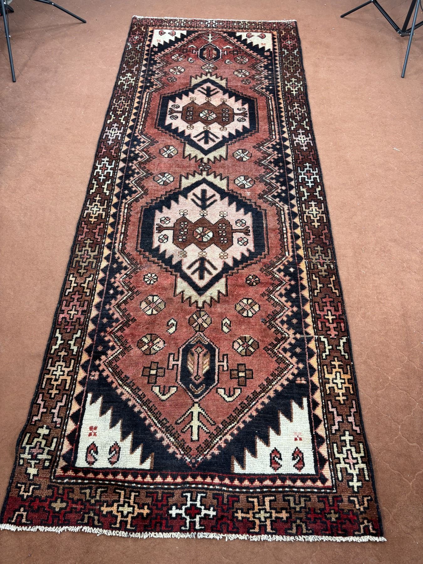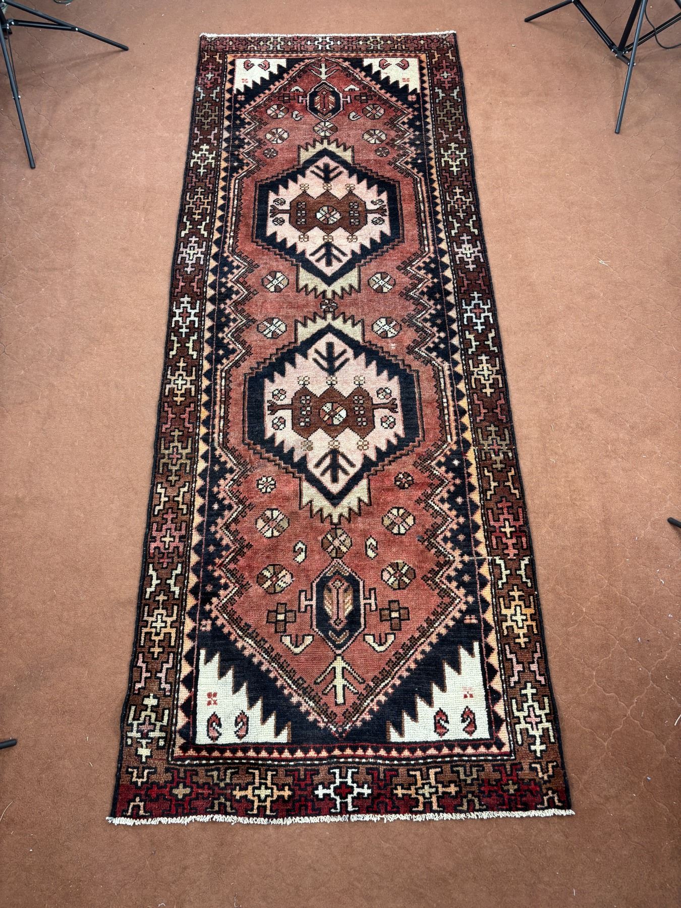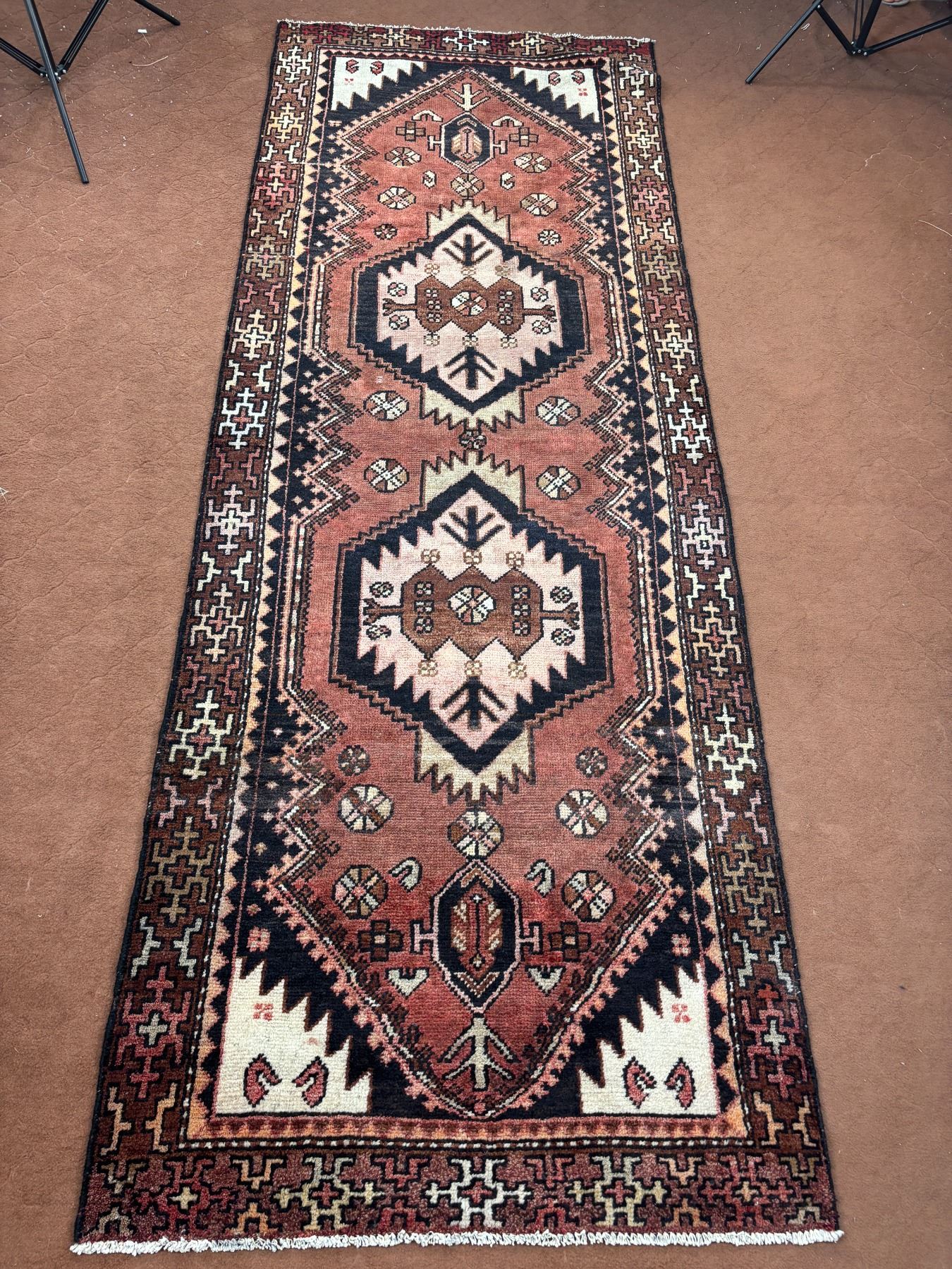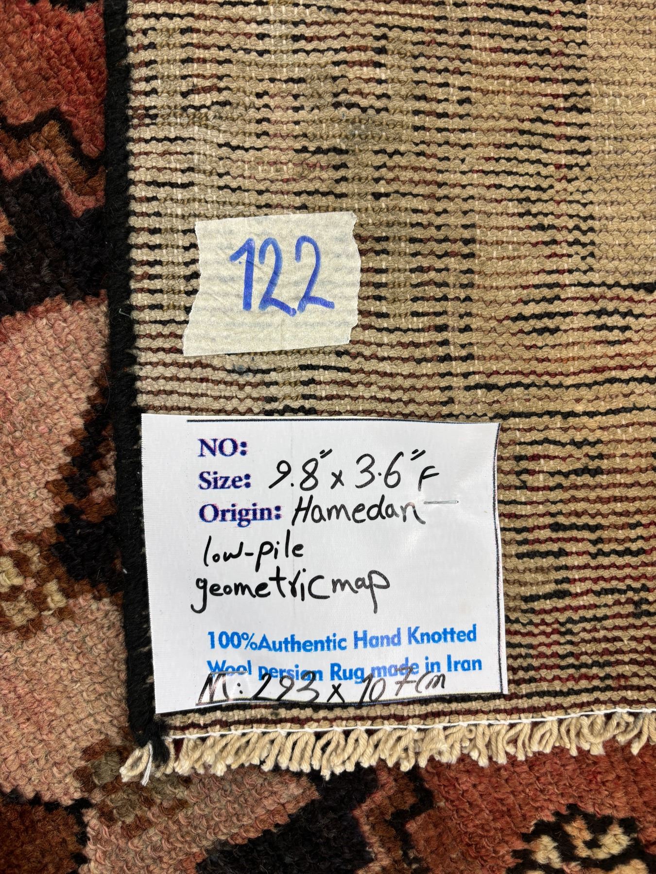 Hamedan - 100% Authentic Hand Knotted Wool Persian Rug - Handmade in Iran - 9.8" x 3.6" ft - No: 84