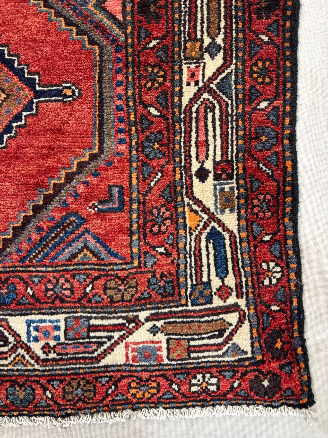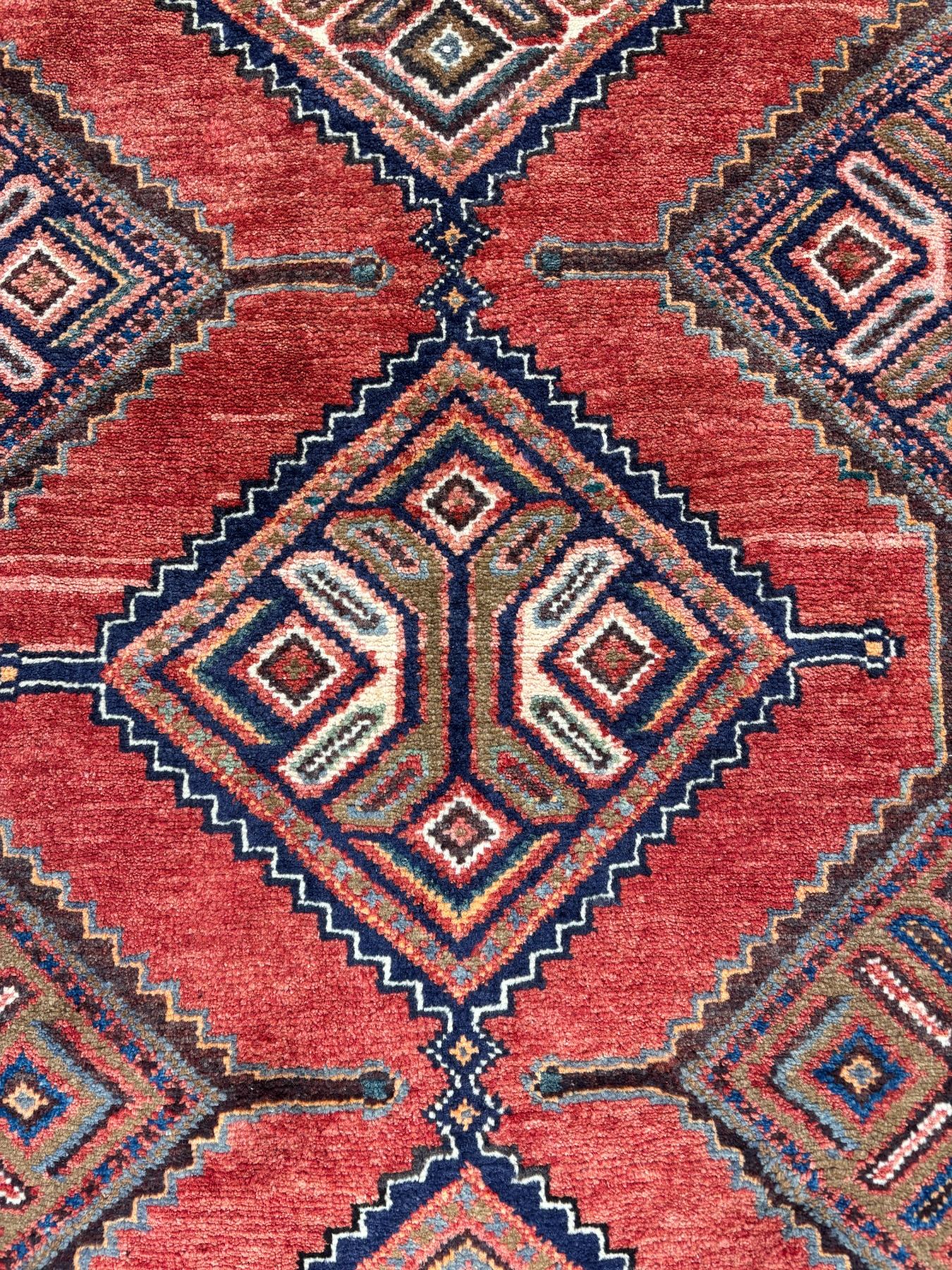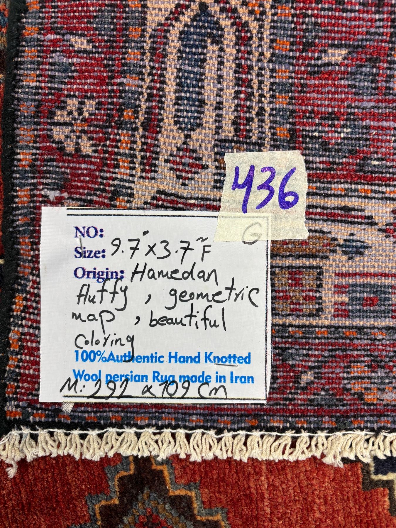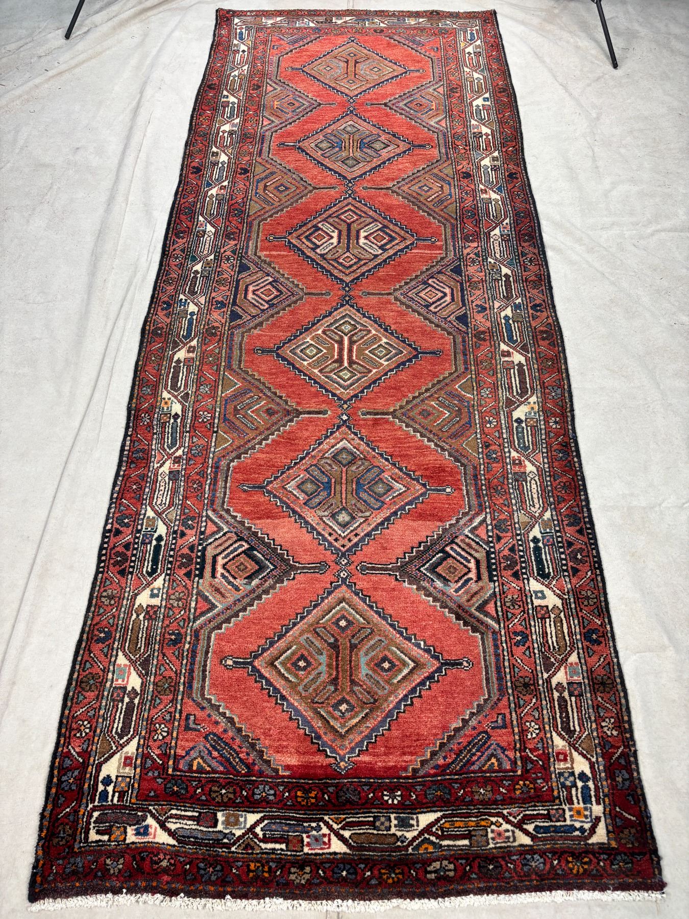 Hamedan 100% Authentic Hand Knotted Wool Persian Rug Handmade in Iran Fluffy Runner geometric map Beautiful coloring (These carpets have been washed professionally, and for this reason there are no 3tears or dirt in this carpet and it will be delivered to you clean and smooth. Don't miss the opportunity to buy such a carpet) Size: 9.7' × 3.7'