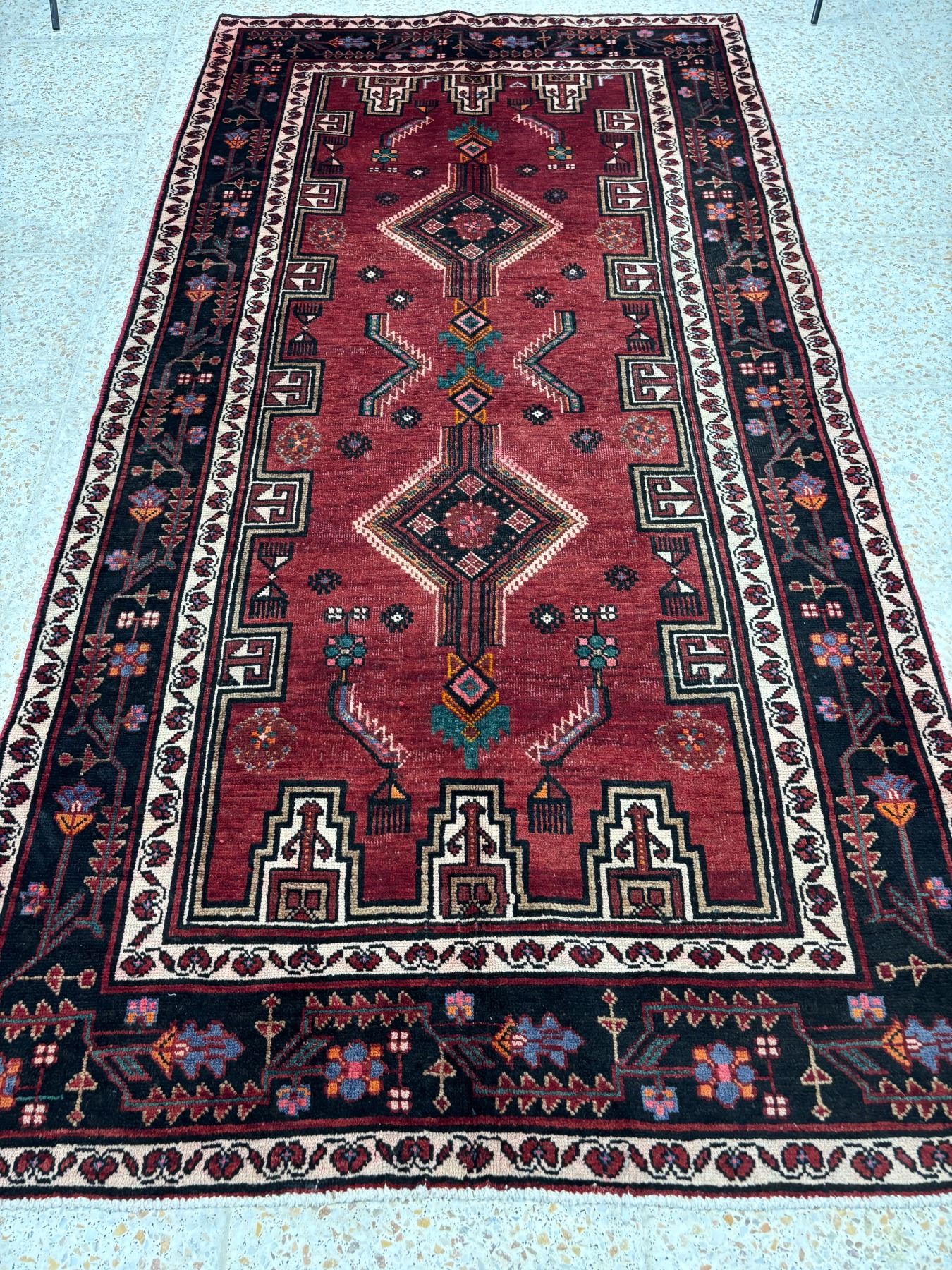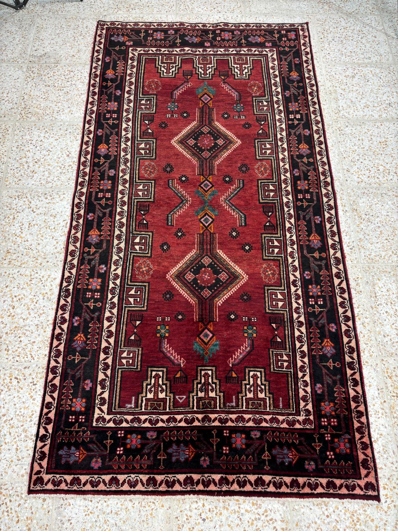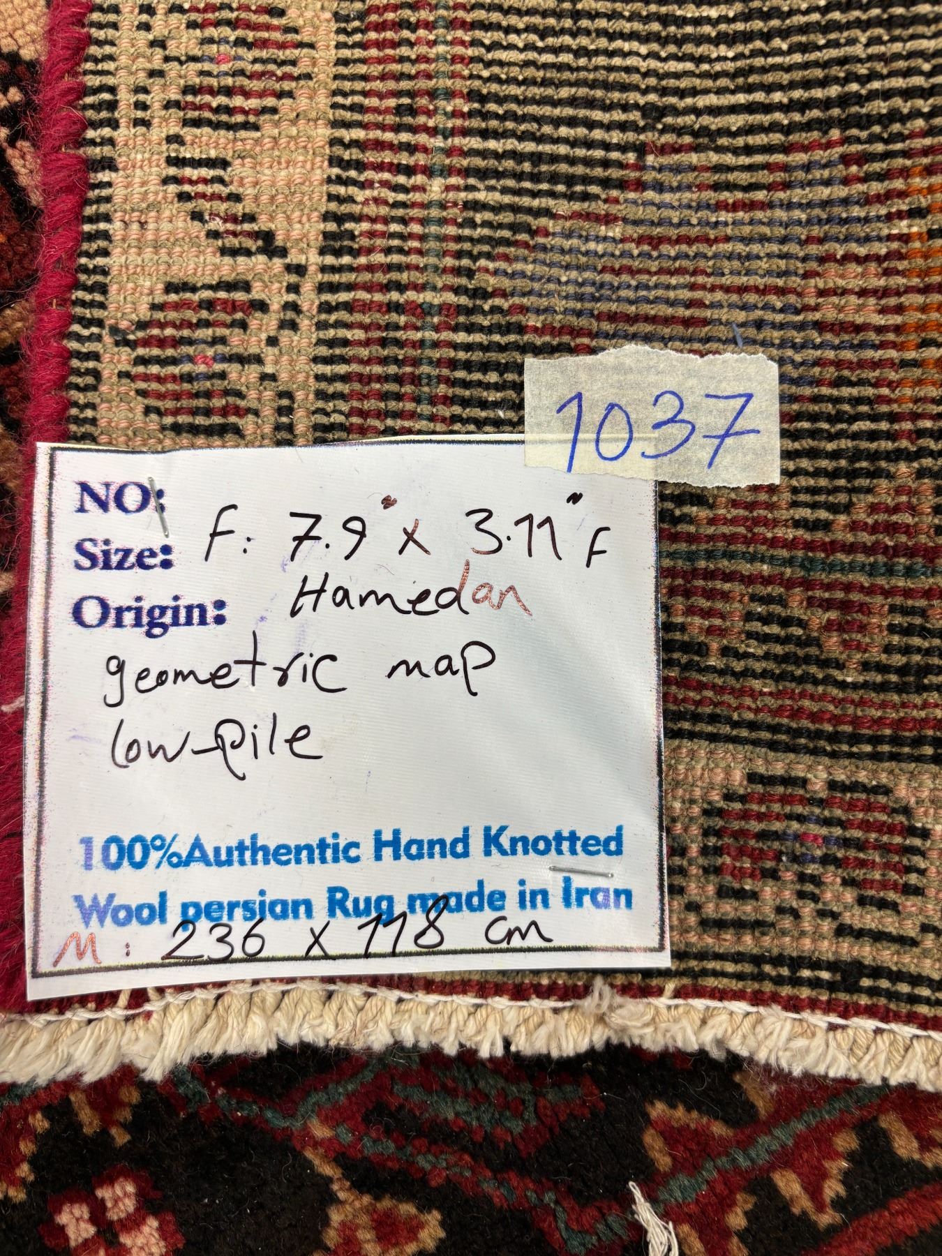 Hamedan 100% Authentic Hand Knotted Wool Persian Rug Handmade in Iran Low pile (These carpets have been washed professionally, and for this reason there are no 3tears or dirt in this carpet and it will be delivered to you clean and smooth. Don't miss the opportunity to buy such a carpet) Size: 7.9' × 3.11'