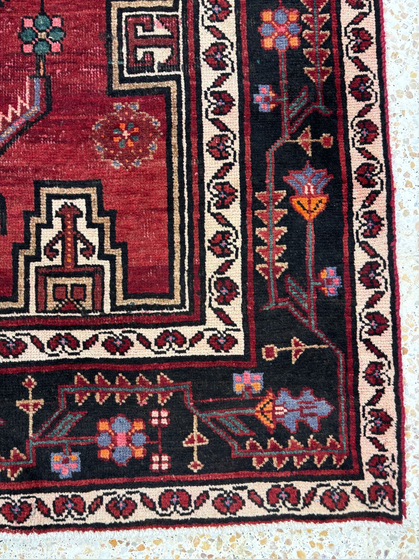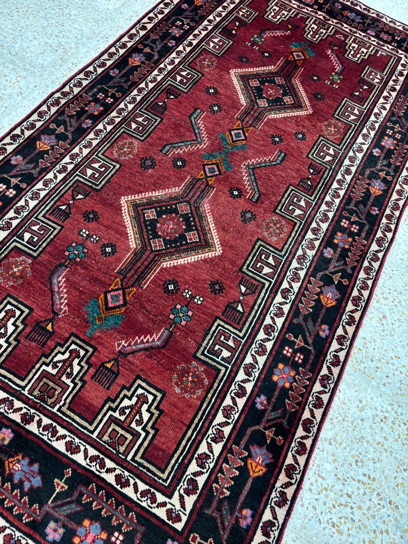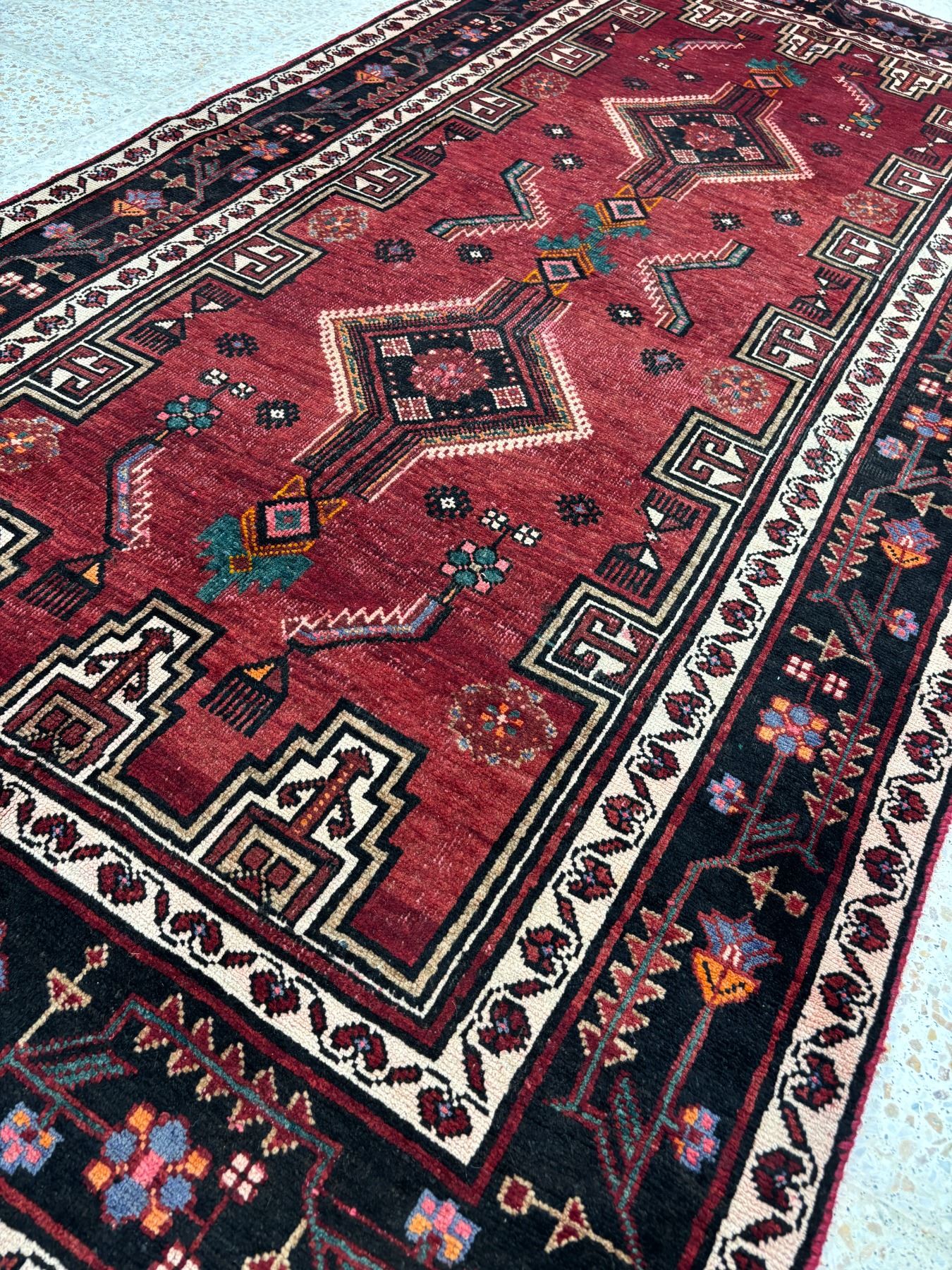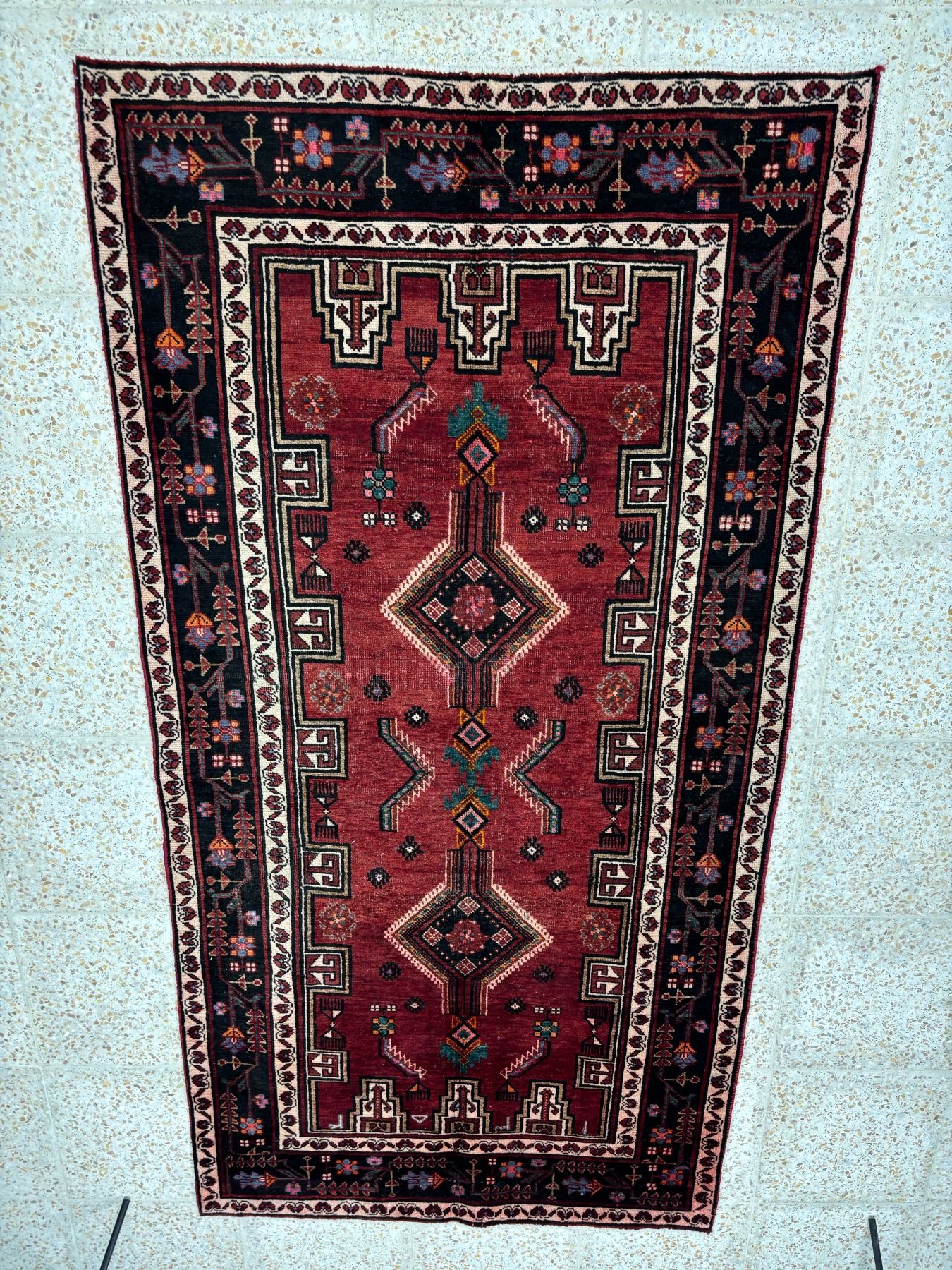 Hamedan 100% Authentic Hand Knotted Wool Persian Rug Handmade in Iran Low pile (These carpets have been washed professionally, and for this reason there are no 3tears or dirt in this carpet and it will be delivered to you clean and smooth. Don't miss the opportunity to buy such a carpet) Size: 7.9' × 3.11'
