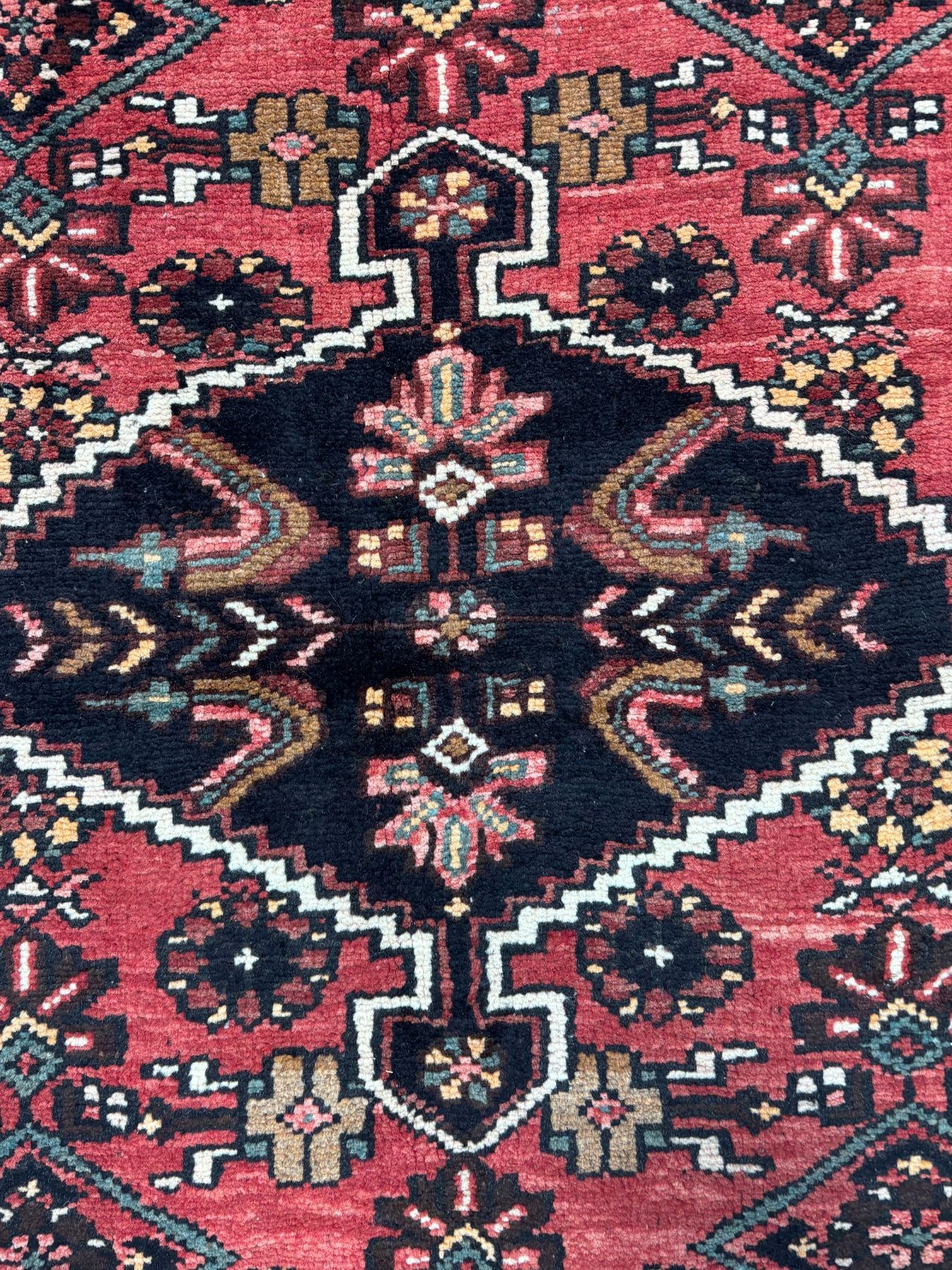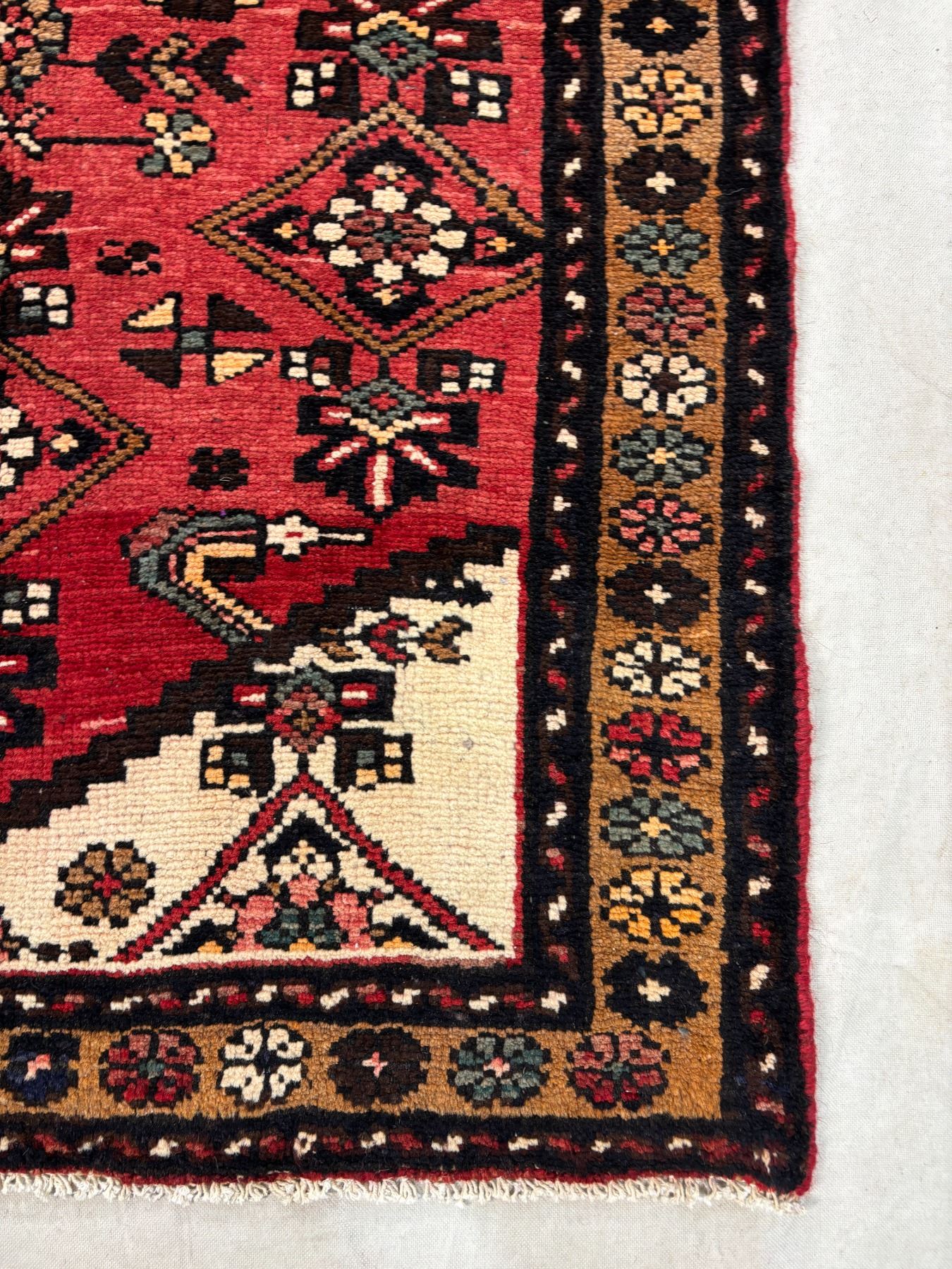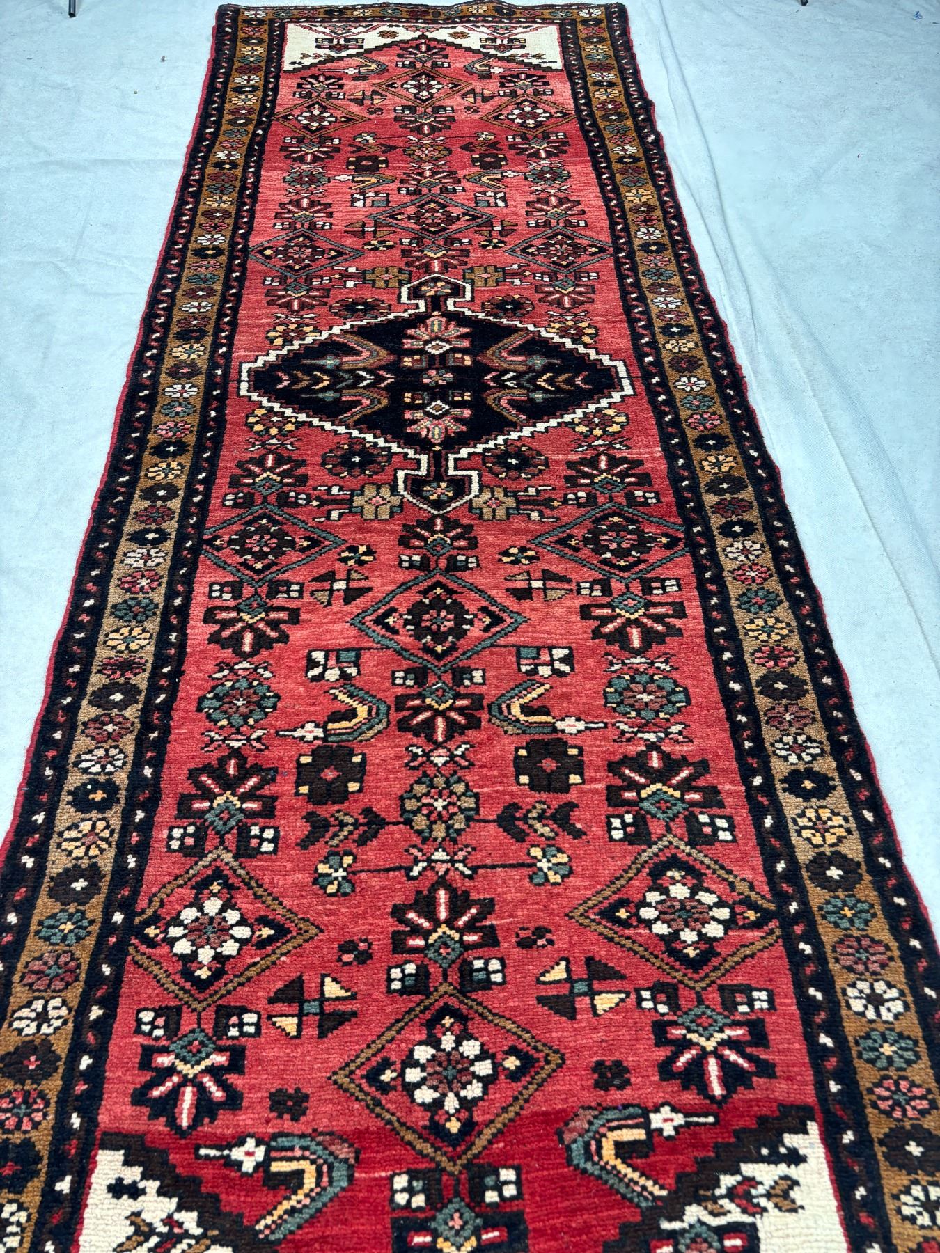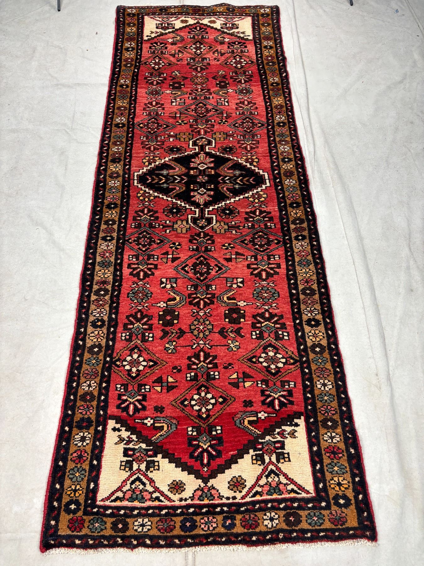 Hamedan 100% Authentic Hand Knotted Wool Persian Rug Handmade in Iran The variety of beautiful color Fluffy Runner (These carpets have been washed professionally, and for this reason there are no 3tears or dirt in this carpet and it will be delivered to you clean and smooth. Don't miss the opportunity to buy such a carpet) Size: 9.4' × 3.2'