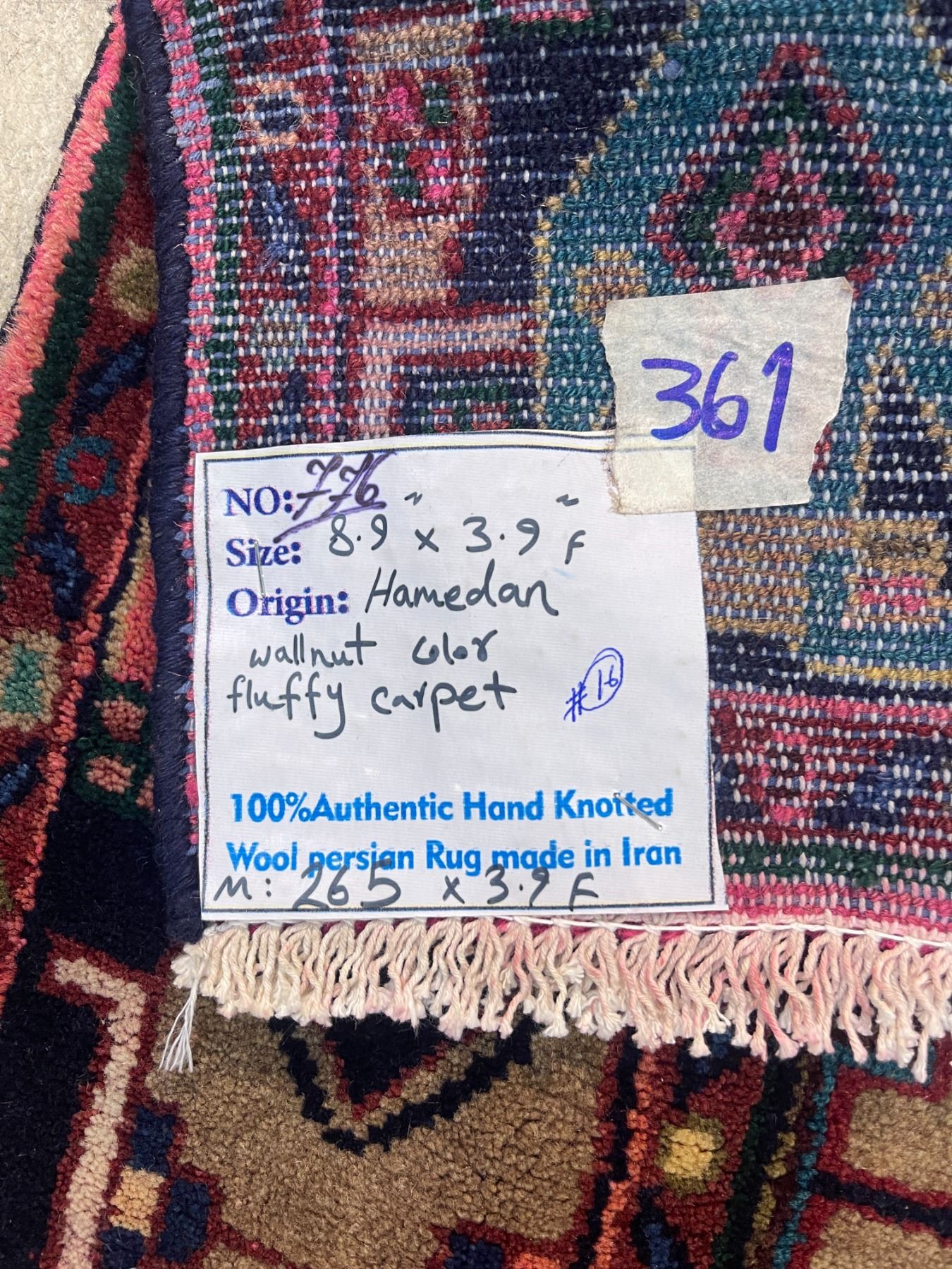 Hamedan Walnut Colour Fluffy Carpet 100% Authentic Hand Knotted Wool Persian Rug Handmade in Iran (M:265x39cm)