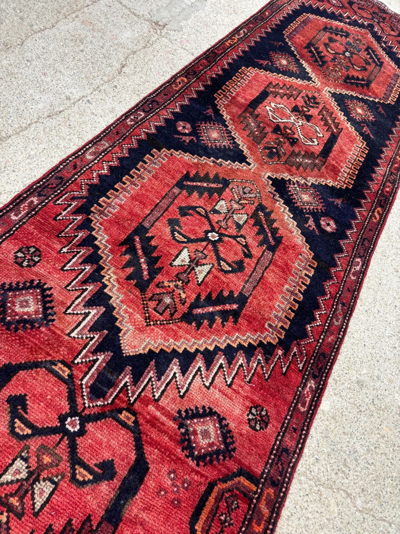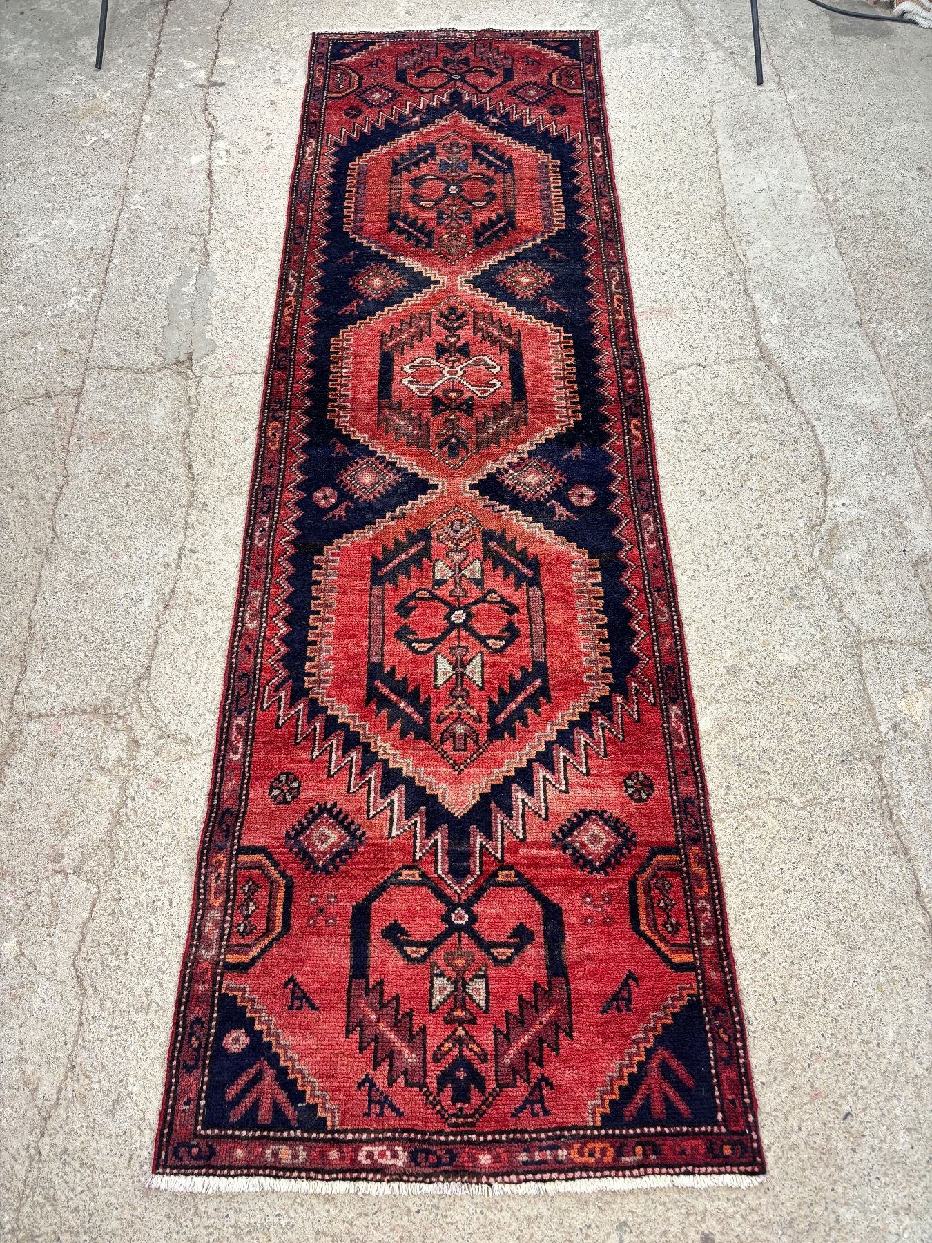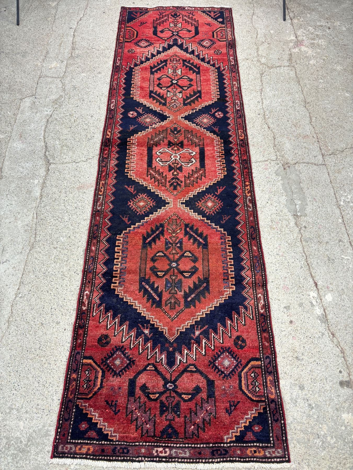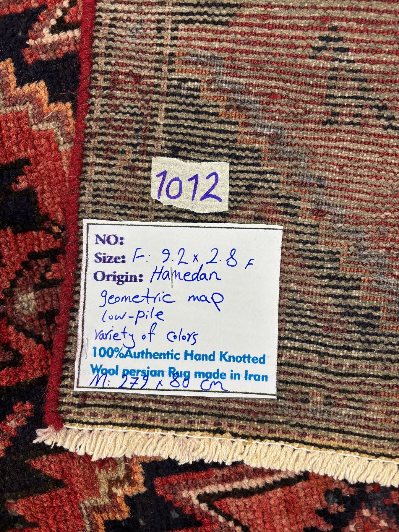 Hamedan geometric map Variety of colours Low pile 100% Authentic Hand Knotted Wool Persian Rug Handmade in Iran (Size 9.2' x 2.8' ft - 279x80 cm) (These carpets have been washed professionally, and for this reason there are no tears or dirt in this carpet and it will be delivered to you clean and smooth. Don't miss the opportunity to buy such a carpet)