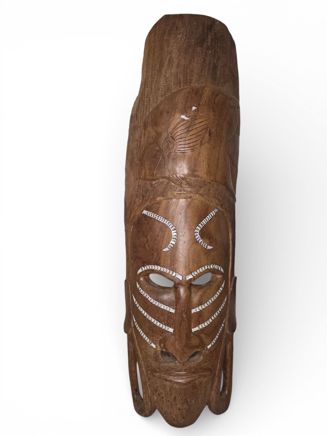 Hand-Carved Wooden Tribal Wall Mask, Approx. H28" x W8"