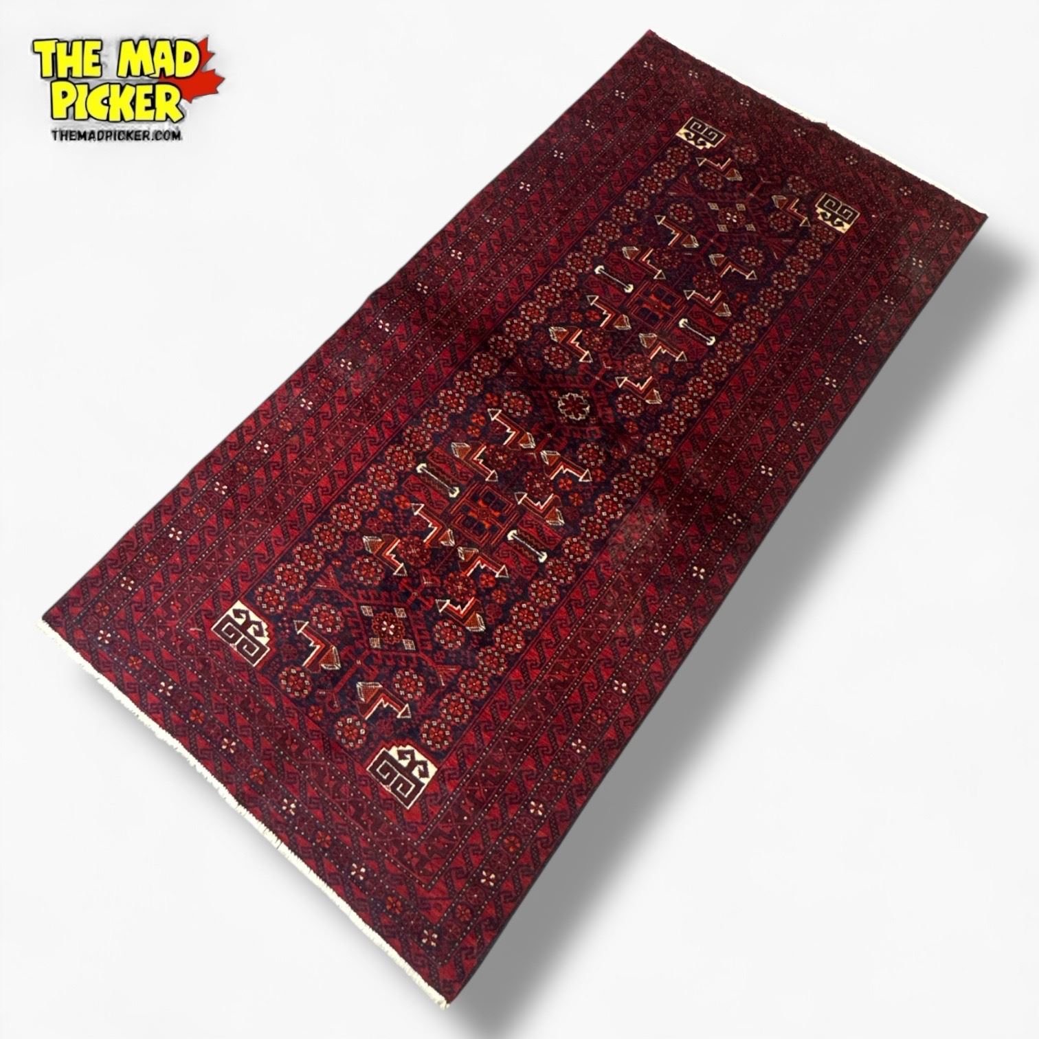 This Persian rug features a Baleuh design with intricate all-over coloring. Hand-knotted from 100% wool, it was crafted in Iran, showcasing traditional techniques and craftsmanship. The rug measures 200 X 102cm, ideal for accentuating home decor.