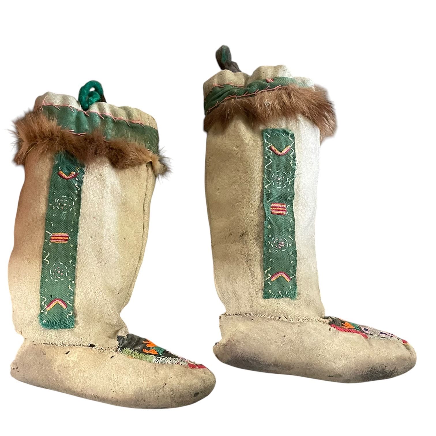 Handcrafted Beaded Early 21st Century Wool/fur/leather Mukluk Boots
