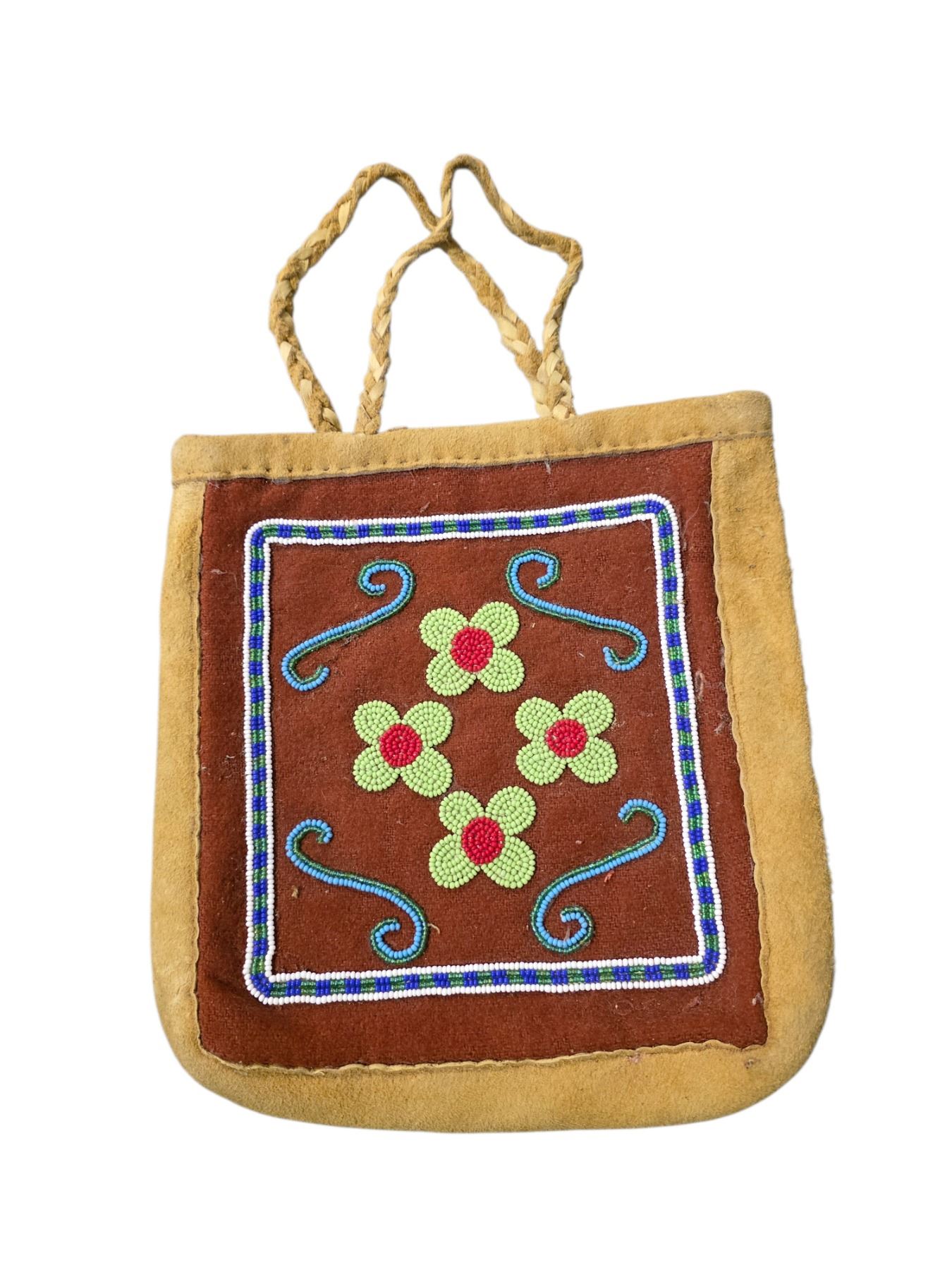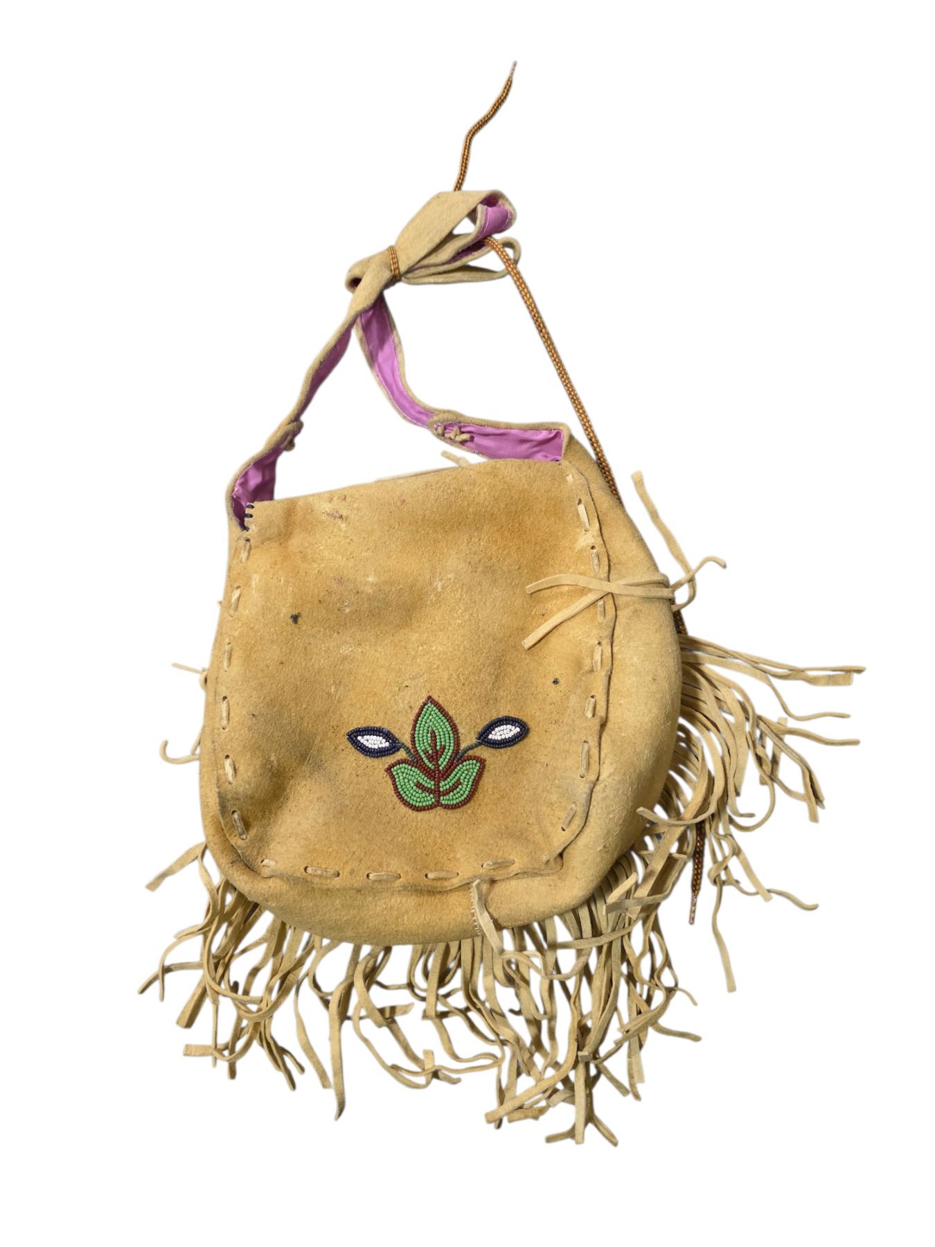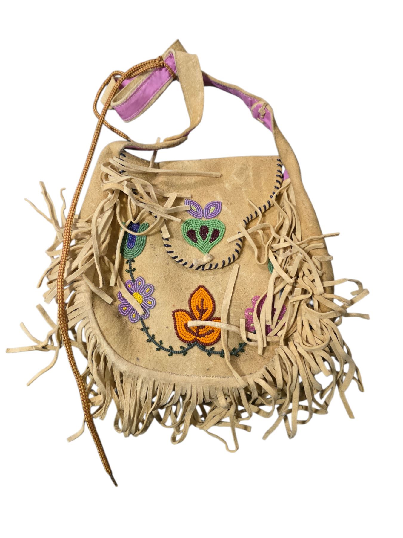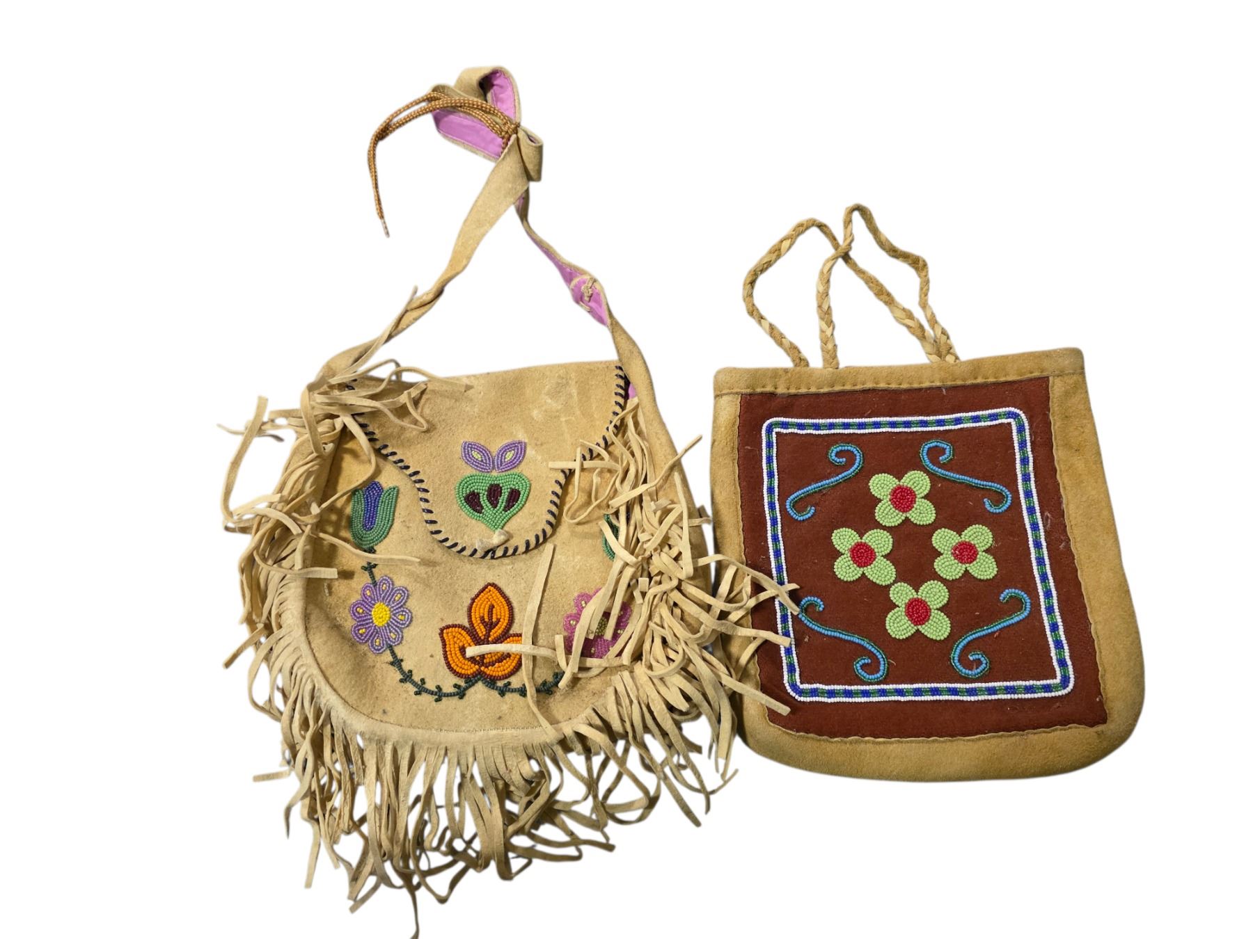 Handcrafted Beaded and Fringed Native Leather Bags, Approx. 10" x 9" Each