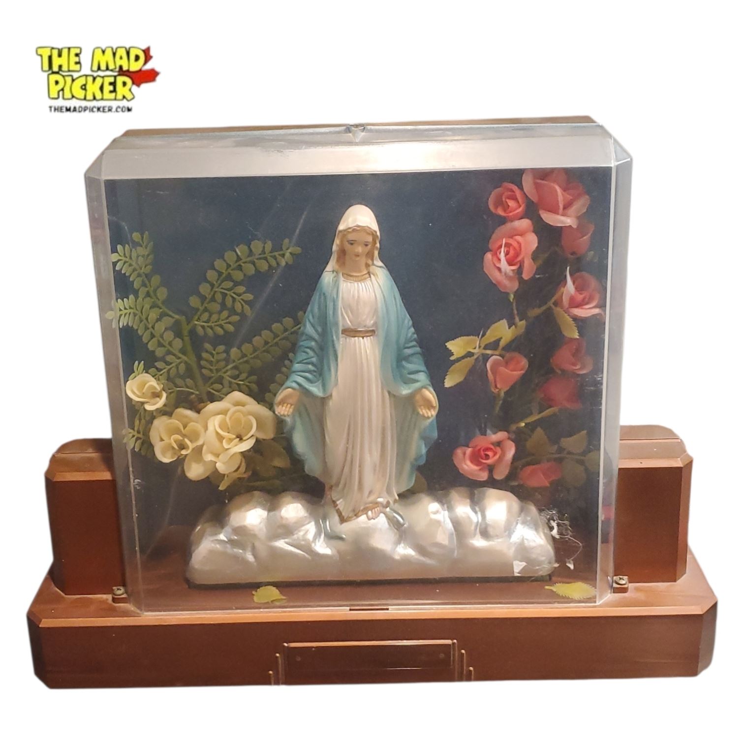 Handcrafted Display Case with Miraculous Madonna Style Statue - 17in wide