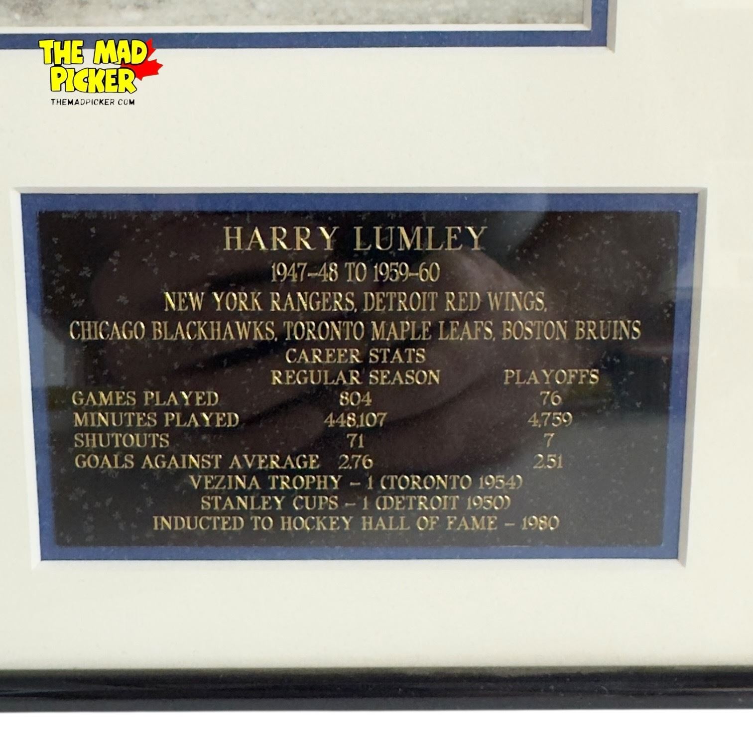 Harry Lumley Autographed Toronto Maple Leafs Vintage Photo Framed 12x16.5" Plaque COA Moments