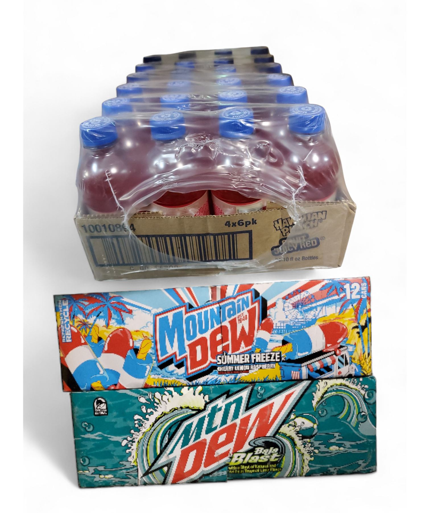 Hawaiian Punch Fruit Juicy Red (24 Bottles), Mountain Dew Summer Freeze & Baja Blast (2 × 12-Pack Cans - Best By Jun 09, 2025 / Dec 08, 2025 / Dec 15, 2025