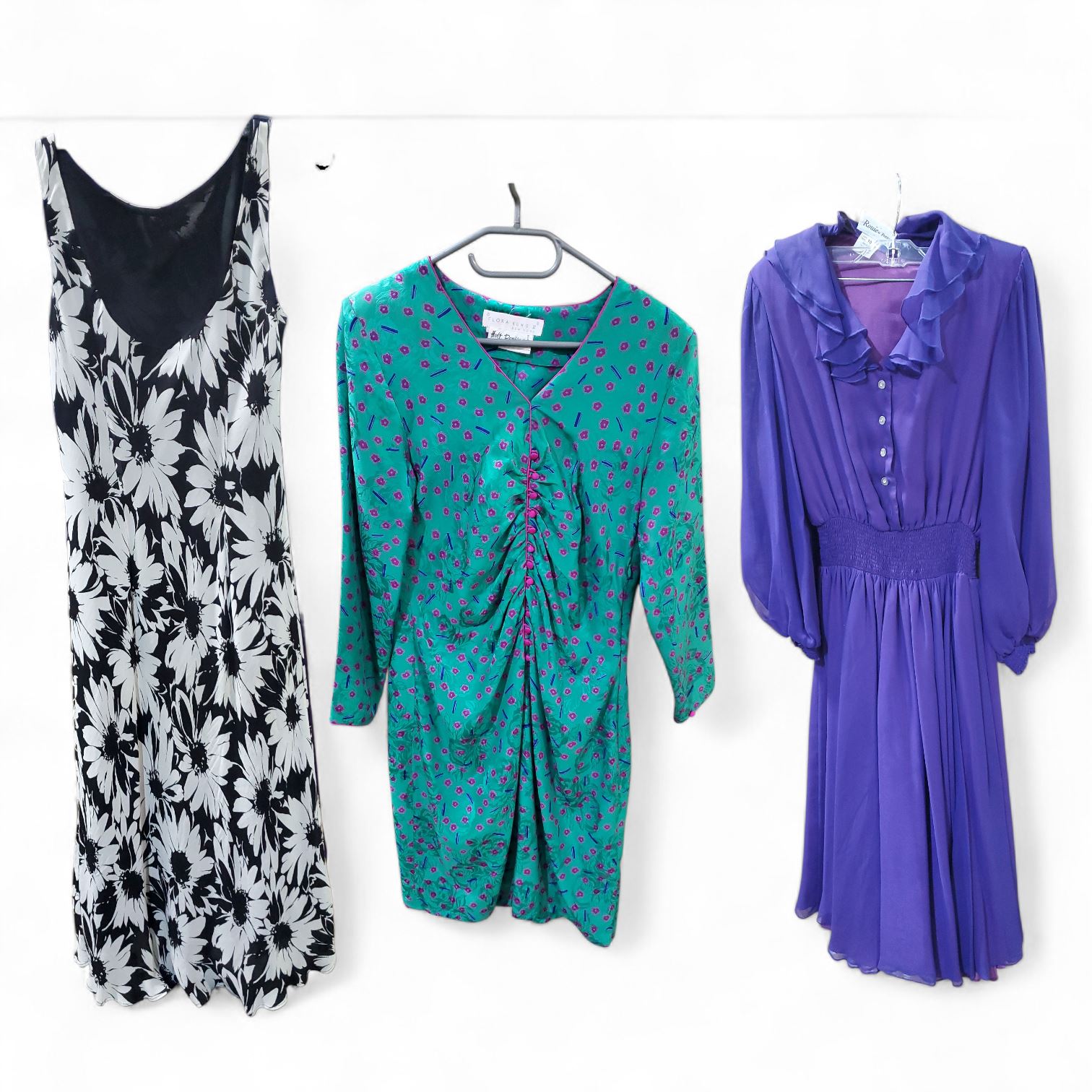 Holt Renfrew Flora Kung II NY 100% Silk Green Ruched Dress, and 2 Floral Dresses