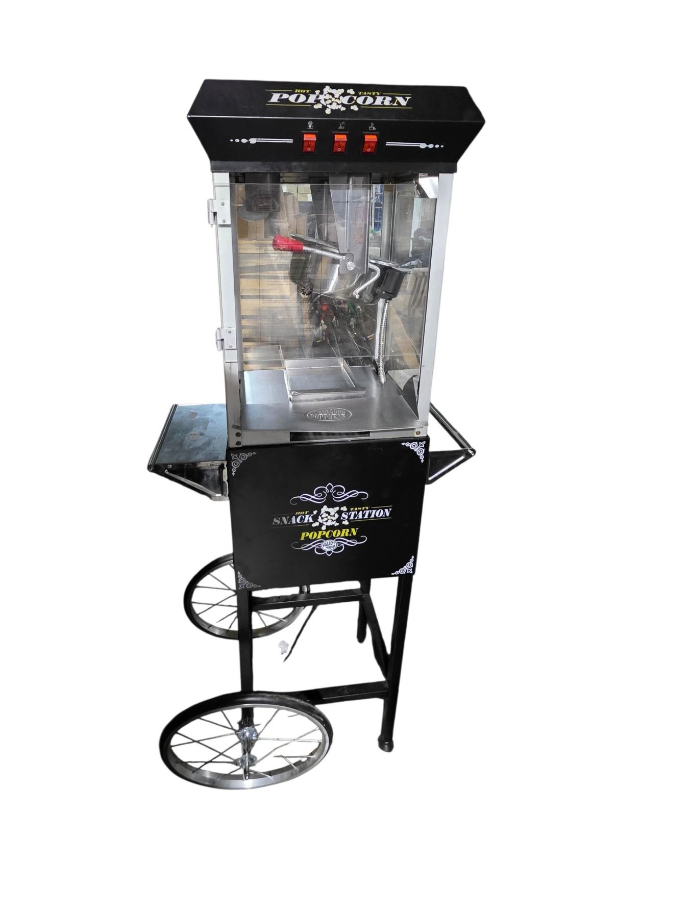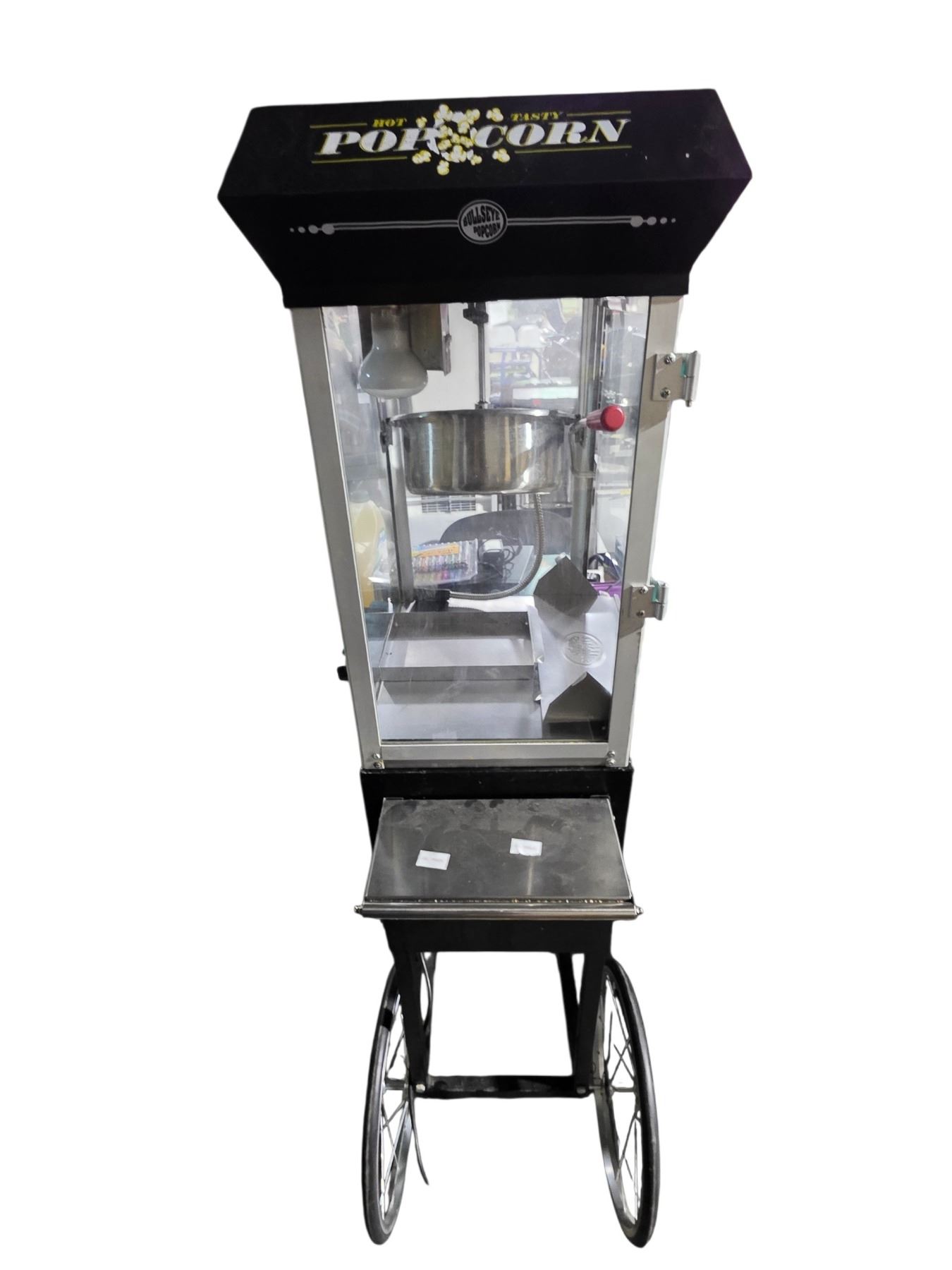 Hot & Tasty Commercial Popcorn Machine on Rolling Stand