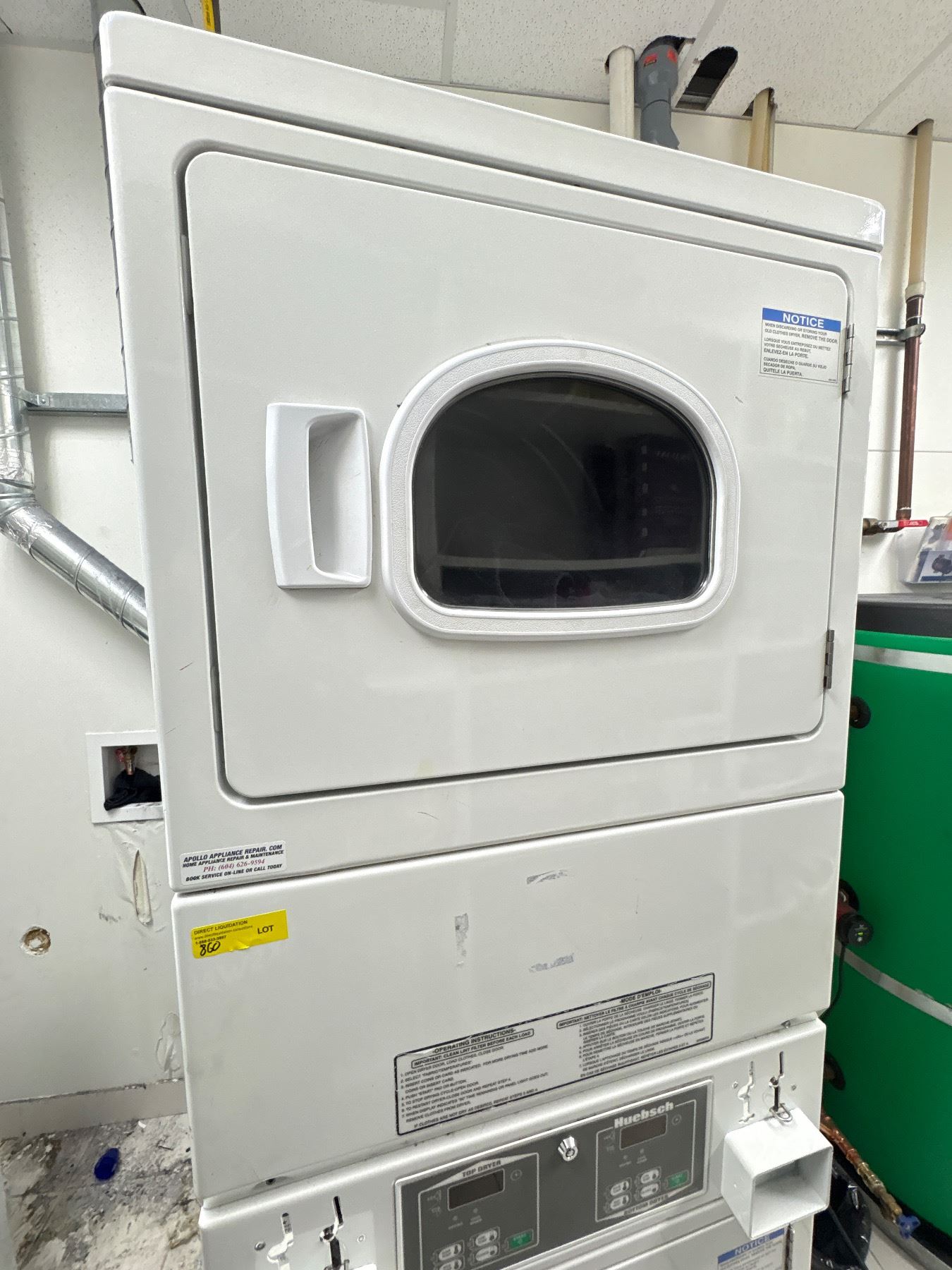 Huebsch Commercial Stack Washer/Dryer - Professional Space-Saving Laundry Center (already disconnected)