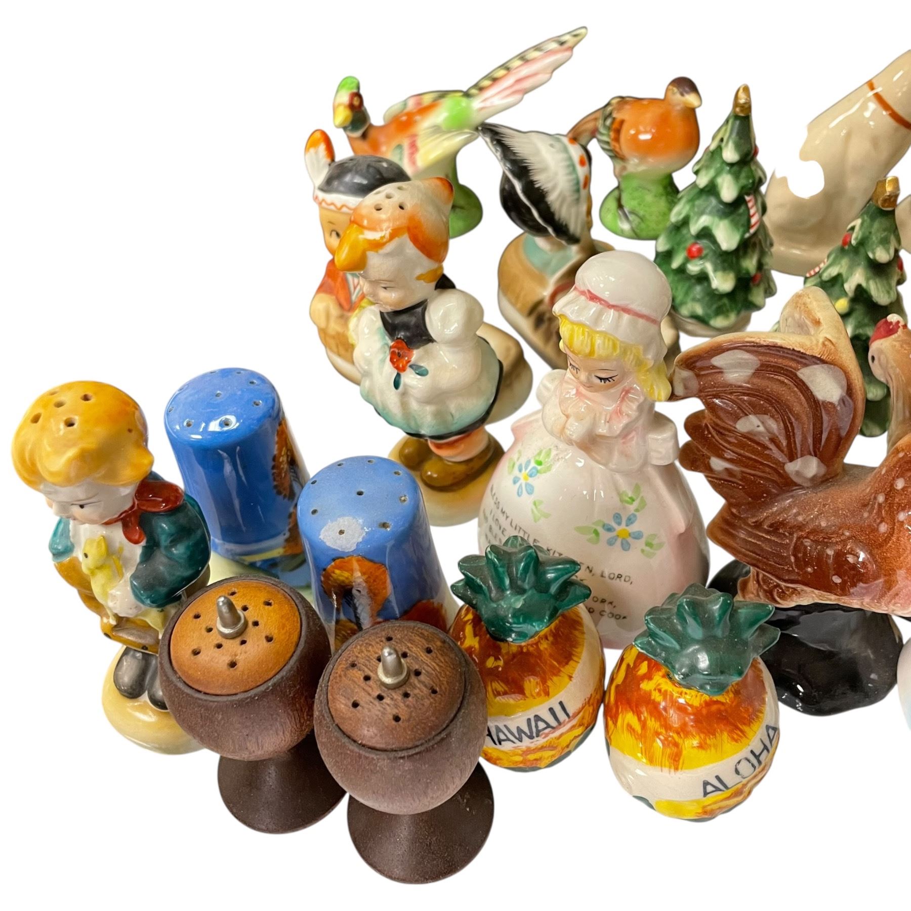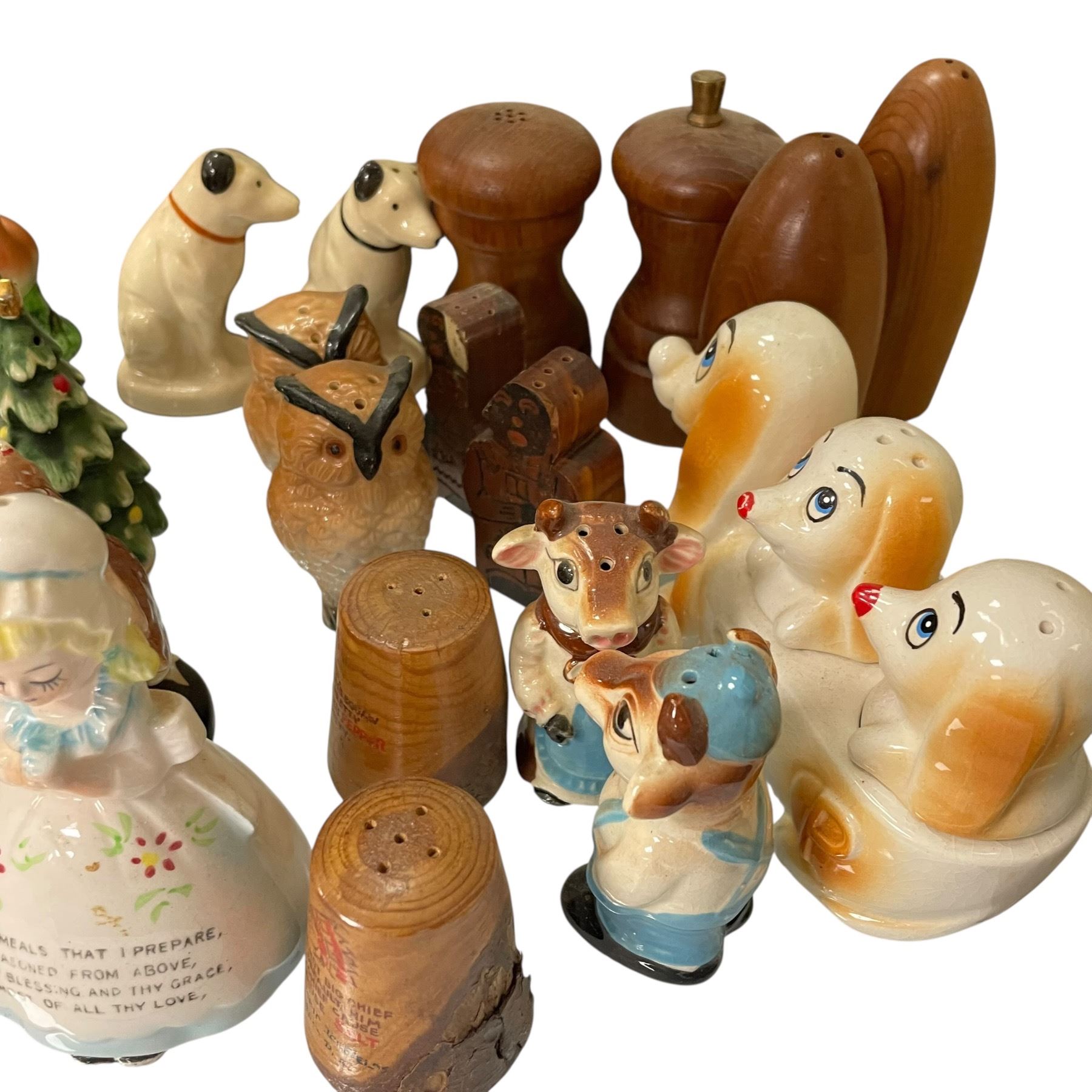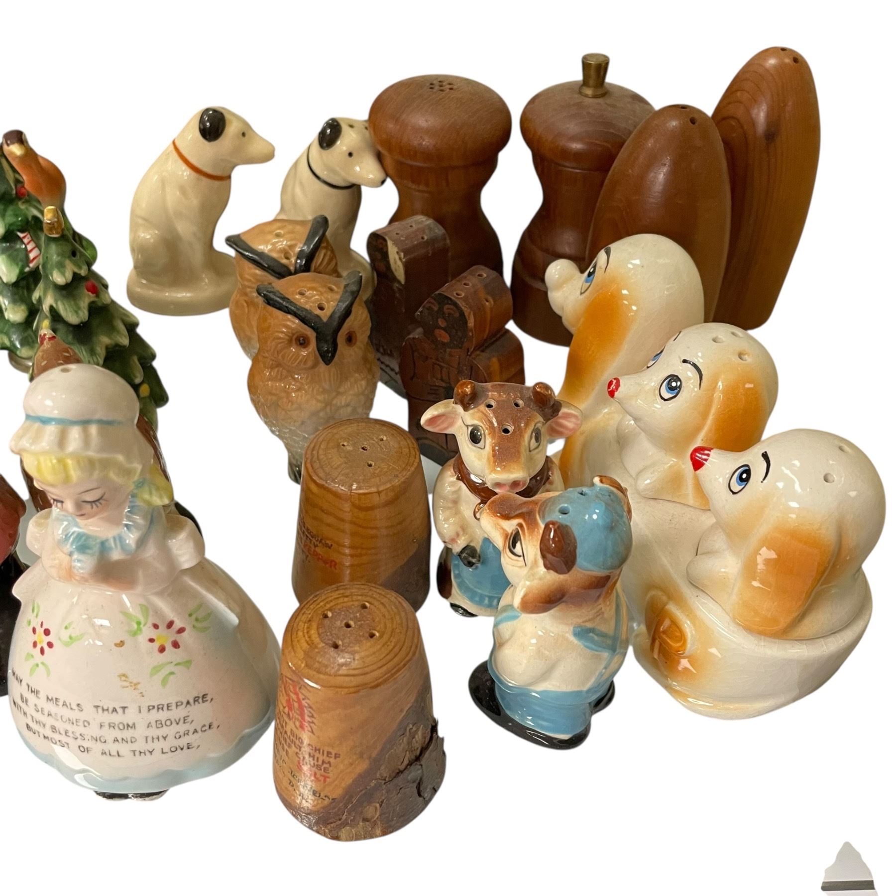 Large collection of assorted salt and pepper shakers featuring multiple designs and styles. Includes a wide variety of shapes, themes, and materials. Suitable for use, display, or collection. Item is as pictured.