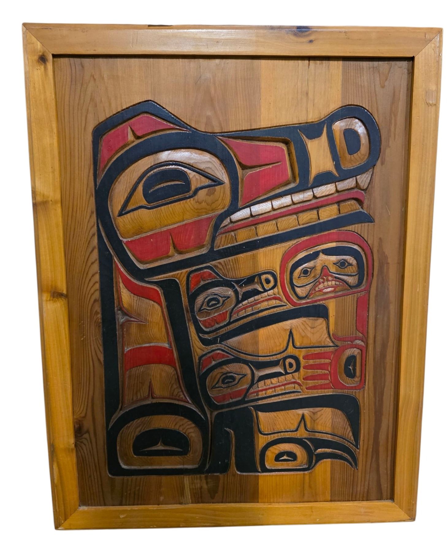 Indigenous First Nation Pacific Art - Carved And Painted Wooden Panel Signed By Joe Mosney