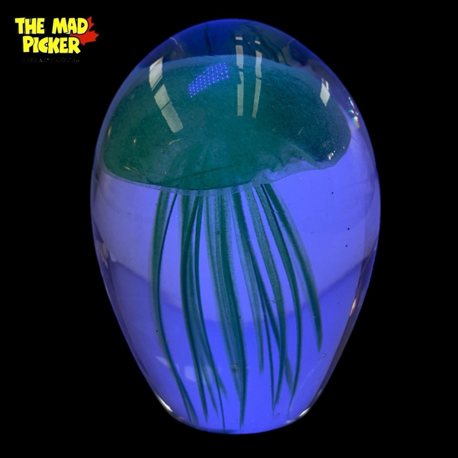 Iridescent Art Glass "Jelly Fish" Paperweight - Glows in the Dark