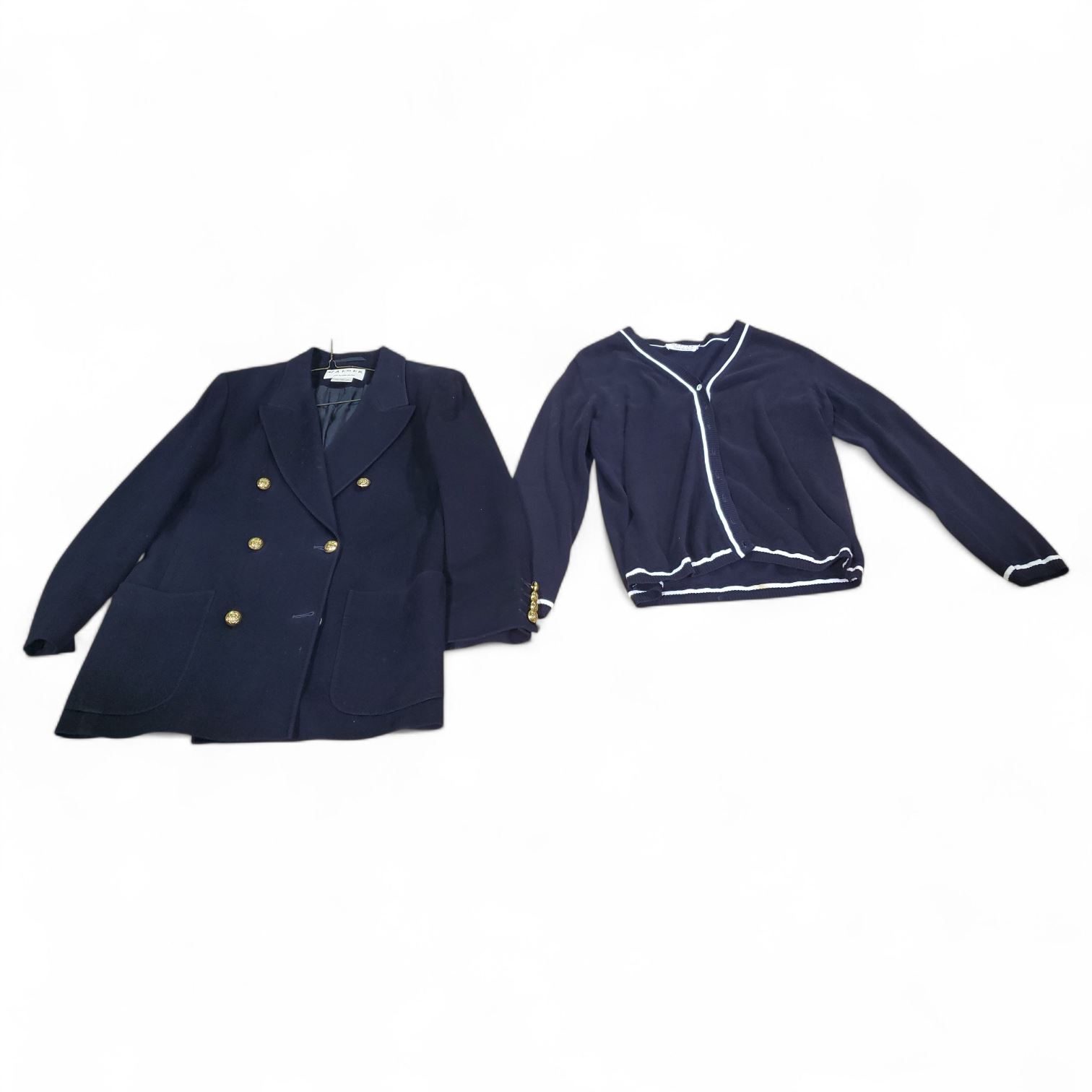 Jaeger Navy Wool Blazer & 100% Cotton Cardigan - Made in Great Britain