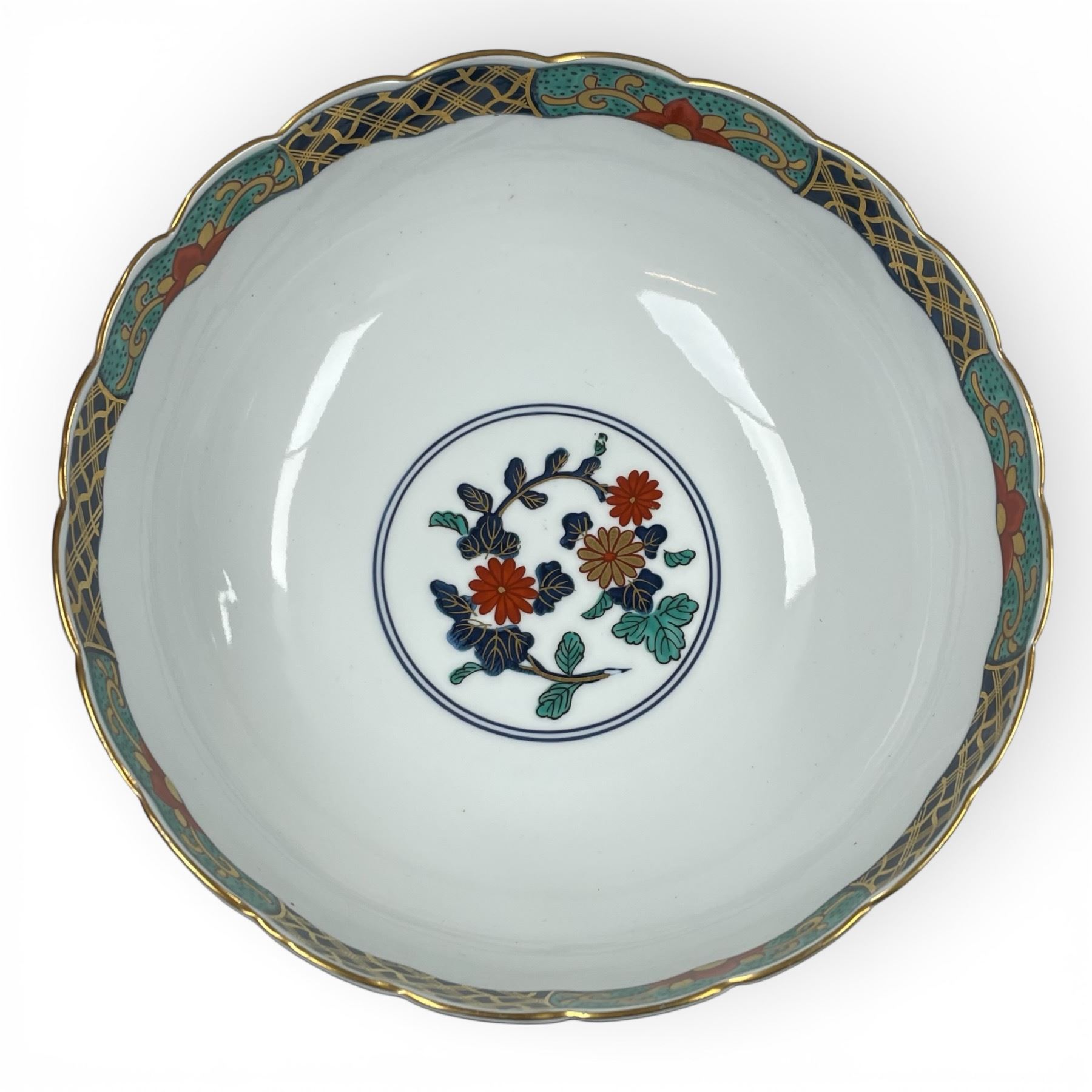 Japanese Imari Porcelein Bowl in Wood Box - Bowl is 4" deep x 9.5" diameter