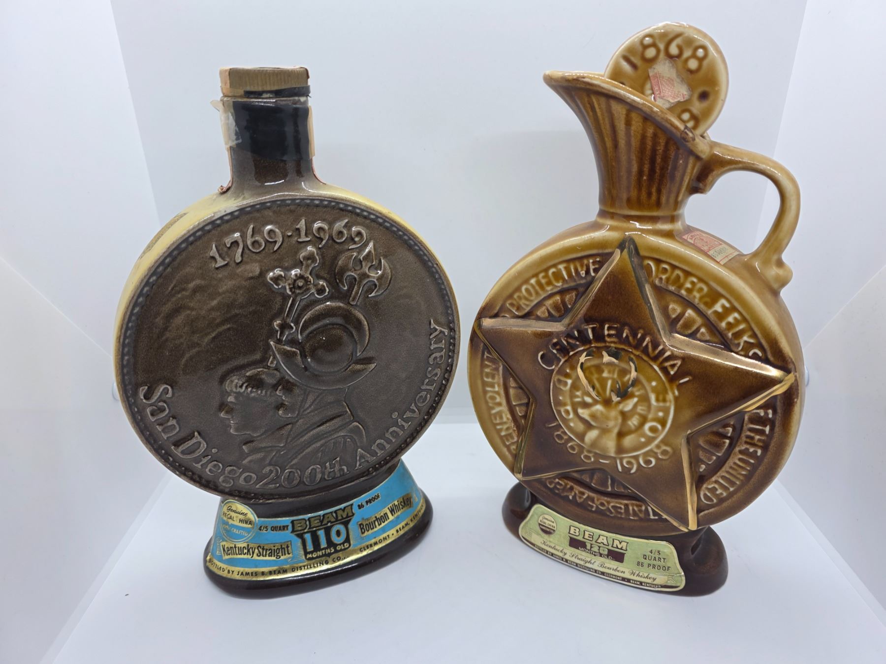 Jim Beam 1968 Elks and 1969 San Diego 4/5 Quart Decanters - Empty