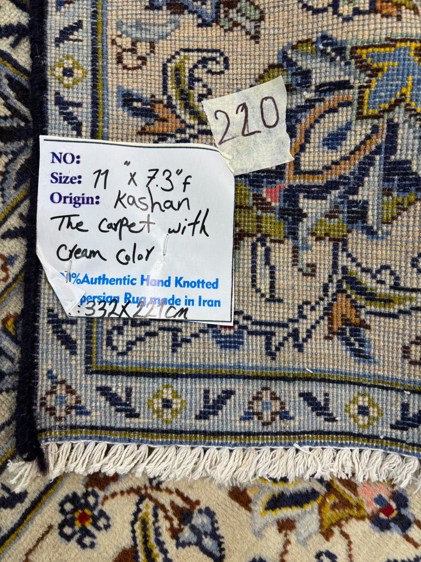 Kashan - 100% Authentic Hand Knotted Wool Persian Rug - Handmade in Iran - 11" x 7.3" ft - No: 108