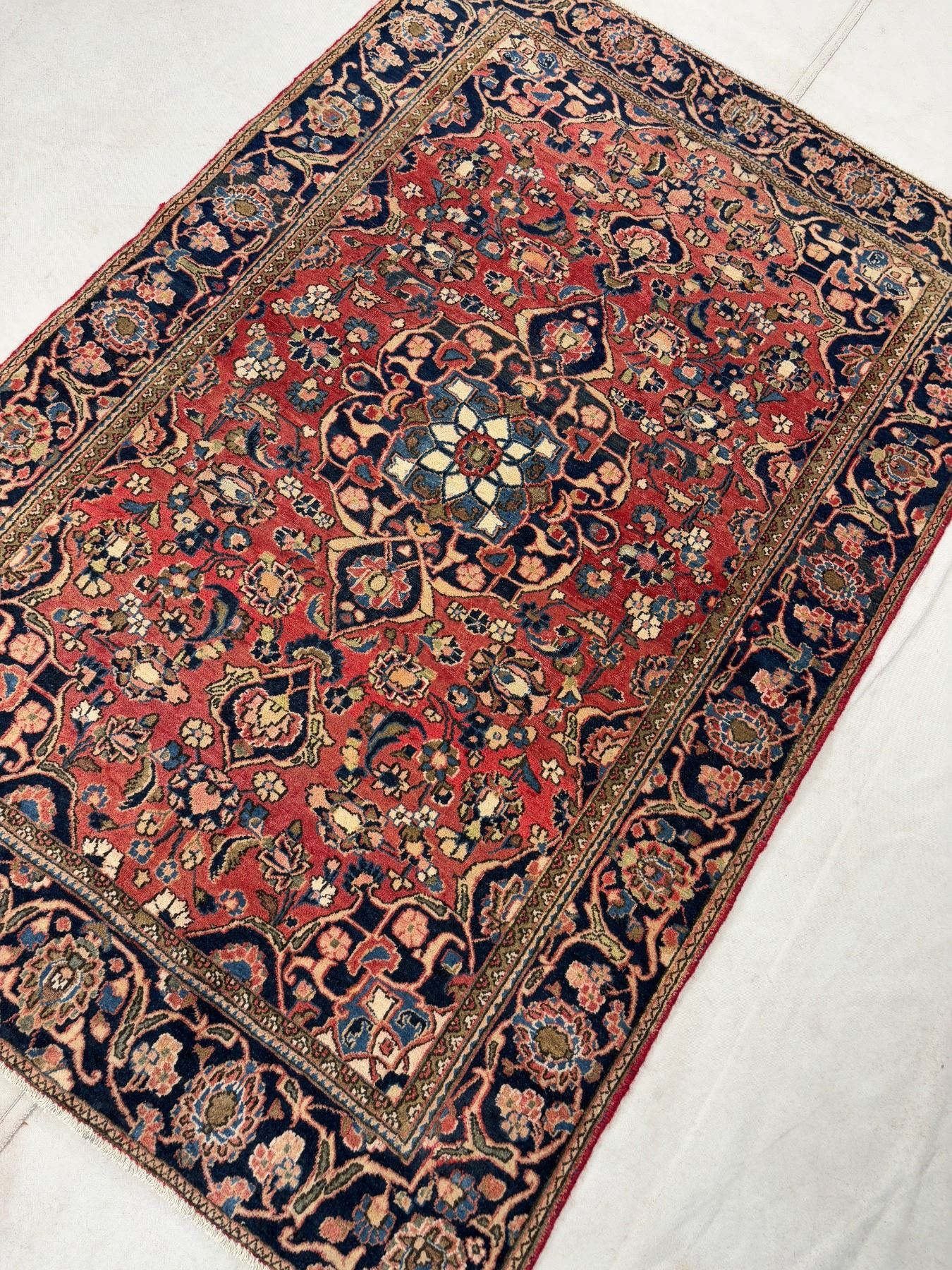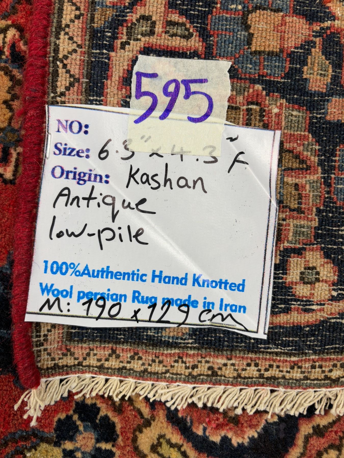Kashan 100% Authentic Hand Knotted Wool Persian Rug Handmade in Iran Antique Low pile (These carpets have been washed professionally, and for this reason there are no tears or dirt in this carpet and it will be delivered to you clean and smooth. Don't miss the opportunity to buy such a carpet) Size: 6.3'×4.3'