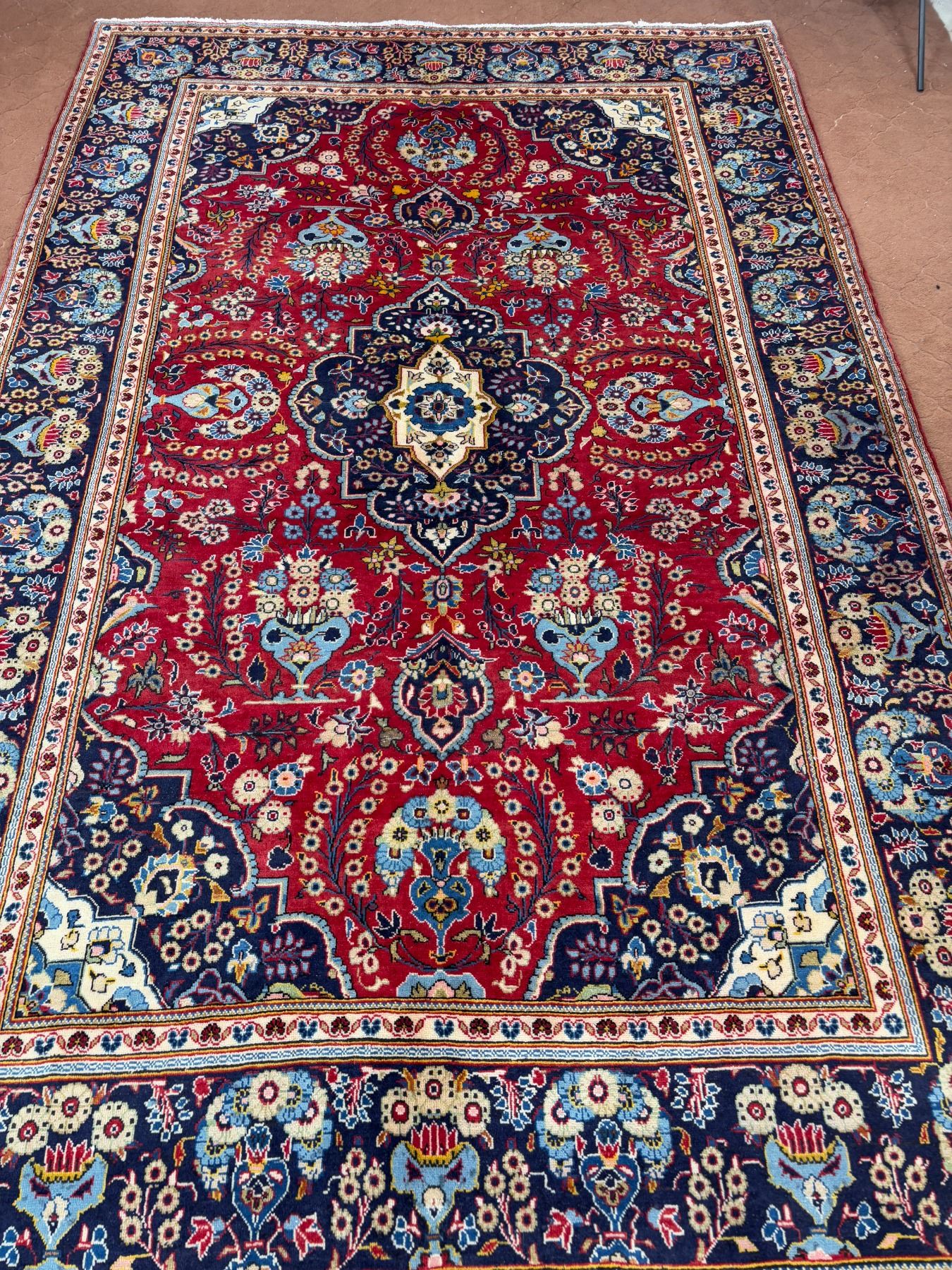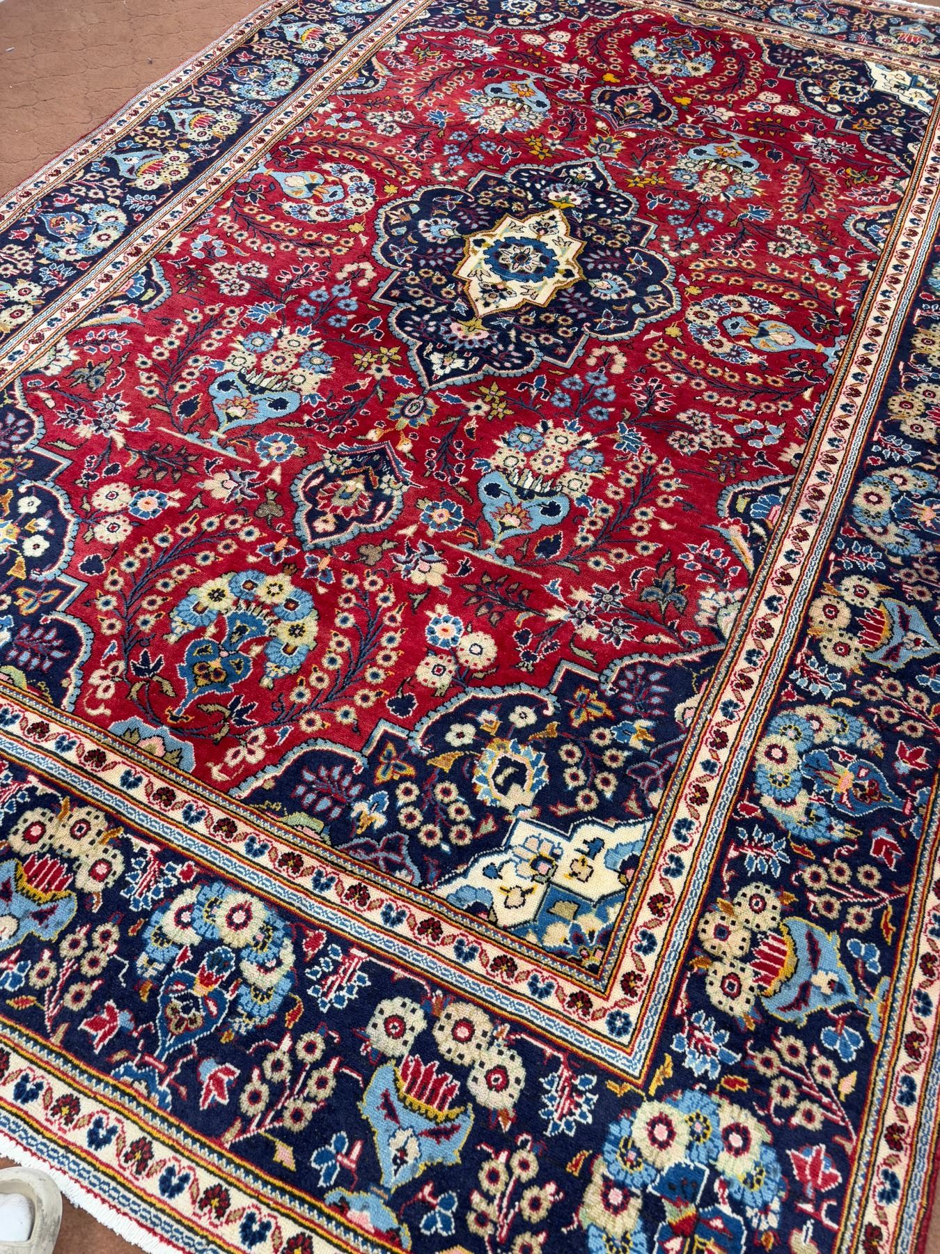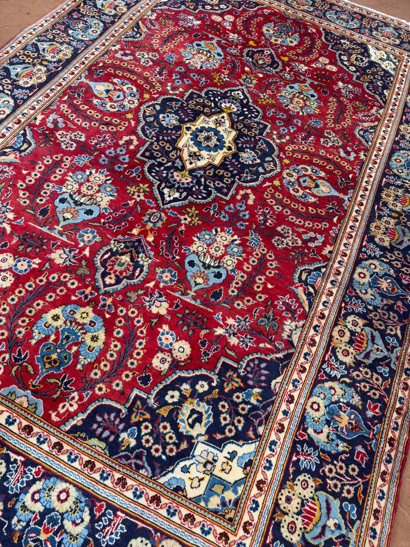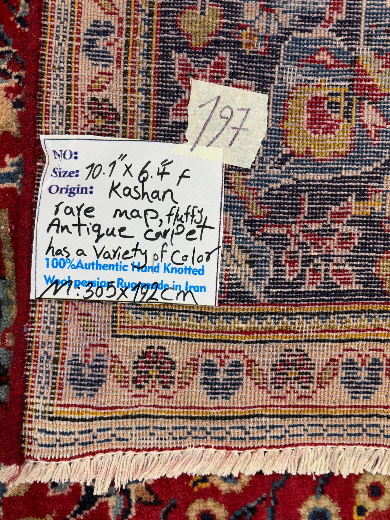 Kashan 100% Authentic Hand Knotted Wool Persian Rug Handmade in Iran rare map Fluffy Antique carpet has a variety of color (These carpets have been washed professionally, and for this reason there are no 3tears or dirt in this carpet and it will be delivered to you clean and smooth. Don't miss the opportunity to buy such a carpet) 10.1'× 6.4'