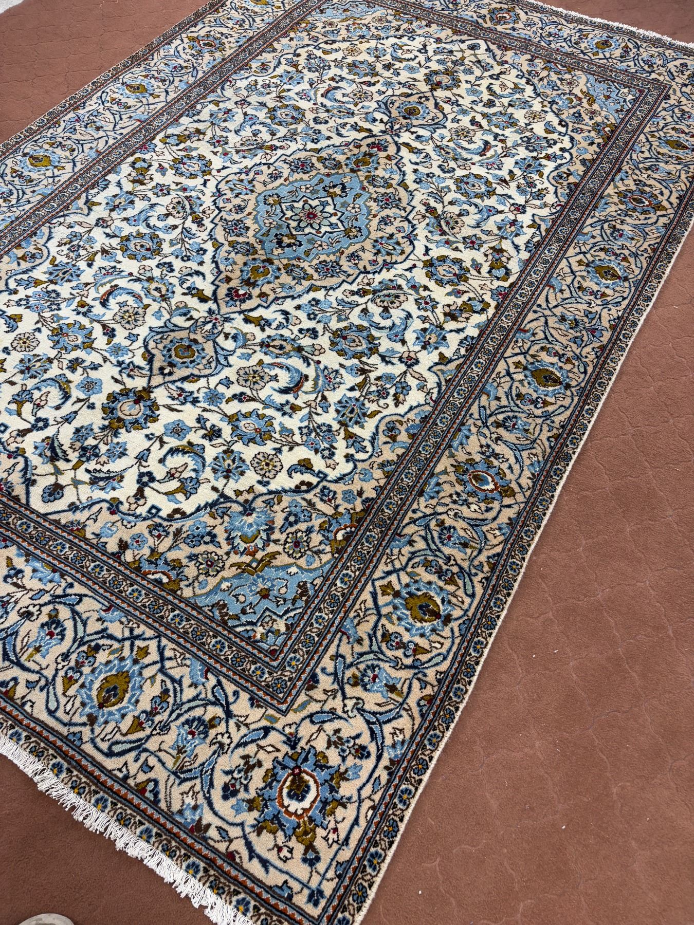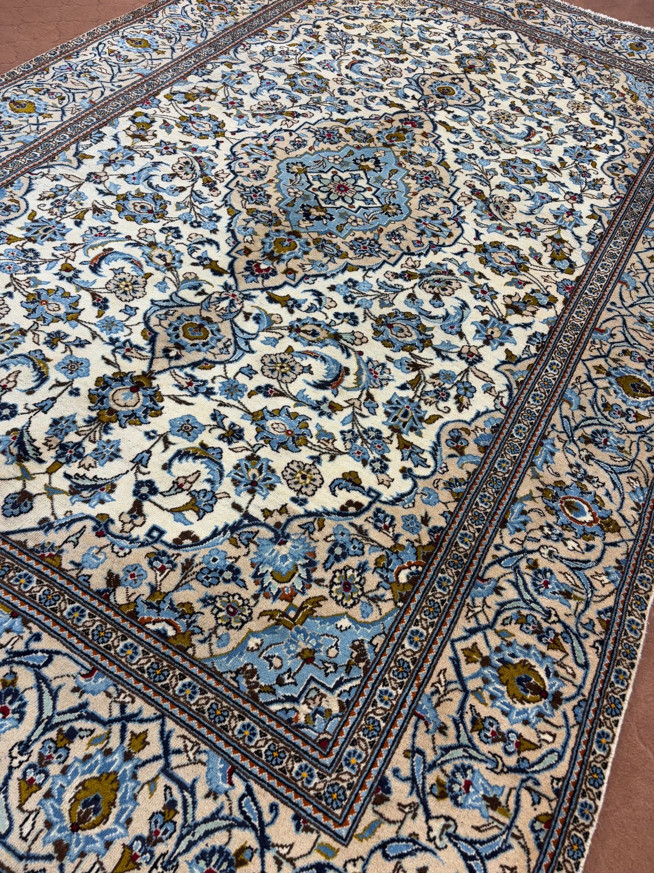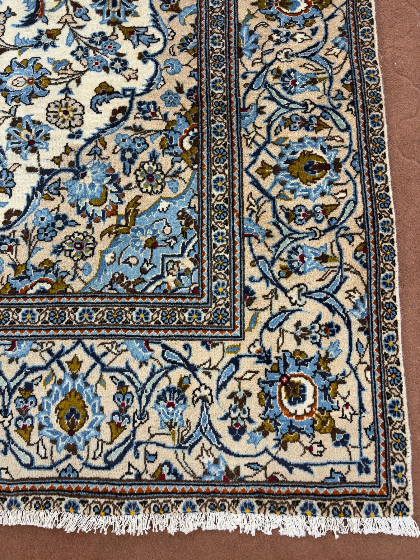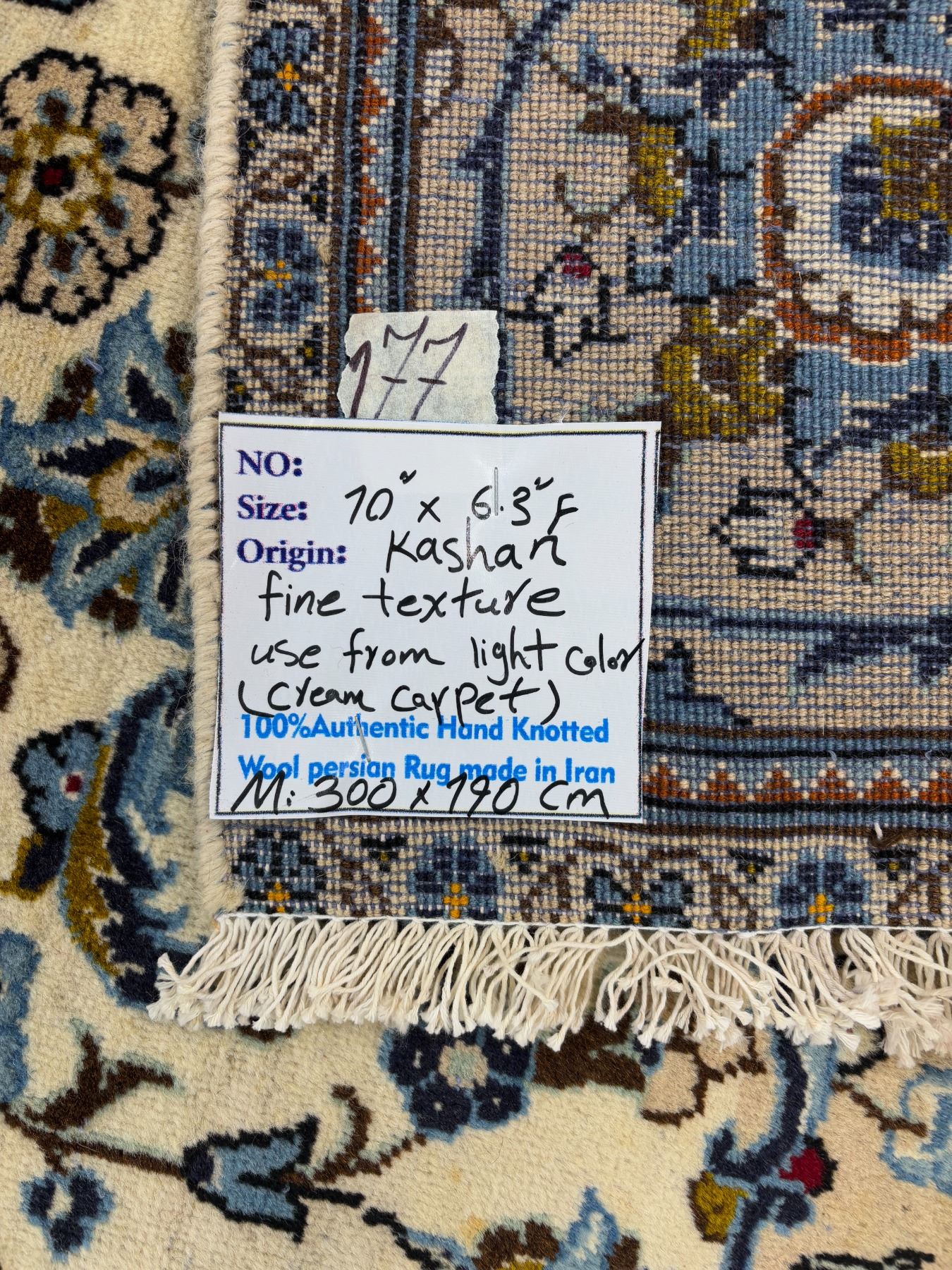 Kashan Fine texture use from light colour (cream carpet) 100% Authentic Hand Knotted Wool Persian Rug Handmade in Iran (Size 10' x 6.3' ft - 300x190 cm) (These carpets have been washed professionally, and for this reason there are no tears or dirt in this carpet and it will be delivered to you clean and smooth. Don't miss the opportunity to buy such a carpet)