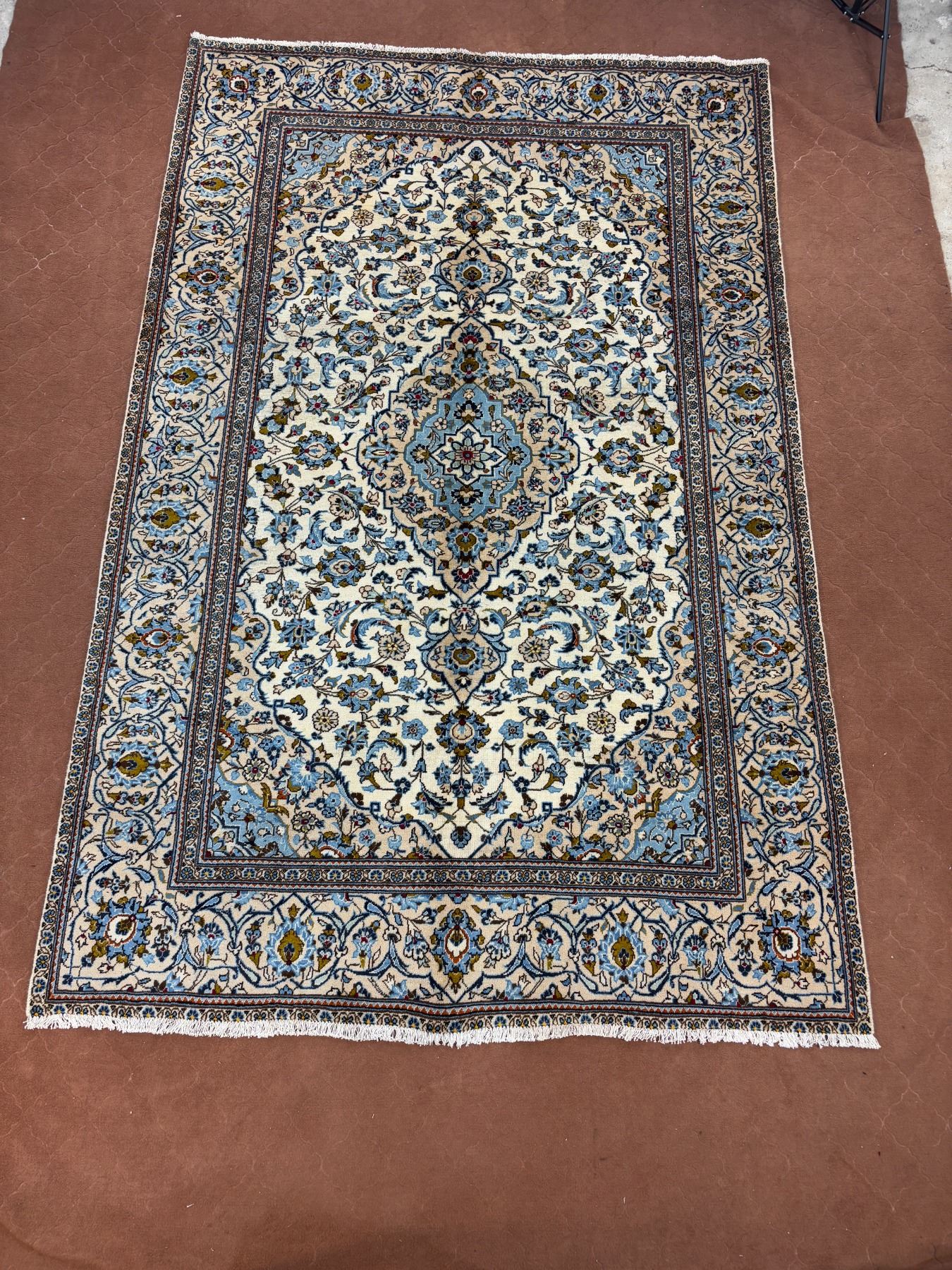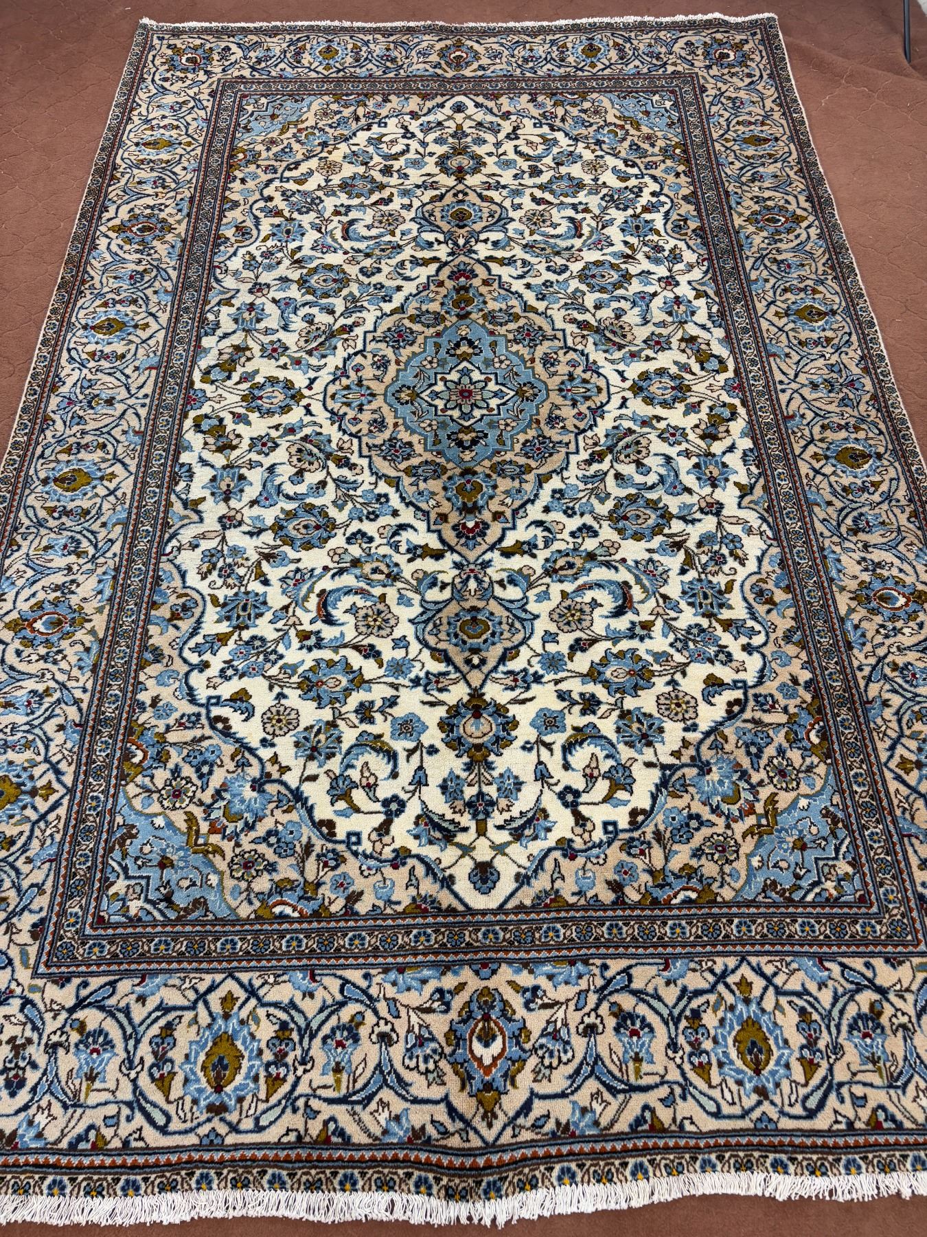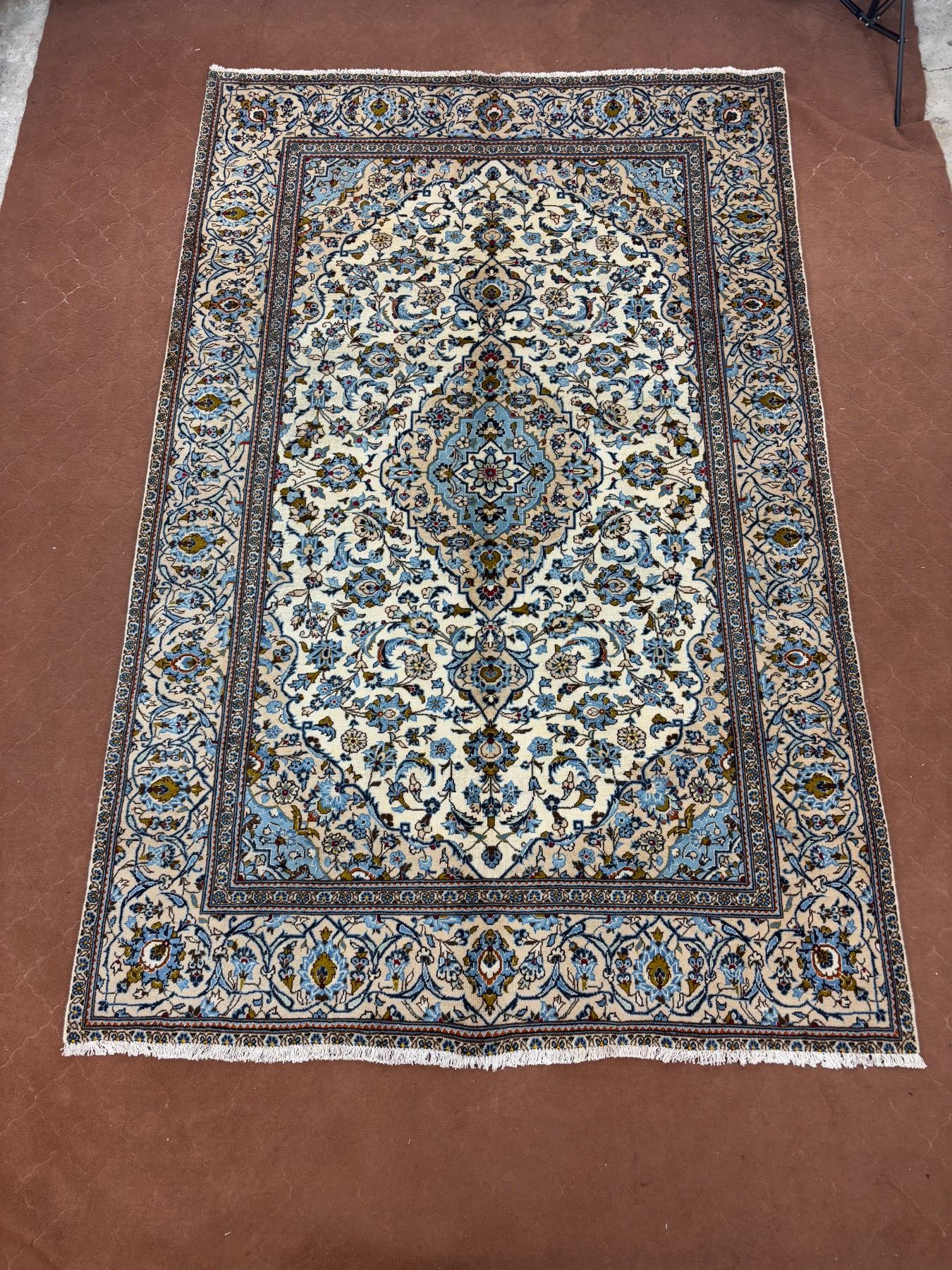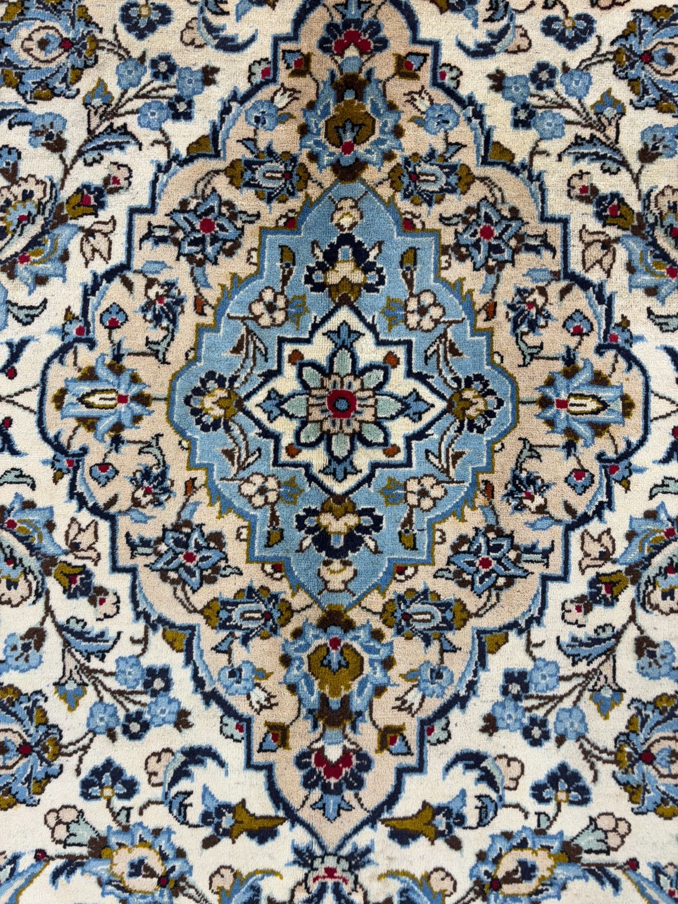 Kashan Fine texture use from light colour (cream carpet) 100% Authentic Hand Knotted Wool Persian Rug Handmade in Iran (Size 10' x 6.3' ft - 300x190 cm) (These carpets have been washed professionally, and for this reason there are no tears or dirt in this carpet and it will be delivered to you clean and smooth. Don't miss the opportunity to buy such a carpet)