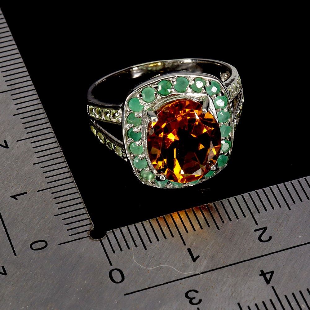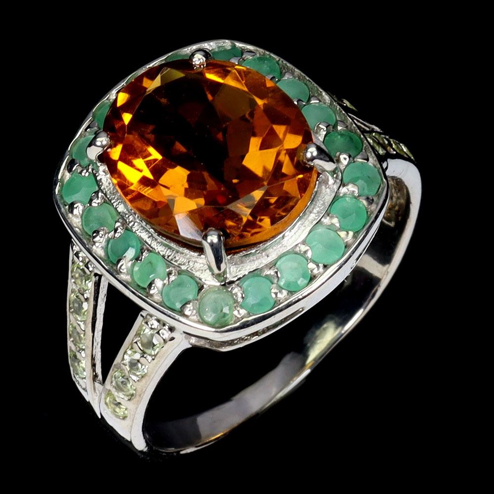 LUXURY BIG 12X10 mm OVAL CITRIN, EMERALD AND PERIDOT RING IN 14K WHITE GOLD PLATED OVER 925 STERLING SILVER - SIZE 7 - APPRAISED REPLACEMENT VALUE CAD 900