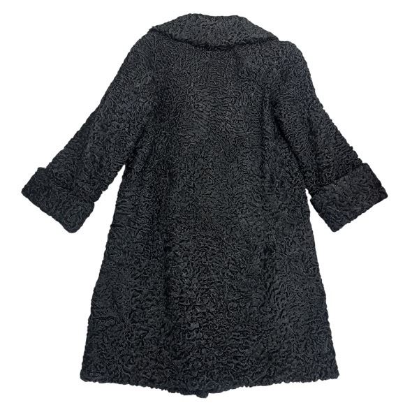 Ladies Vintage Russian Black Persian Lamb Coat with Certificate of Appraisal * Size 12-14 * A line coat with a 5" V cornered collar, Straight sleeves wit 4" wide cuffs. Coat is 47" long.