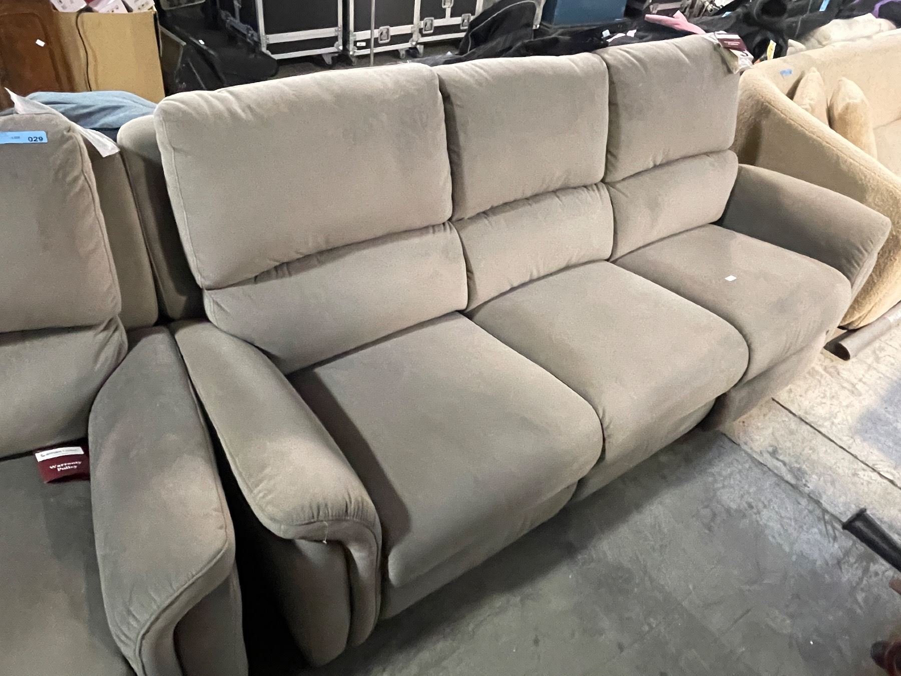 Lamax Leather 3-Seat Reclining Beige Sofa, Approx. H41" x W85" x D32"