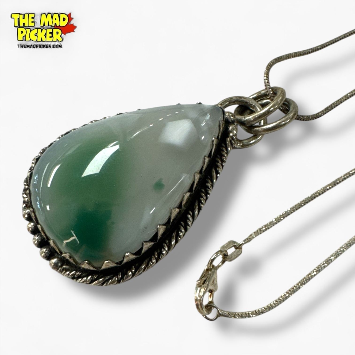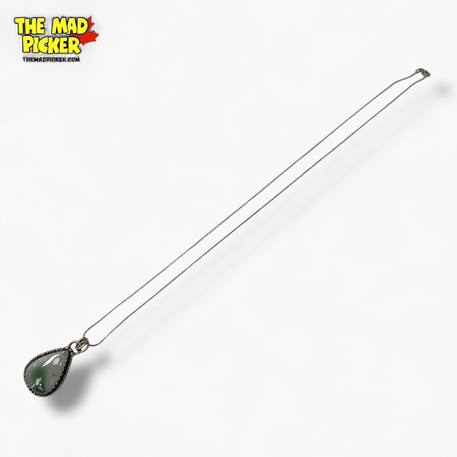 Large .925 Sterling Silver Polished Natural Hemimorphite Teardrop Necklace - 9 x 30 x 41 mm pendant on 28" Sterling Chain - Total weight: 25.3 grams