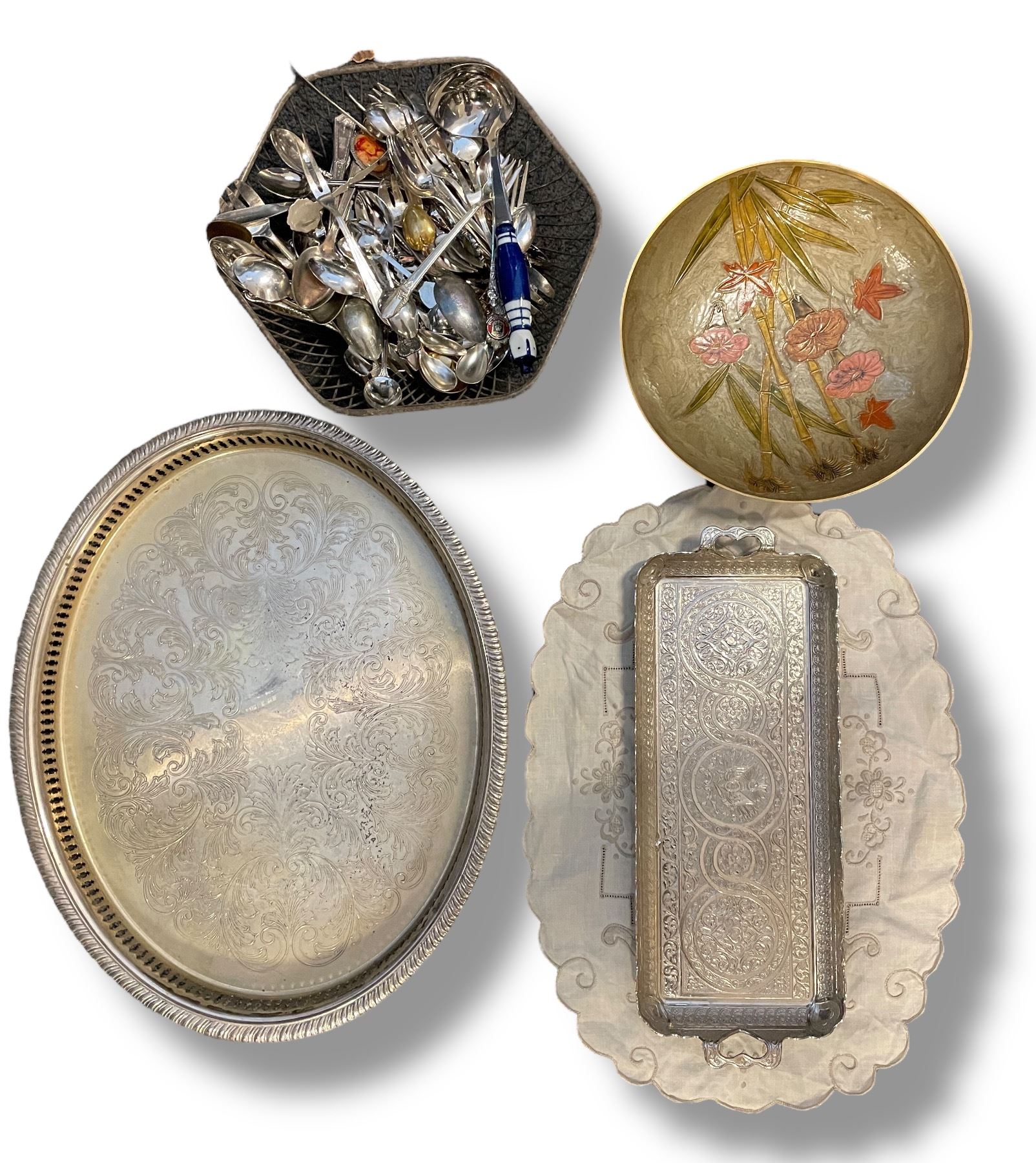 Large Assorted Group of Silverplate Tray, Spoons, Forks, and More