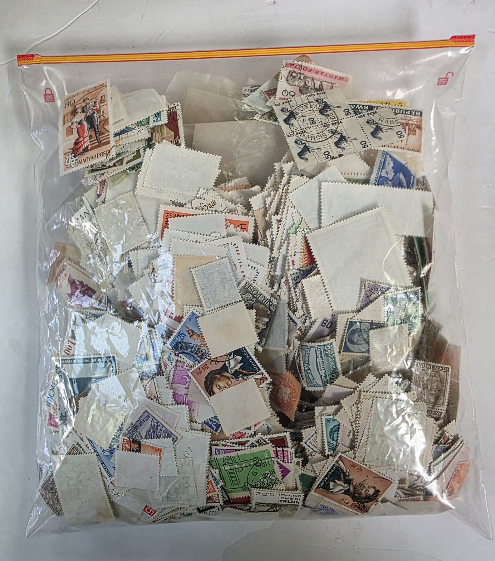 Large Bag of Assorted Canceled World Stamps (Hong Kong, Singapore, Russia, USA, just to name a few)